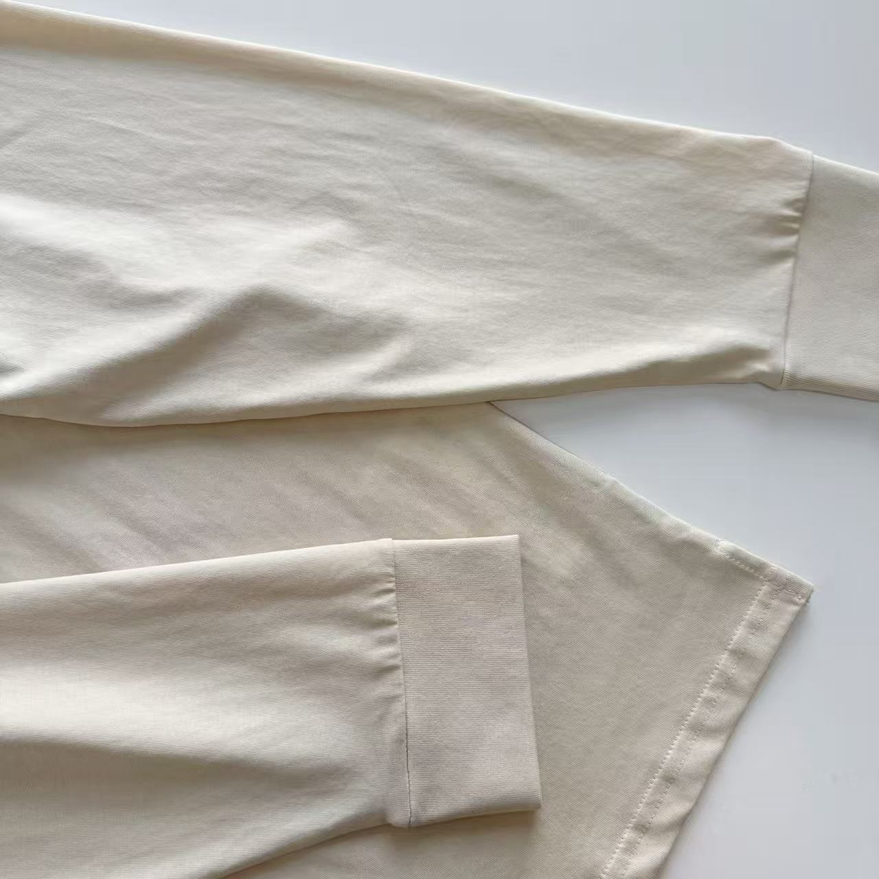面料挑選 210g 21S 精棉珠地面料,觸感細膩柔軟,透氣又帶點微厚質感,穿上身舒適不悶熱。胸前字母刺繡是亮點,採用精密挨針繡工藝,針距緊密到不行,逐針勾勒出立體線條,圖案緊實又有微微收縮效果,遠看有層次、近看細節滿分,質感直接拉到專櫃等級。