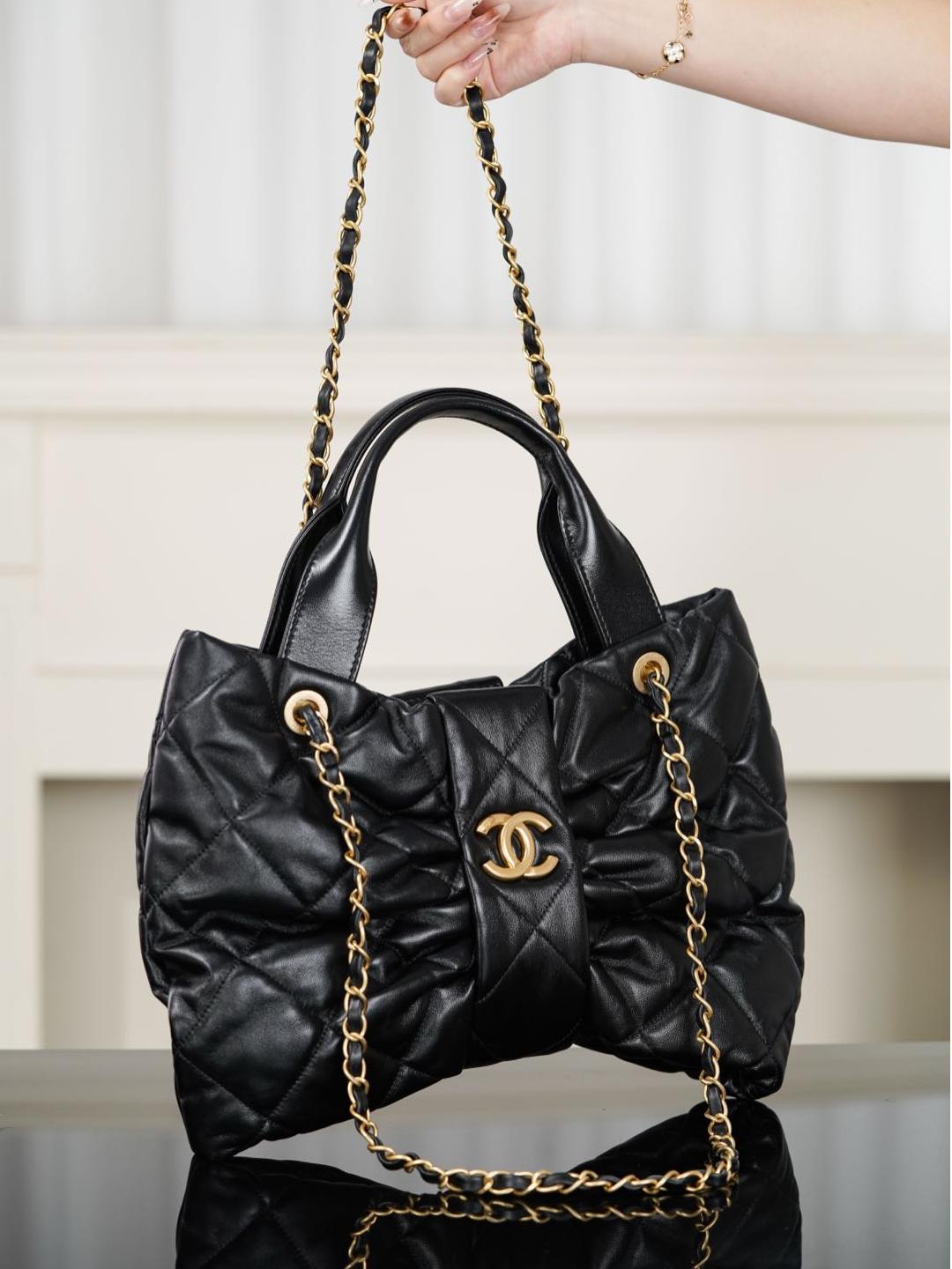 皮穿鏈條延續品牌經典設計,雙 C 字母刻印清晰立體,整體質感極高。