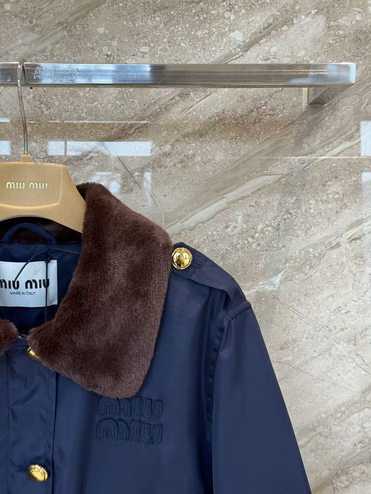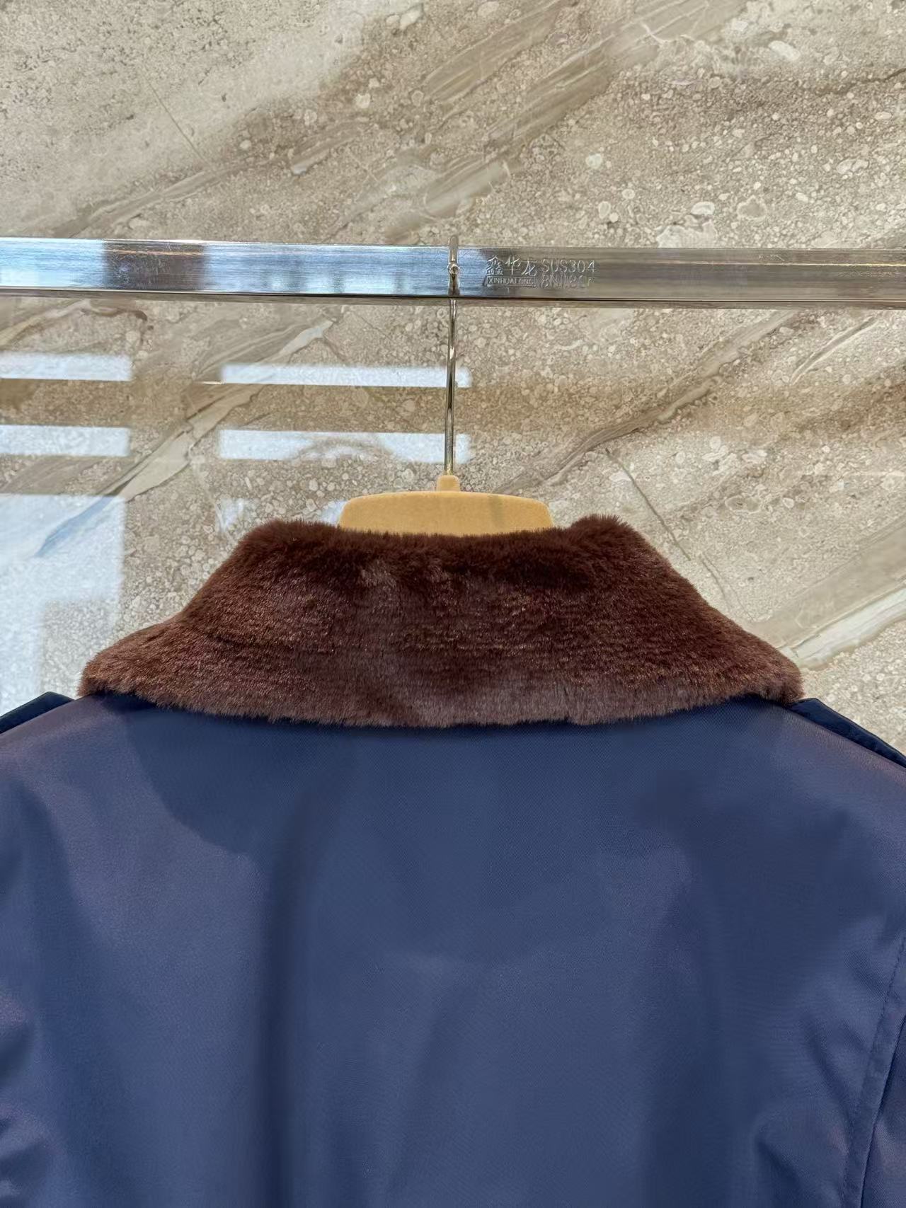 整體以深沉的藏藍色為主調,搭配棕色仿皮草翻領和金屬紐扣,瞬間散發濃濃的復古學院風,穿上就有種美式校園的帥氣氛圍。