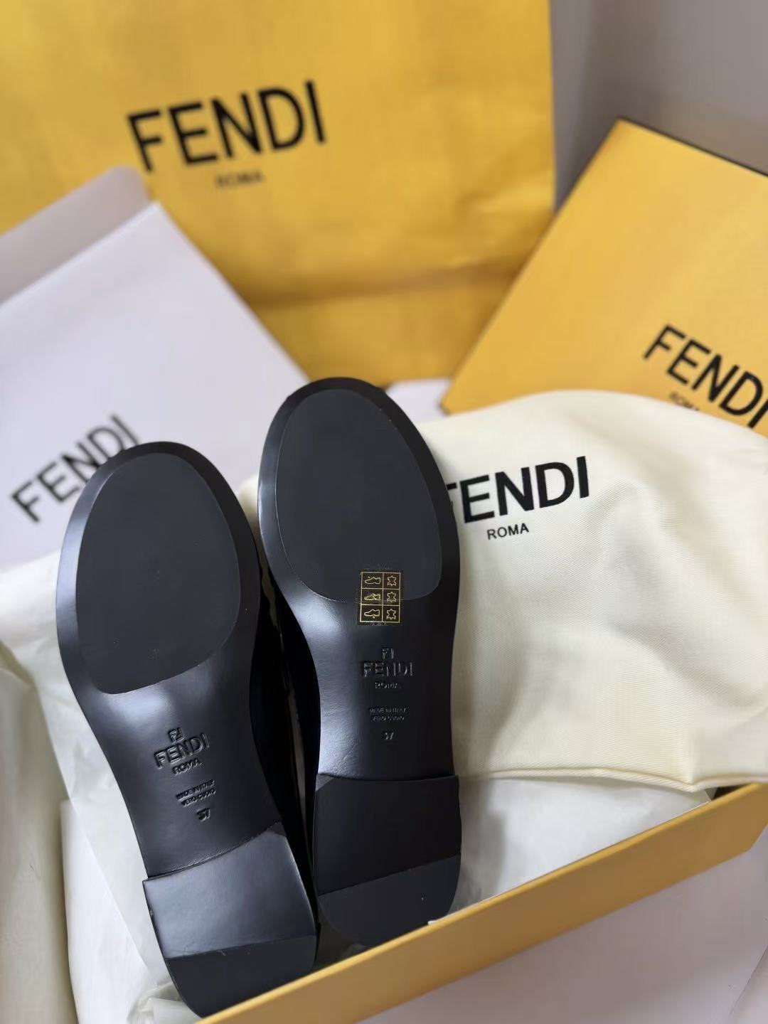 金色 FF 金屬扣: 點綴有金色 FF 金屬扣,這是最經典的標誌,瞬間讓鞋款充滿了精緻感與品牌的辨識度。