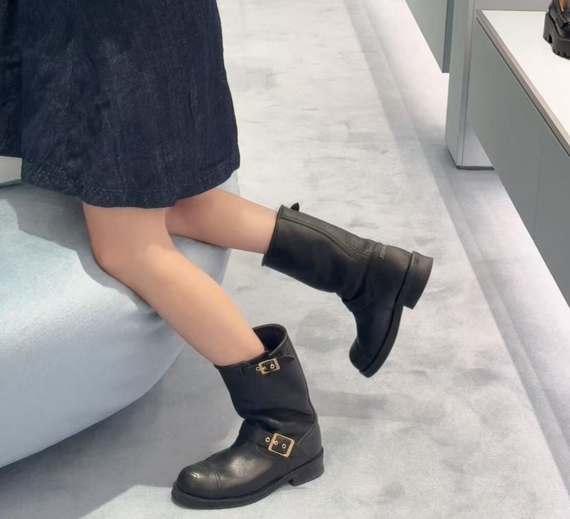 皮帶扣造型:精緻的皮帶扣造型不僅是設計細節,也為靴子增添了造型的質感和騎士的酷颯氣場。