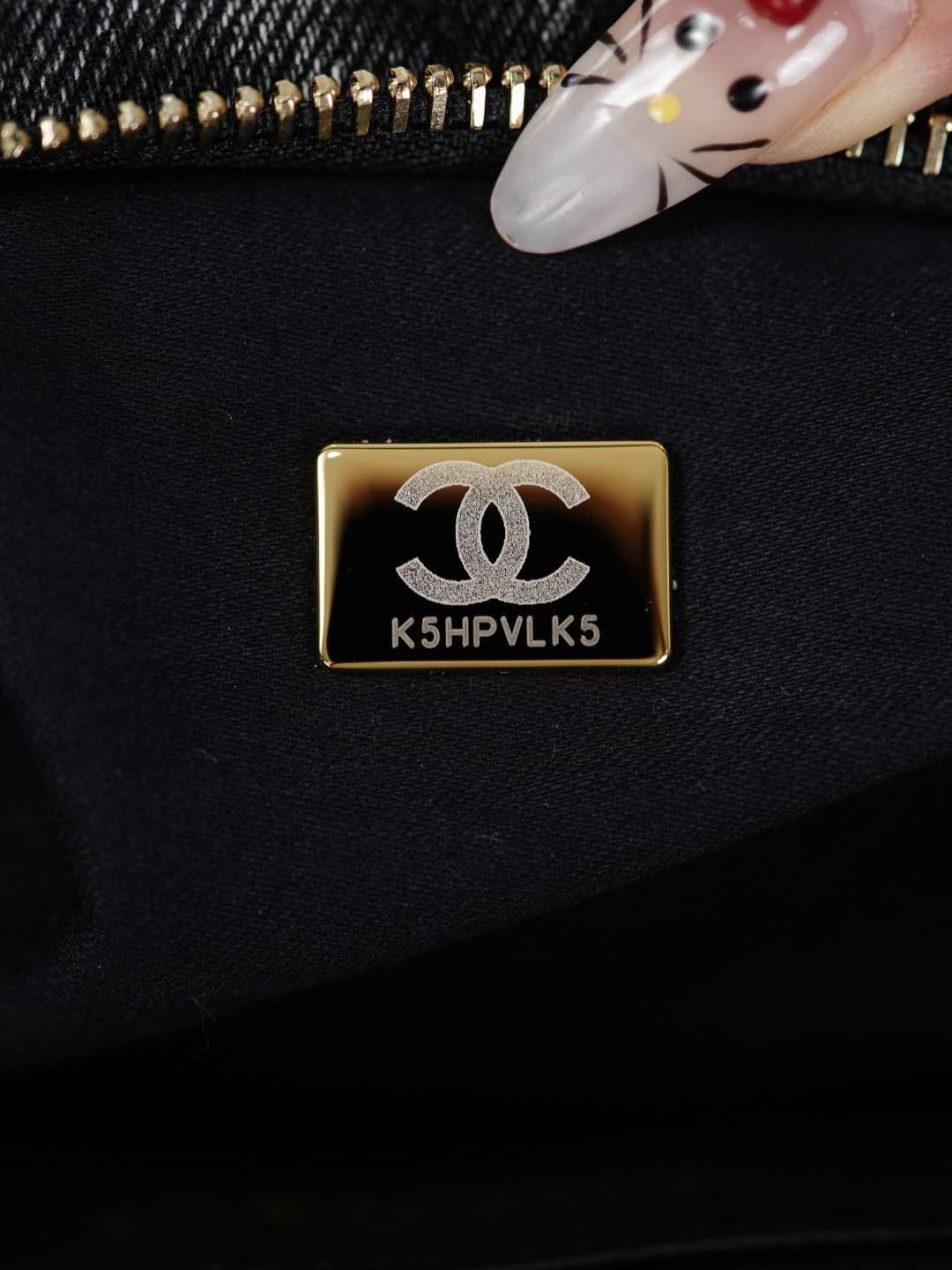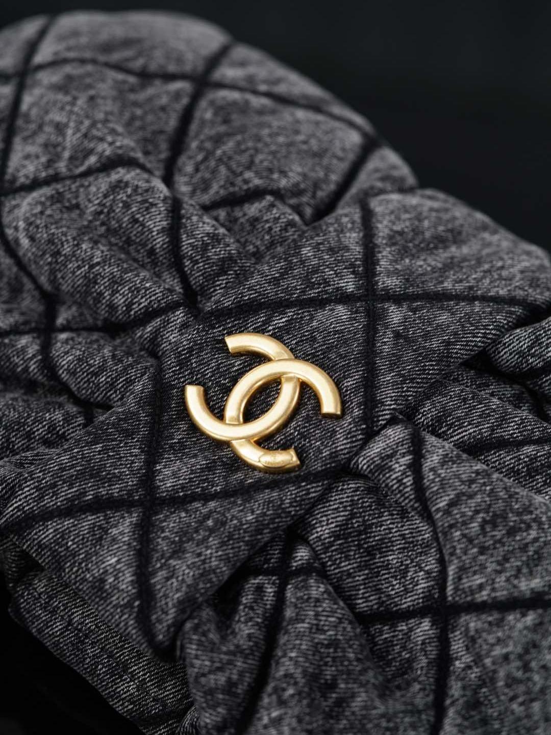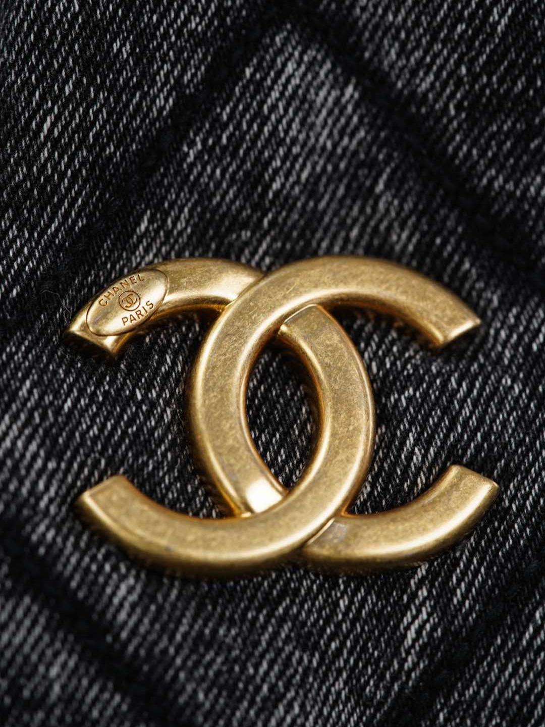 五金部分使用純銅厚鍍砂金工藝,表面帶有斑駁做舊感,與皮穿鏈設計相得益彰。雙C刻印清晰,細節質感拉滿。內裡採用黑色棉質布料,耐磨又好打理,並設有拉鍊隔層,收納更實用。