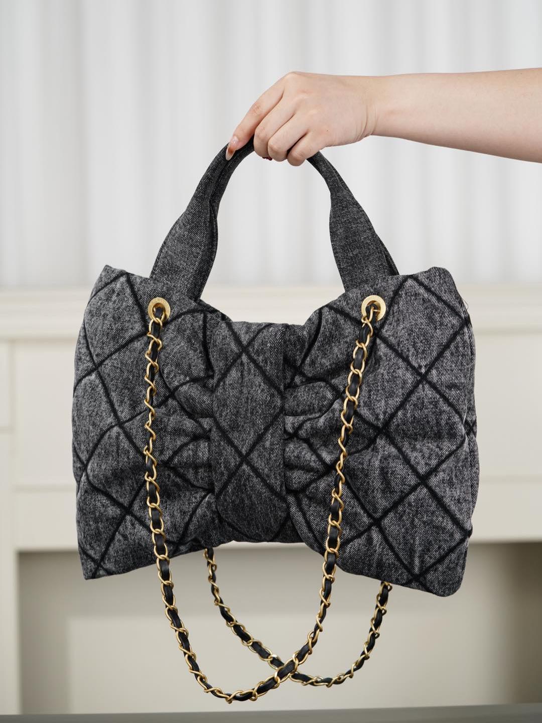 2025秋冬新品 C家 25k蝴蝶結黑牛仔手袋(中號)