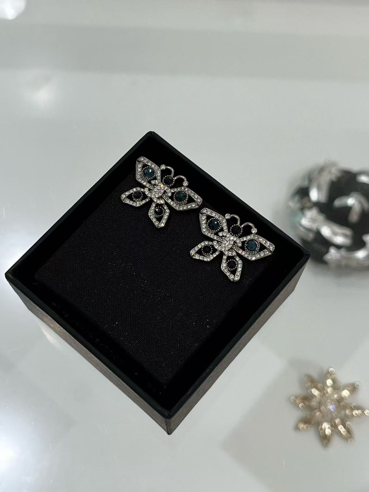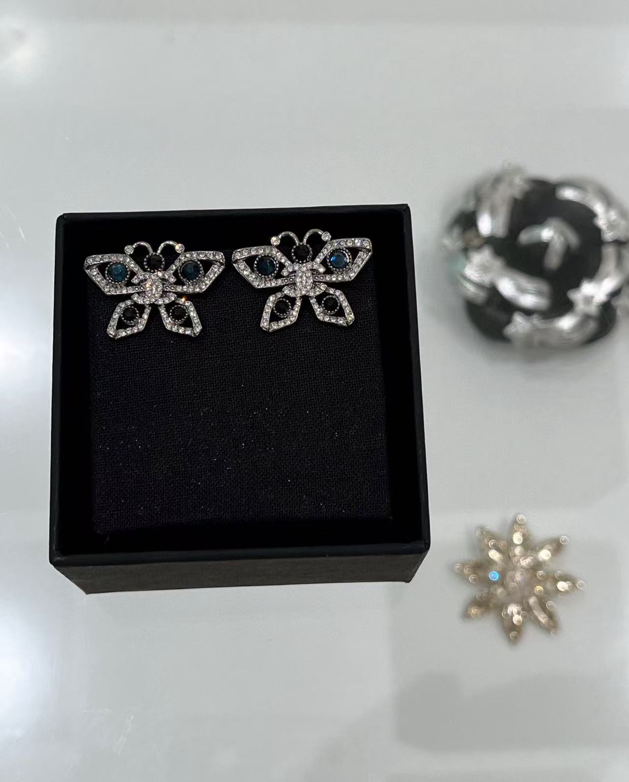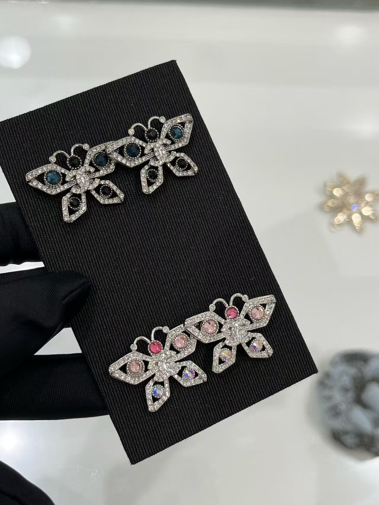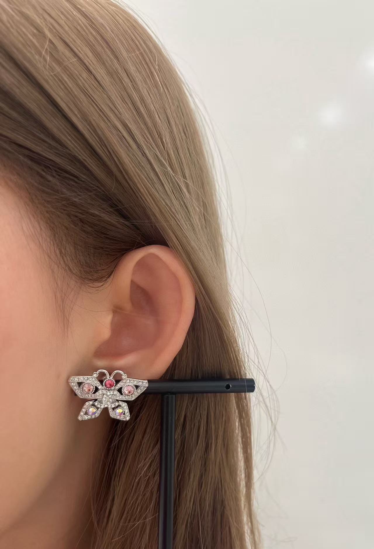 2025早秋 C家 水晶鑽鏤空蝴蝶雙C耳環