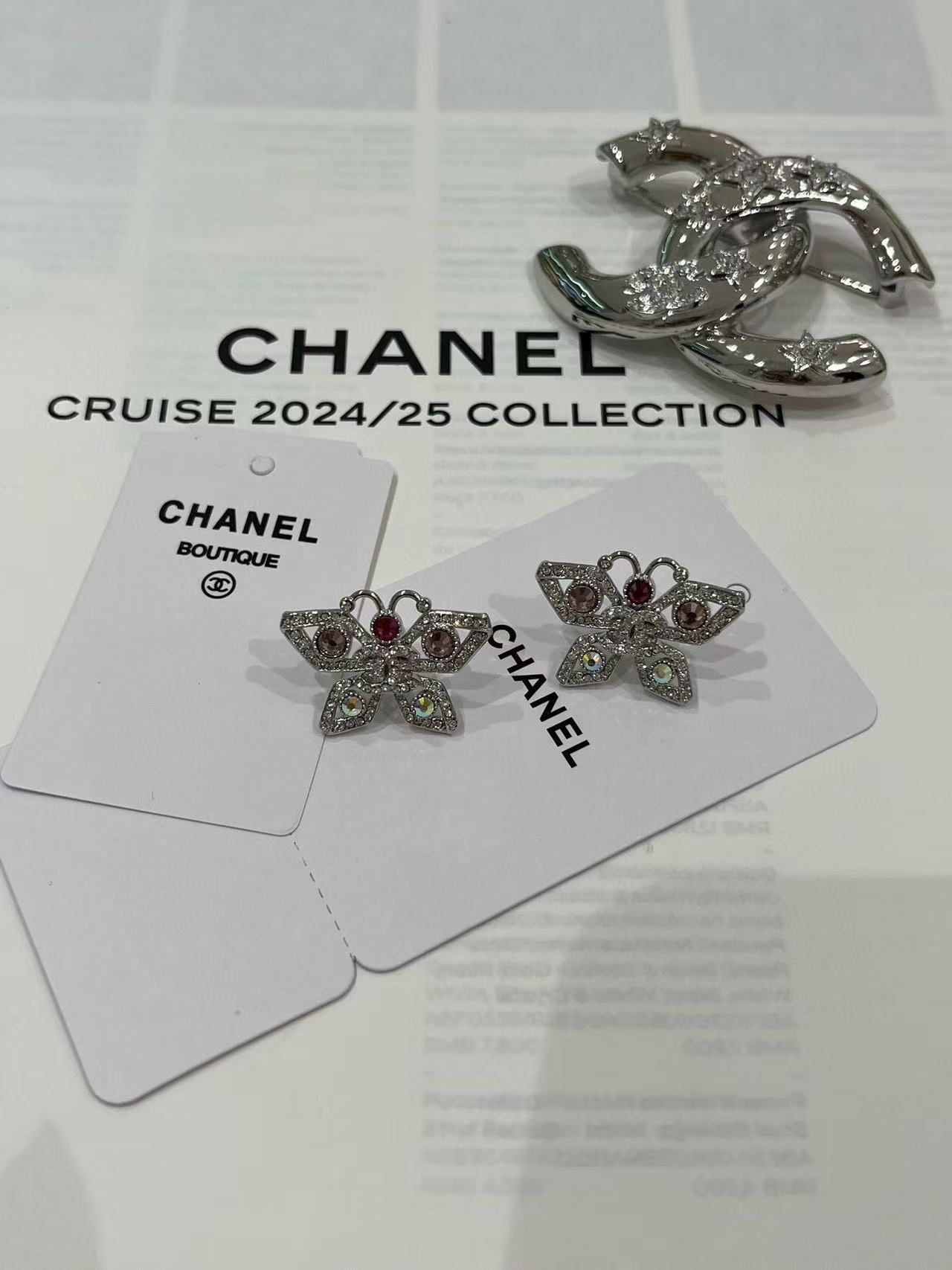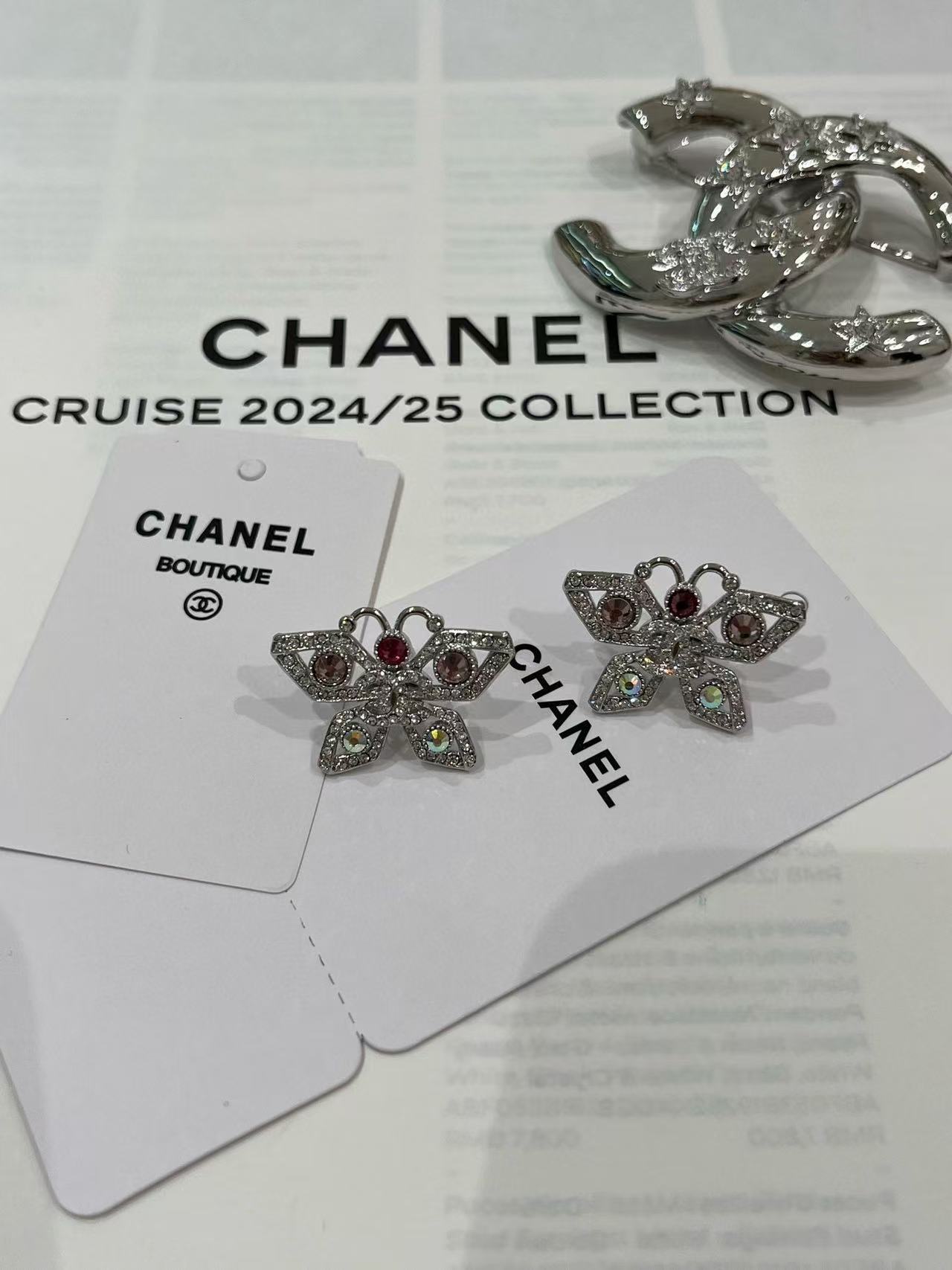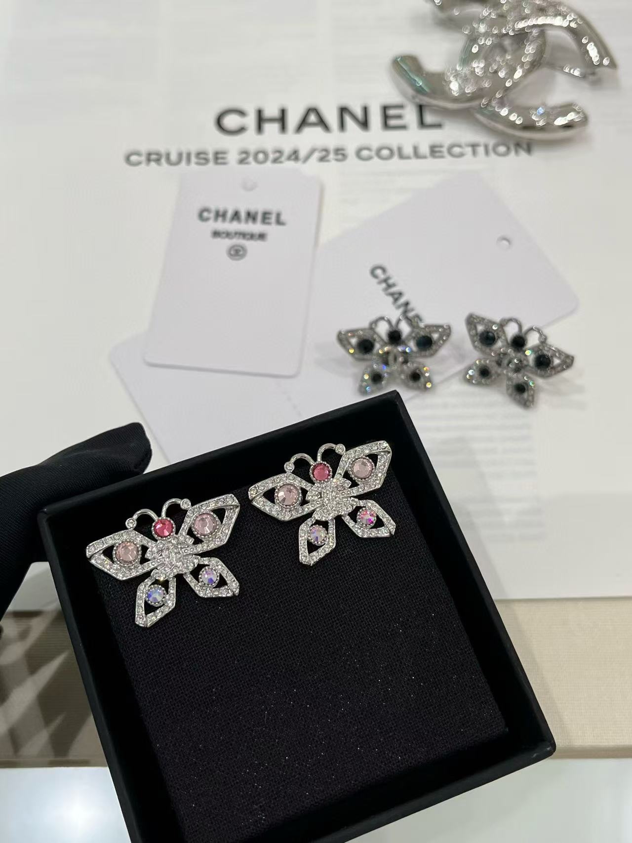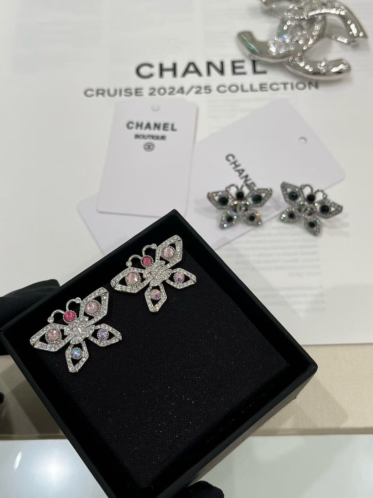 2025早秋 C家 水晶鑽鏤空蝴蝶雙C耳環