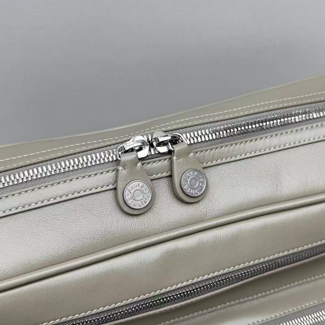 特供冷灰色平滑牛皮: 嚴選高品質全粒面皮胚,皮質厚實且具有細膩的油脂感。這種面料不僅耐磨經穿,且會隨著使用時間的增加,呈現出一種自然的半啞光光澤,越用越有味道。