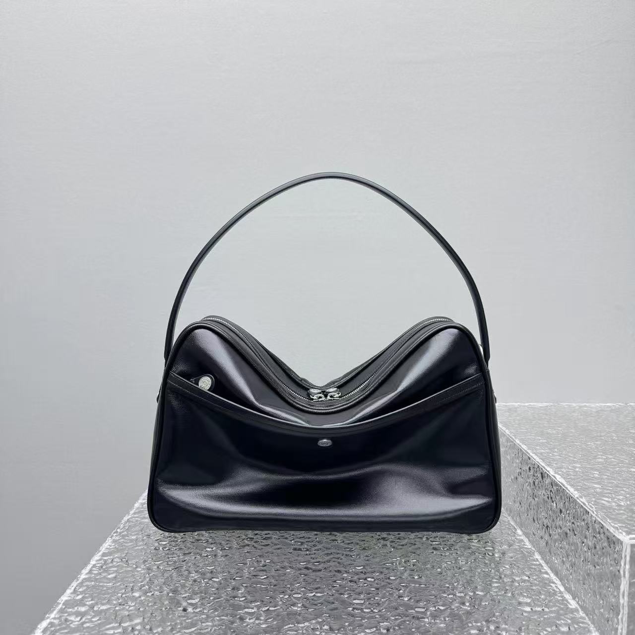 中號專屬的大容量空間: 底長 42cm 的空間非常充裕,不僅能裝下筆電、平板,連日常出行的衣物或化妝包都能輕鬆收納。雖然容量大,但透過優秀的結構設計,即便裝滿物品,包身依然能保持俐落的長方廓形。