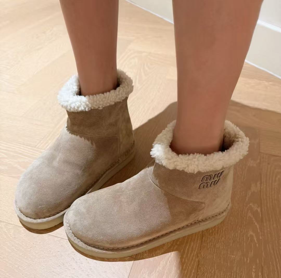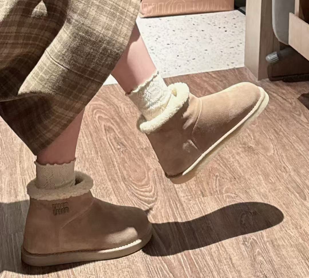 圓滾麂皮+毛絨鞋口,甜酷修腿的視覺魔法