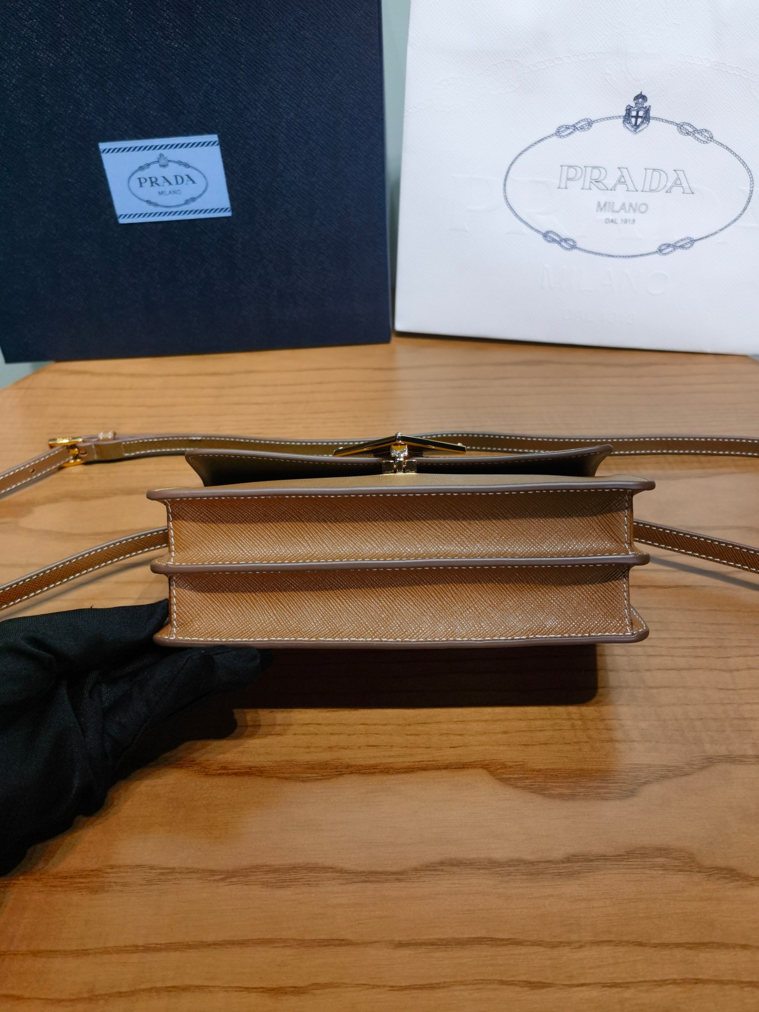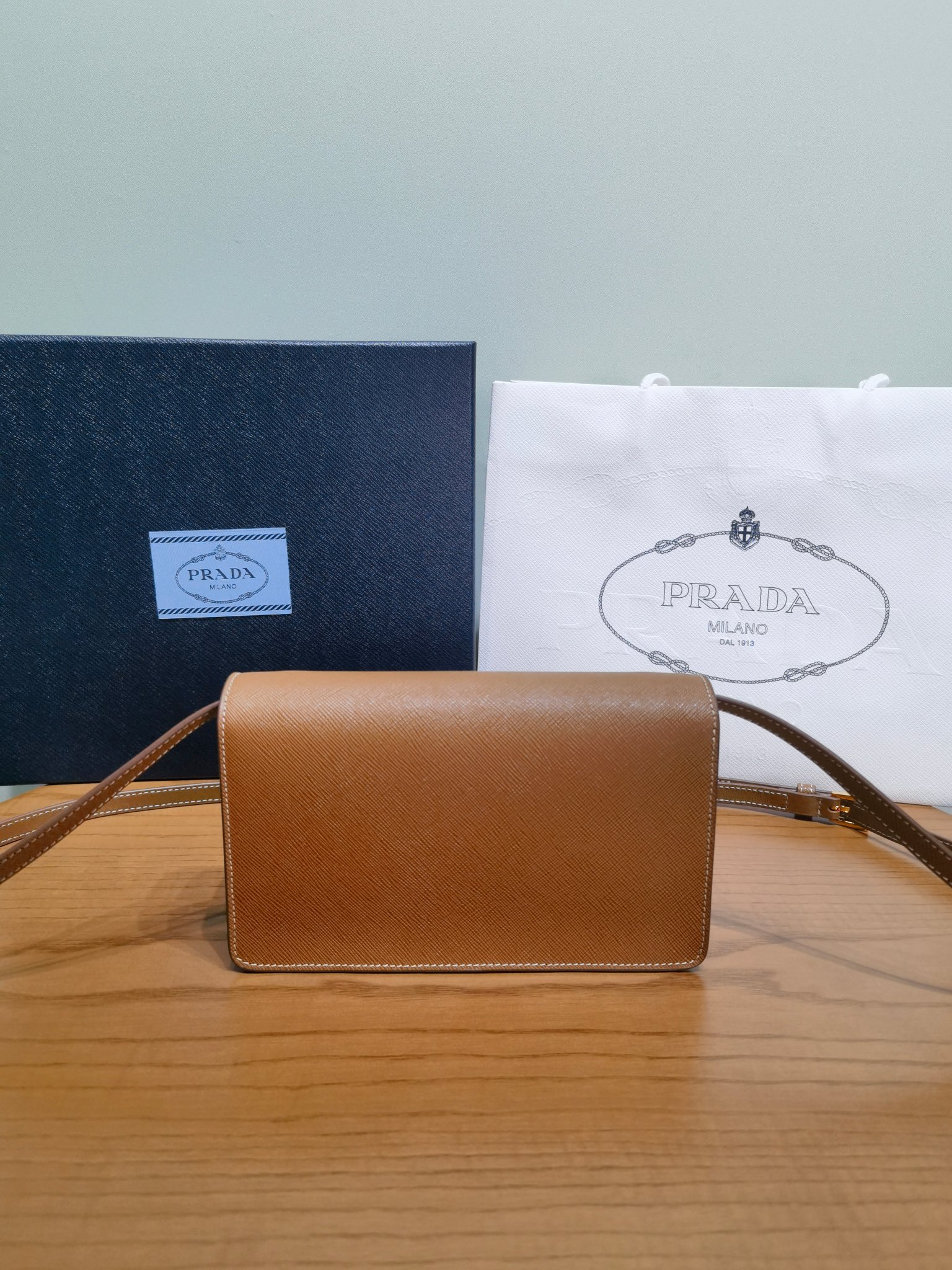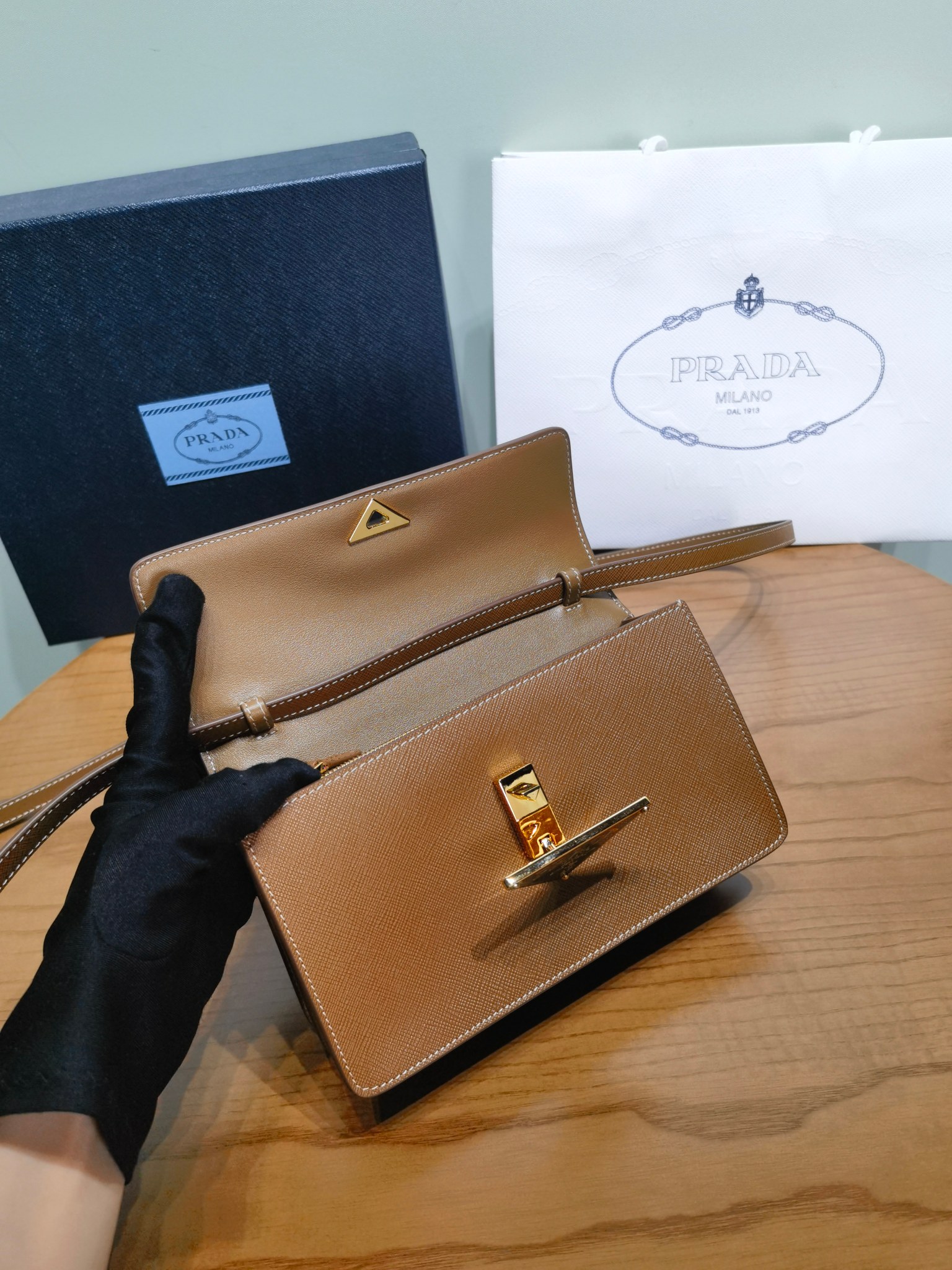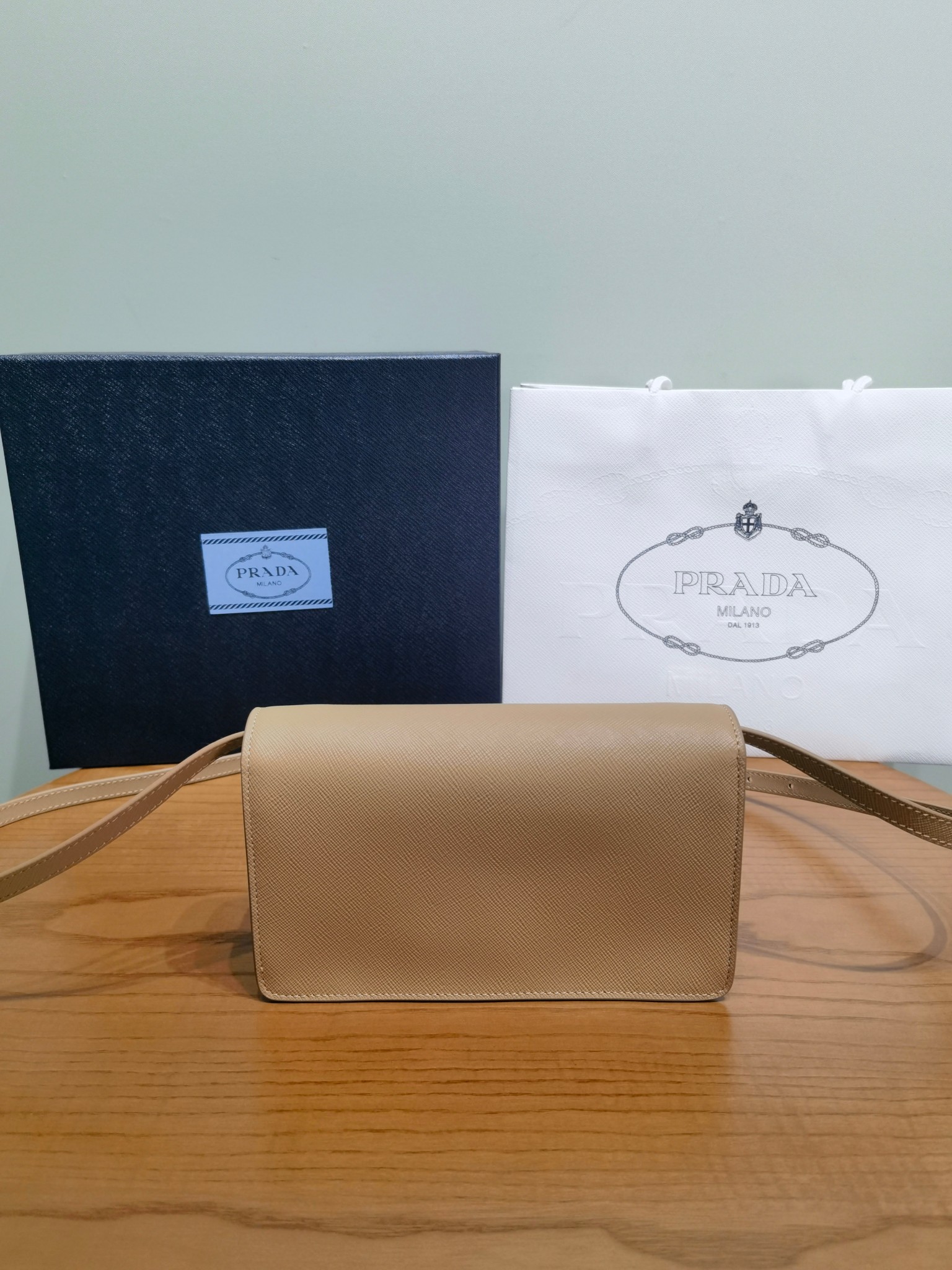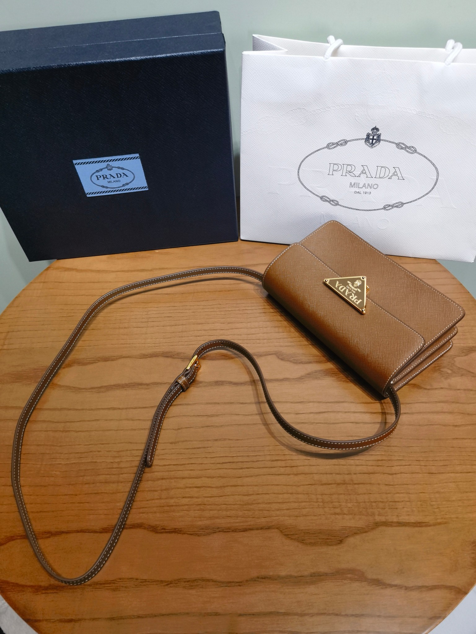方正輪廓搭配品牌經典的三角形金屬標誌,低調又不失精緻感,一眼就能認出是P家的經典之作。