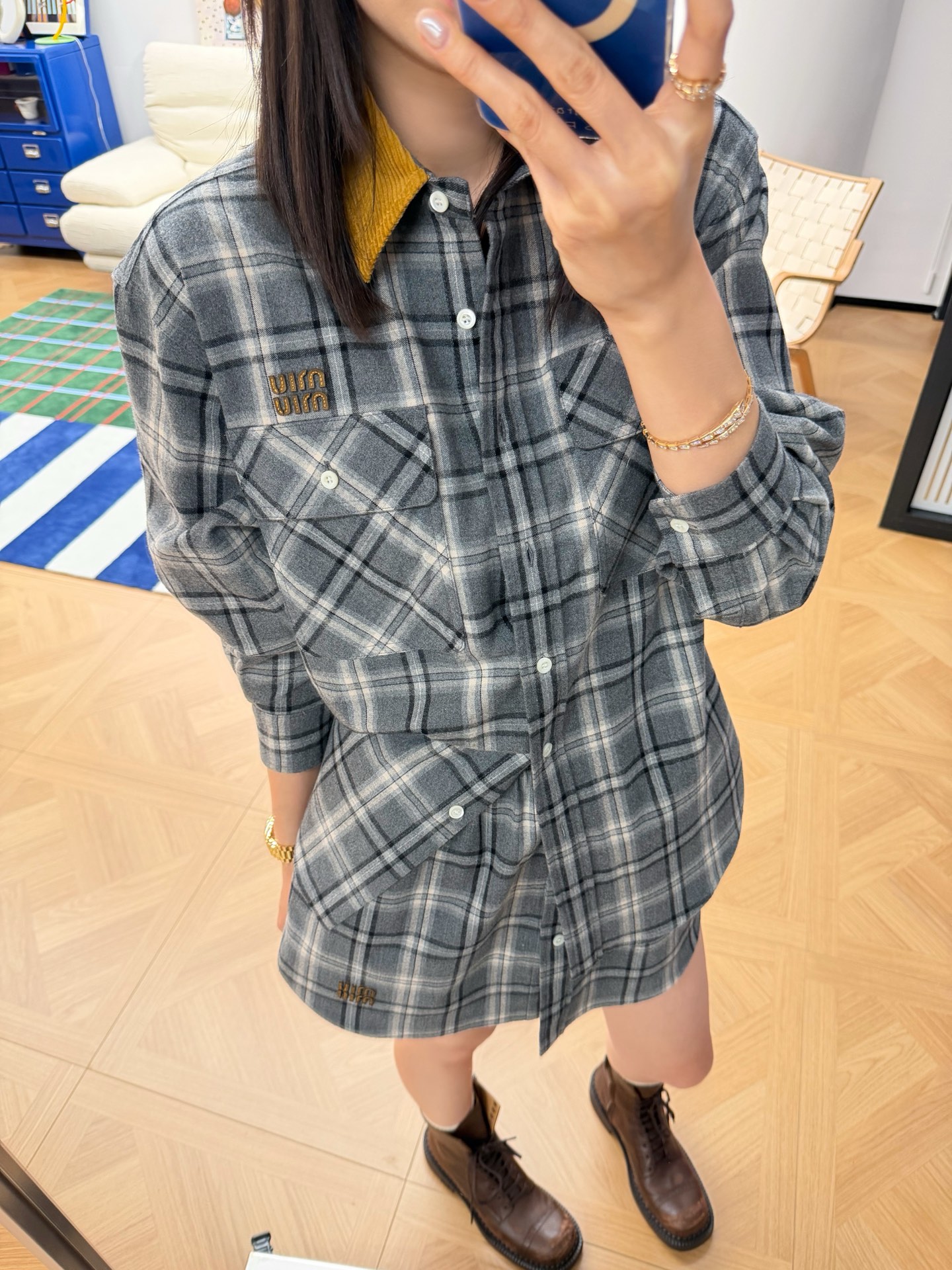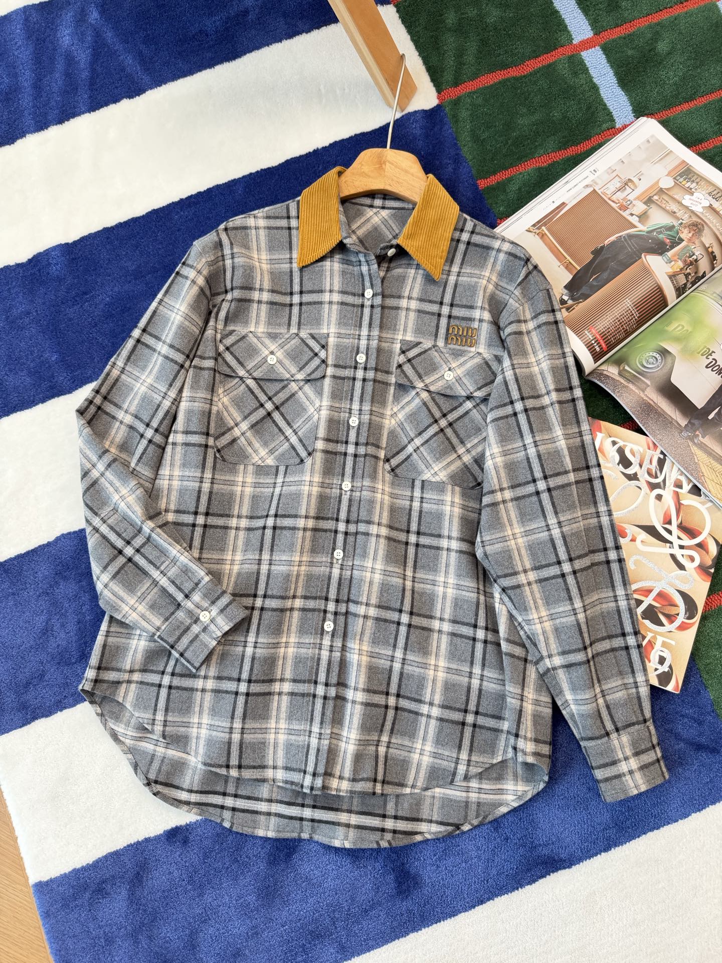 2025秋冬新品 Miu家 格紋法蘭絨襯衫