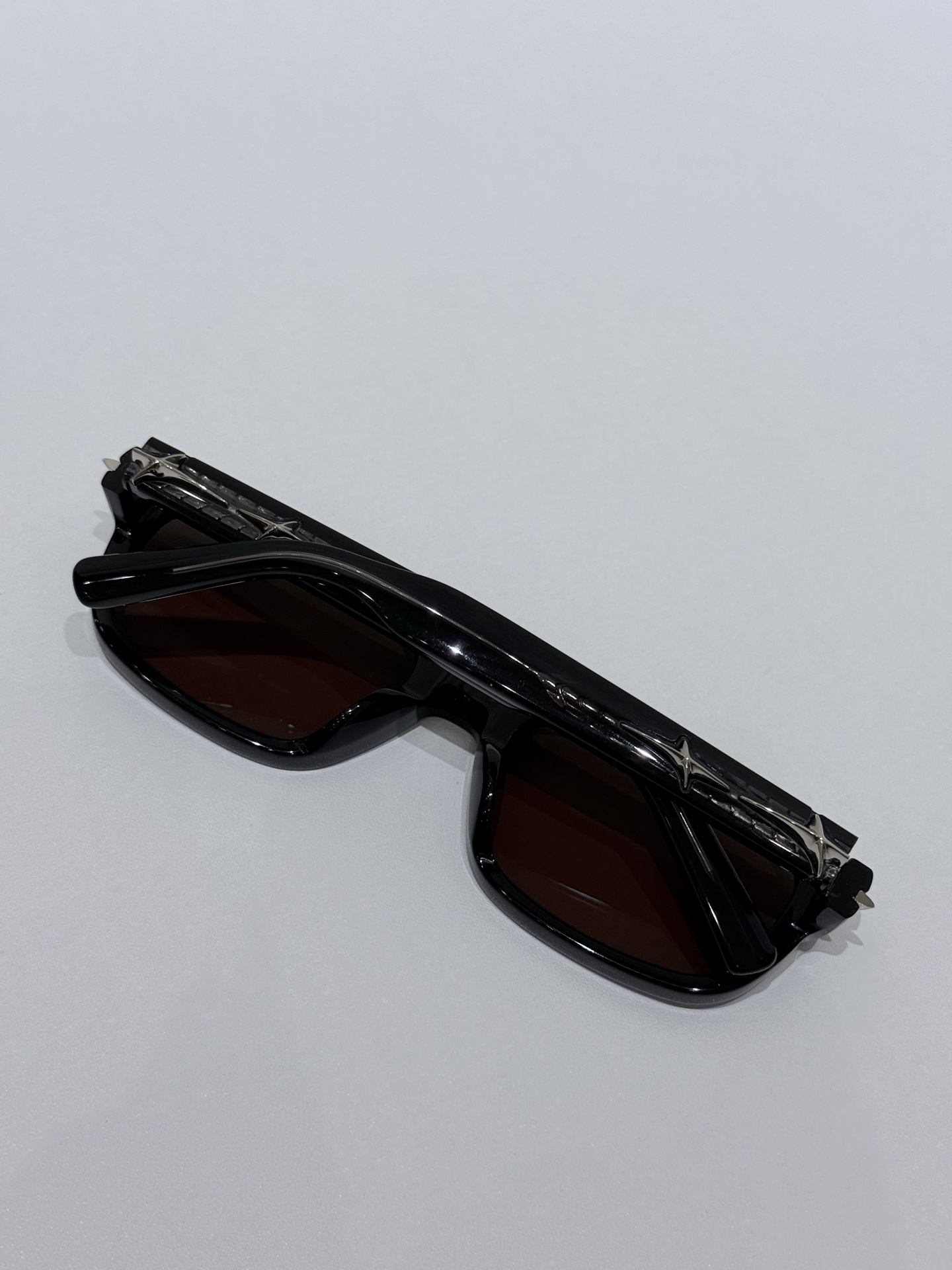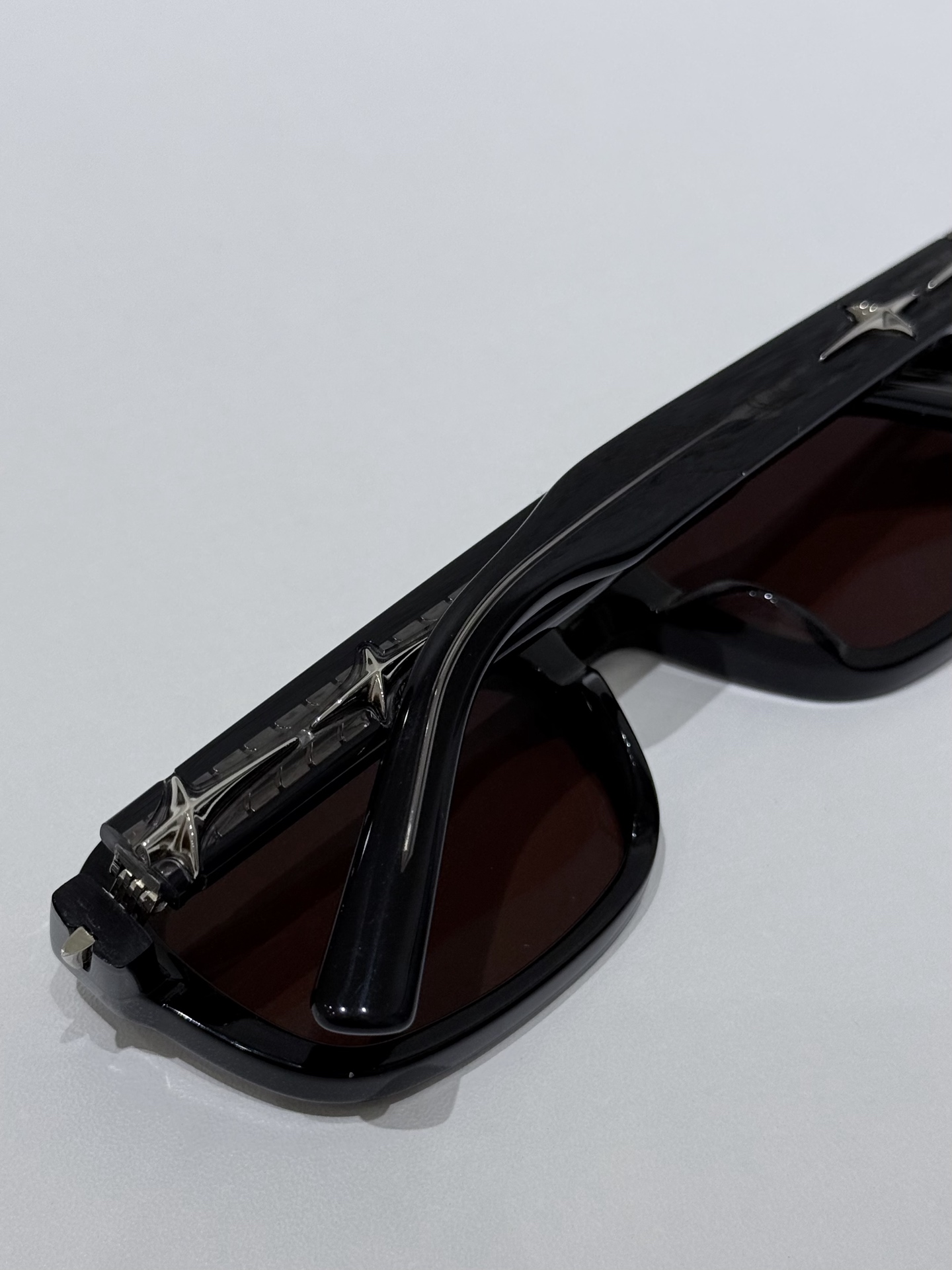 這款太陽眼鏡整體走的是俐落又帶點藝術感的路線,線條乾淨、輪廓鮮明,但不會過於張揚,是那種「越看越有型」的設計。