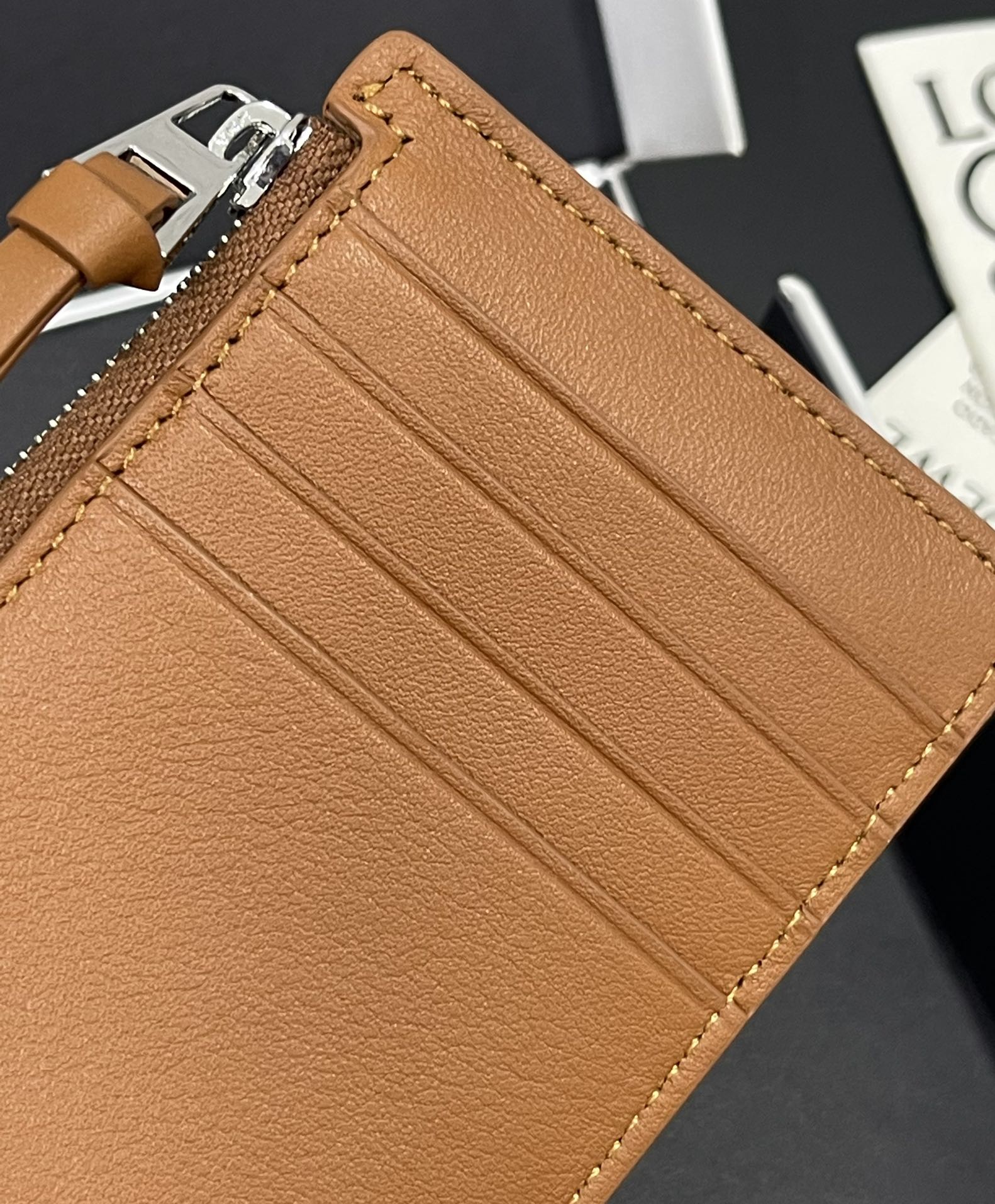 卡包配置四個卡位,再加上側邊拉鍊隔層,可放零錢、發票或折疊紙鈔,日常使用完全夠用。