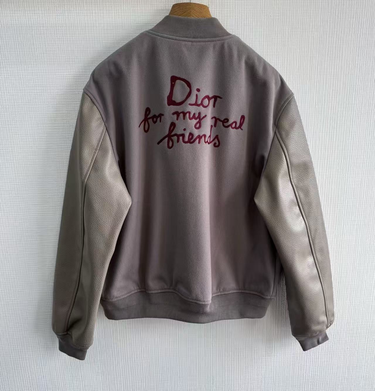 遠看就是經典美式棒球夾克,近看背後那排超大字母是用榻榻米針法+超啞光錦綸線繡出來的,立體到像浮雕,隨便一站就是整個校園最有錢的那個學長,帥到讓人想直接戀愛~