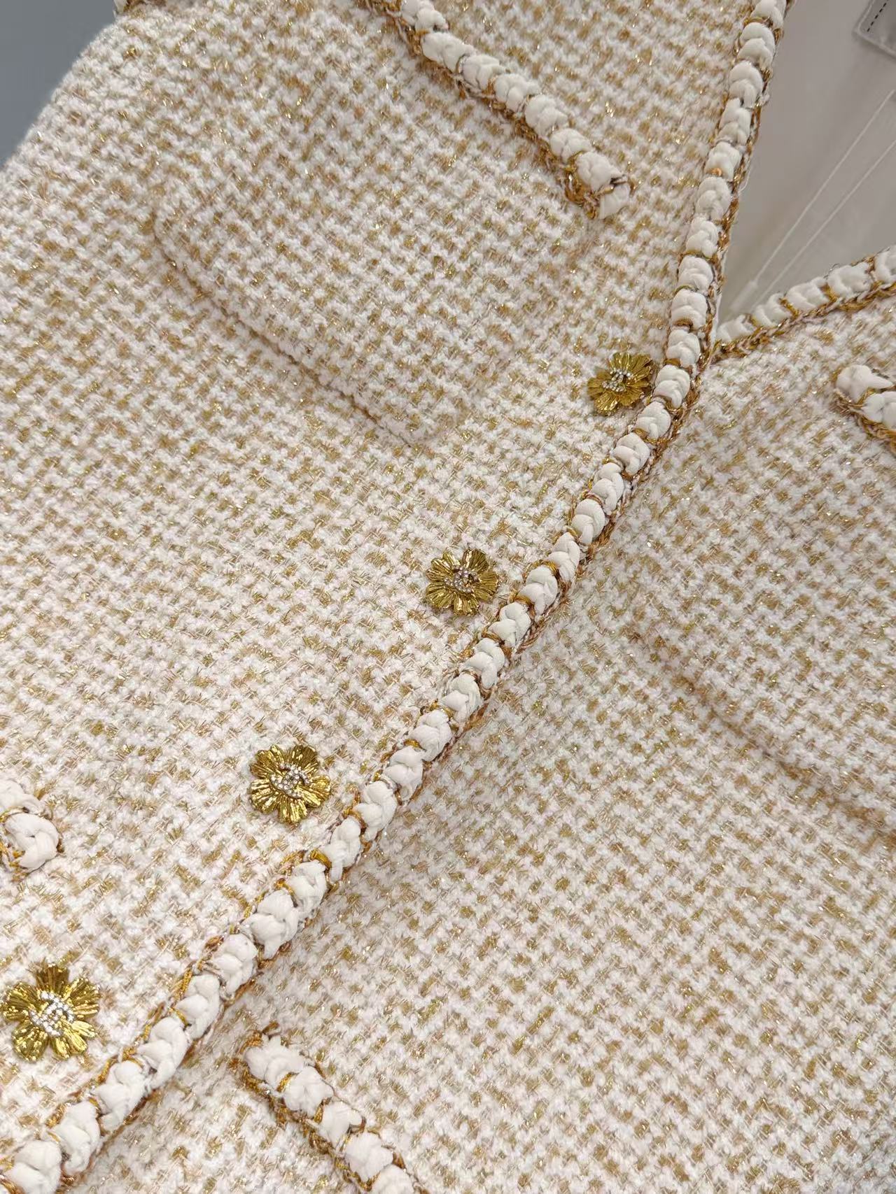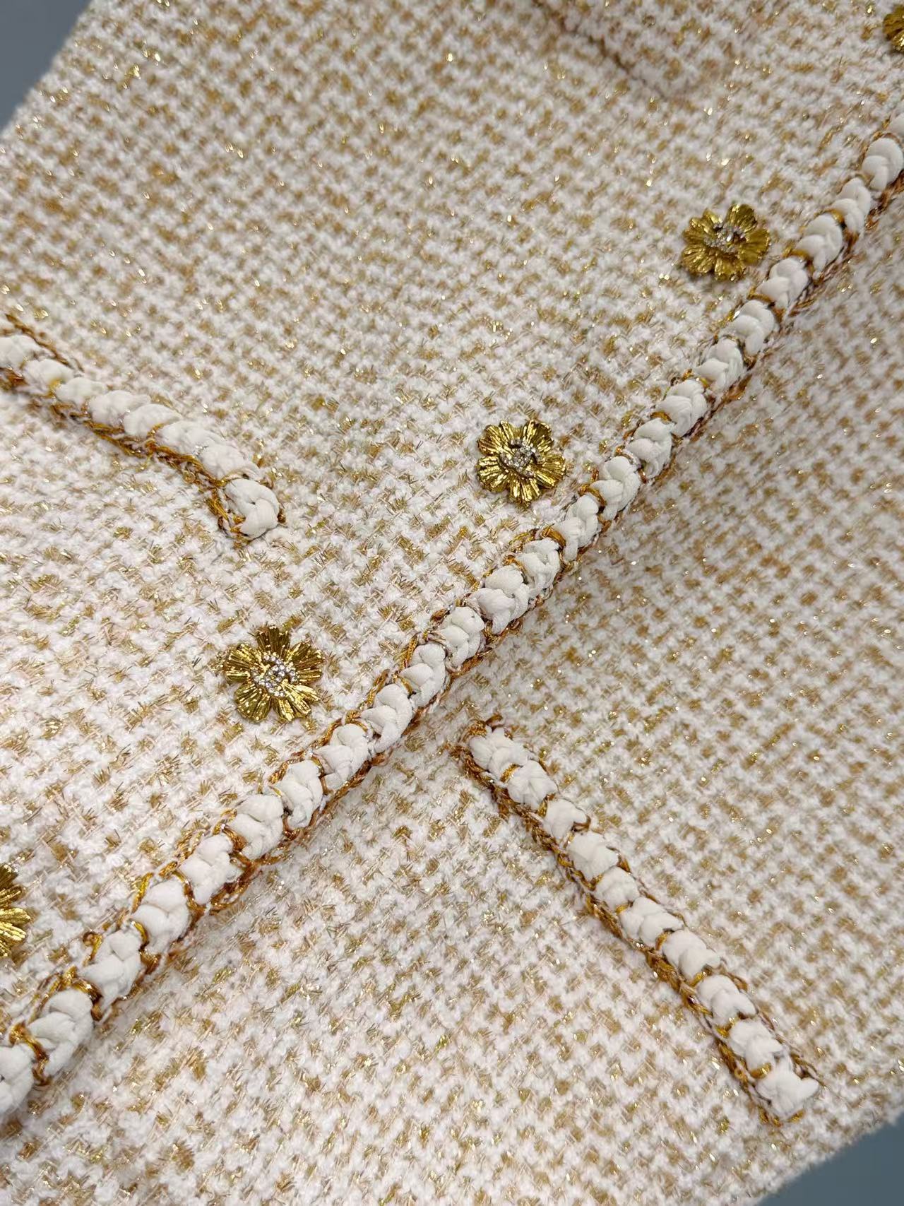 設計細節更是講究,採用了頂級版本的鉤織滾邊,搭配質感十足的金屬定制紐扣,完美呈現那種慵懶又高級的優雅感。