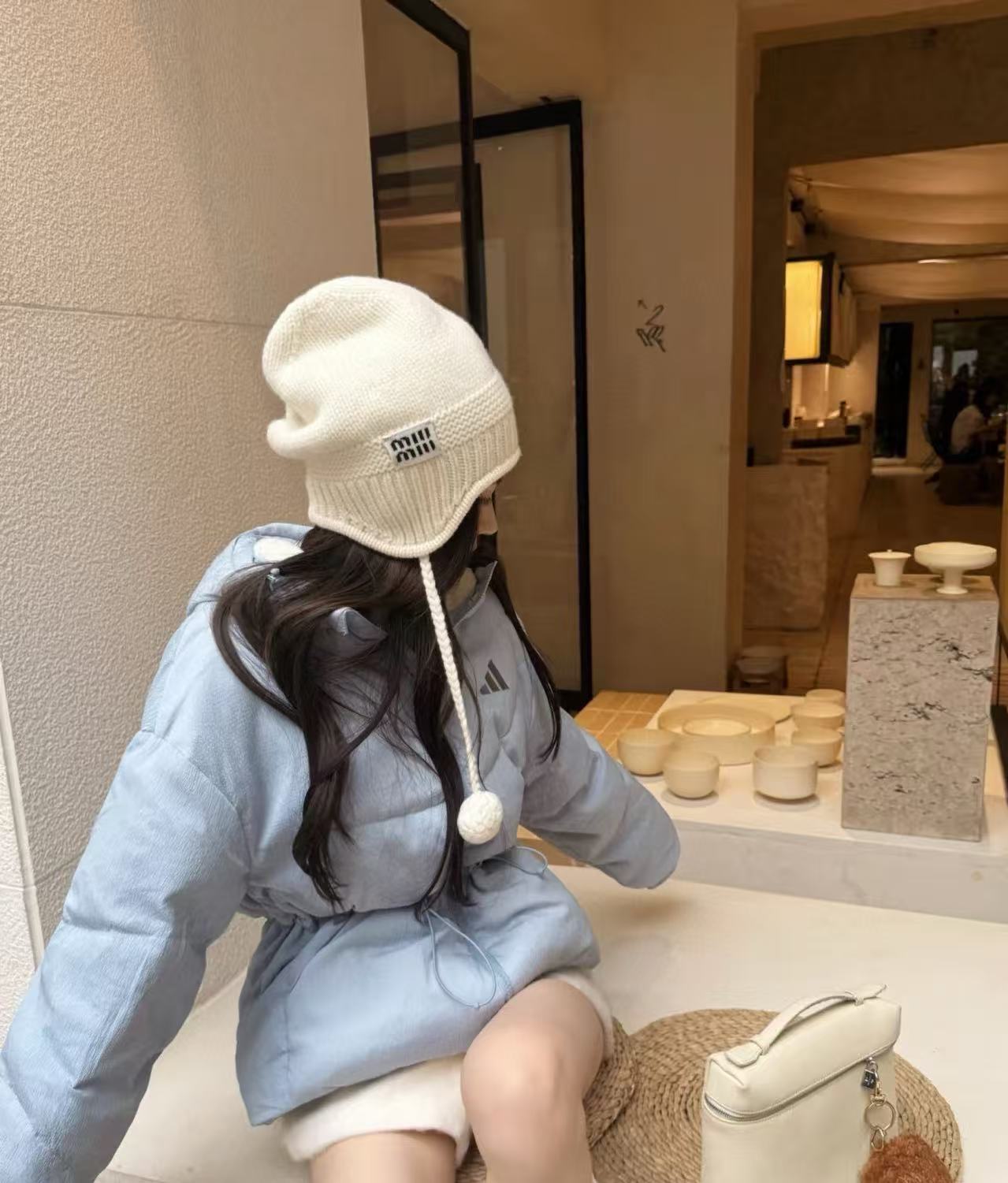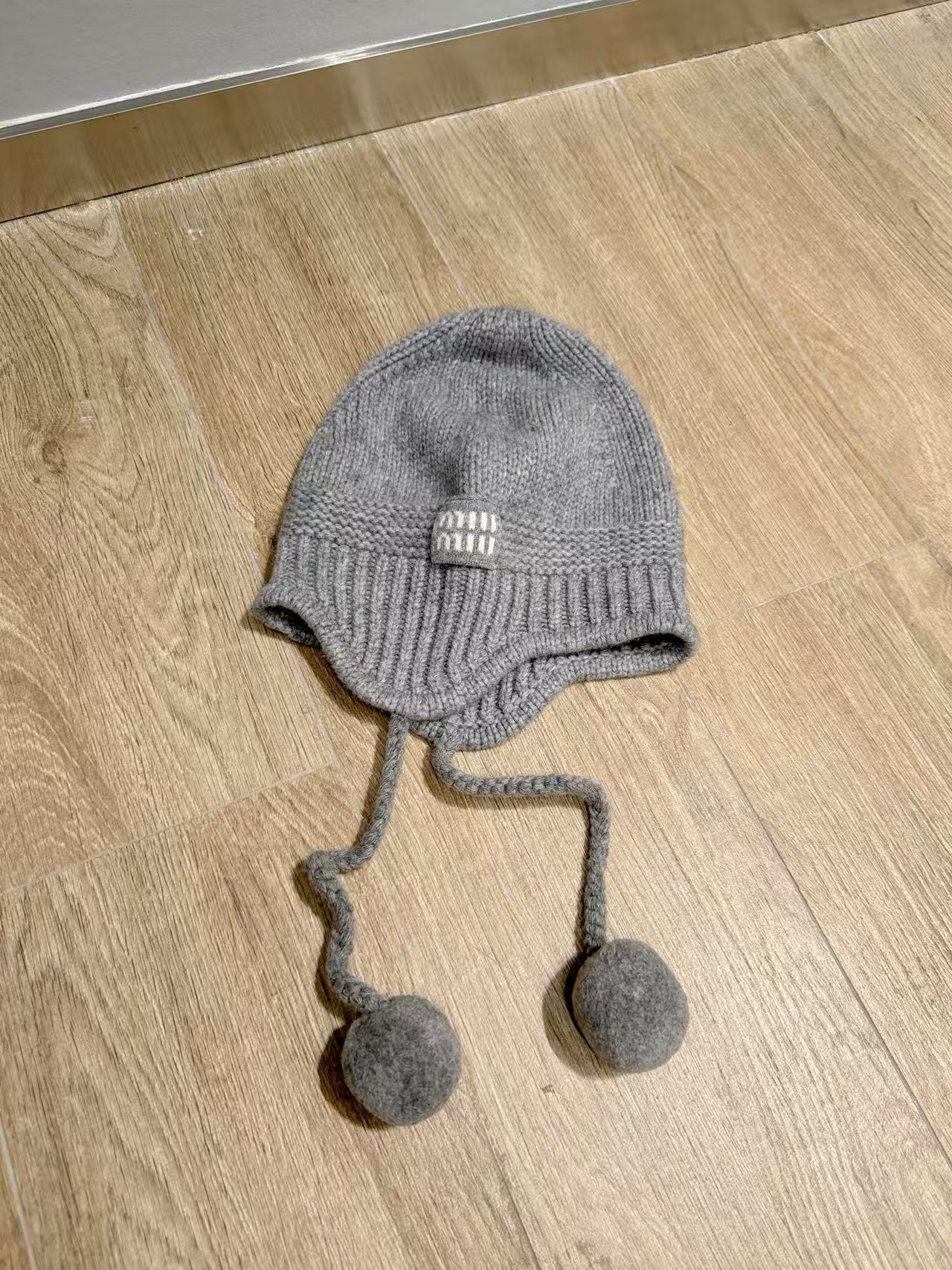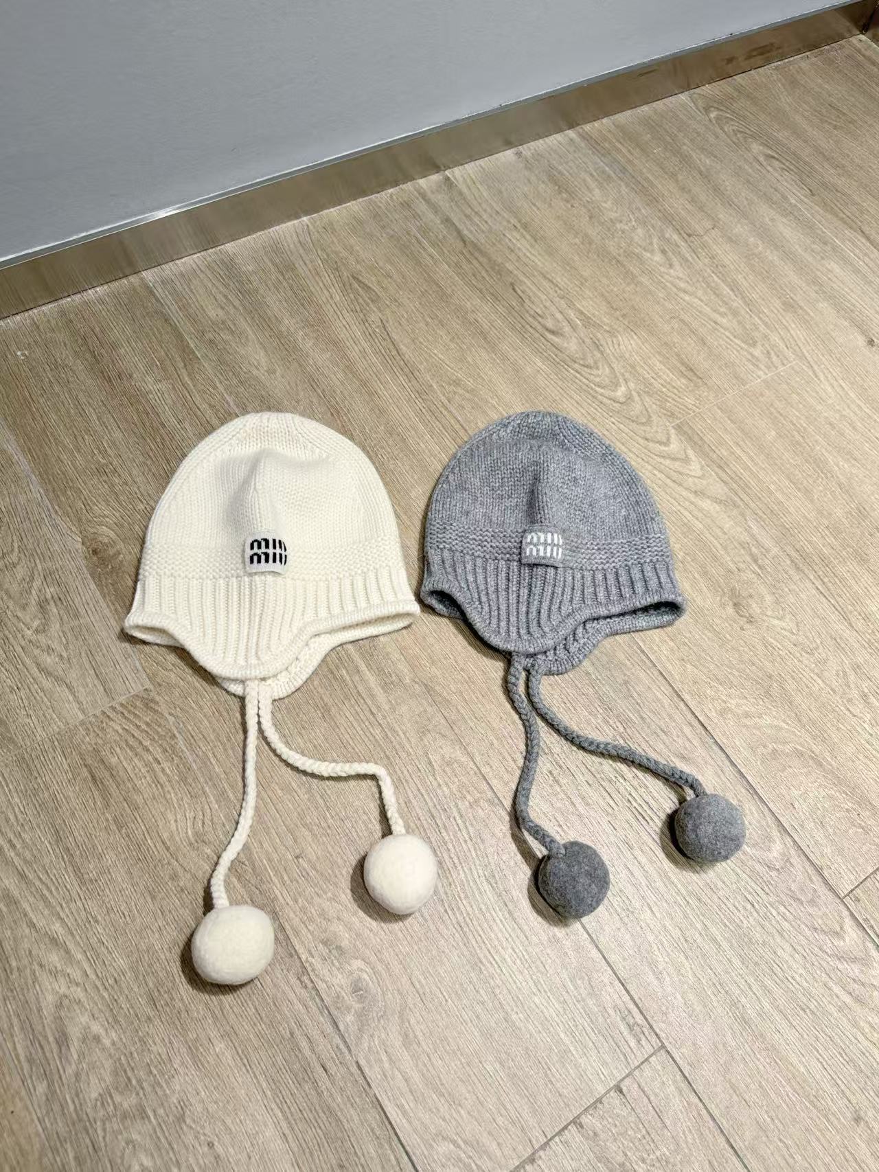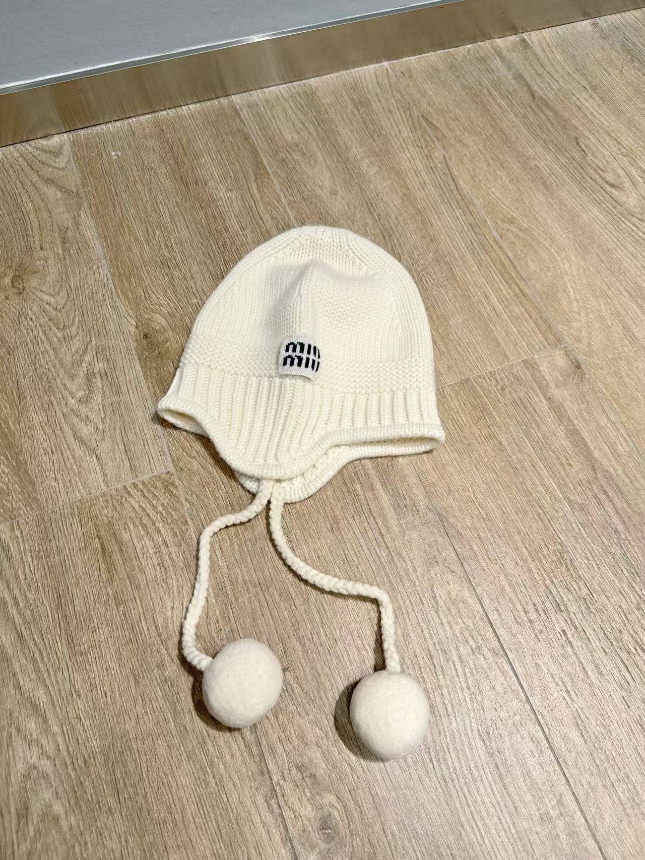 2025早秋 MIU家 護耳毛球羊絨針織帽