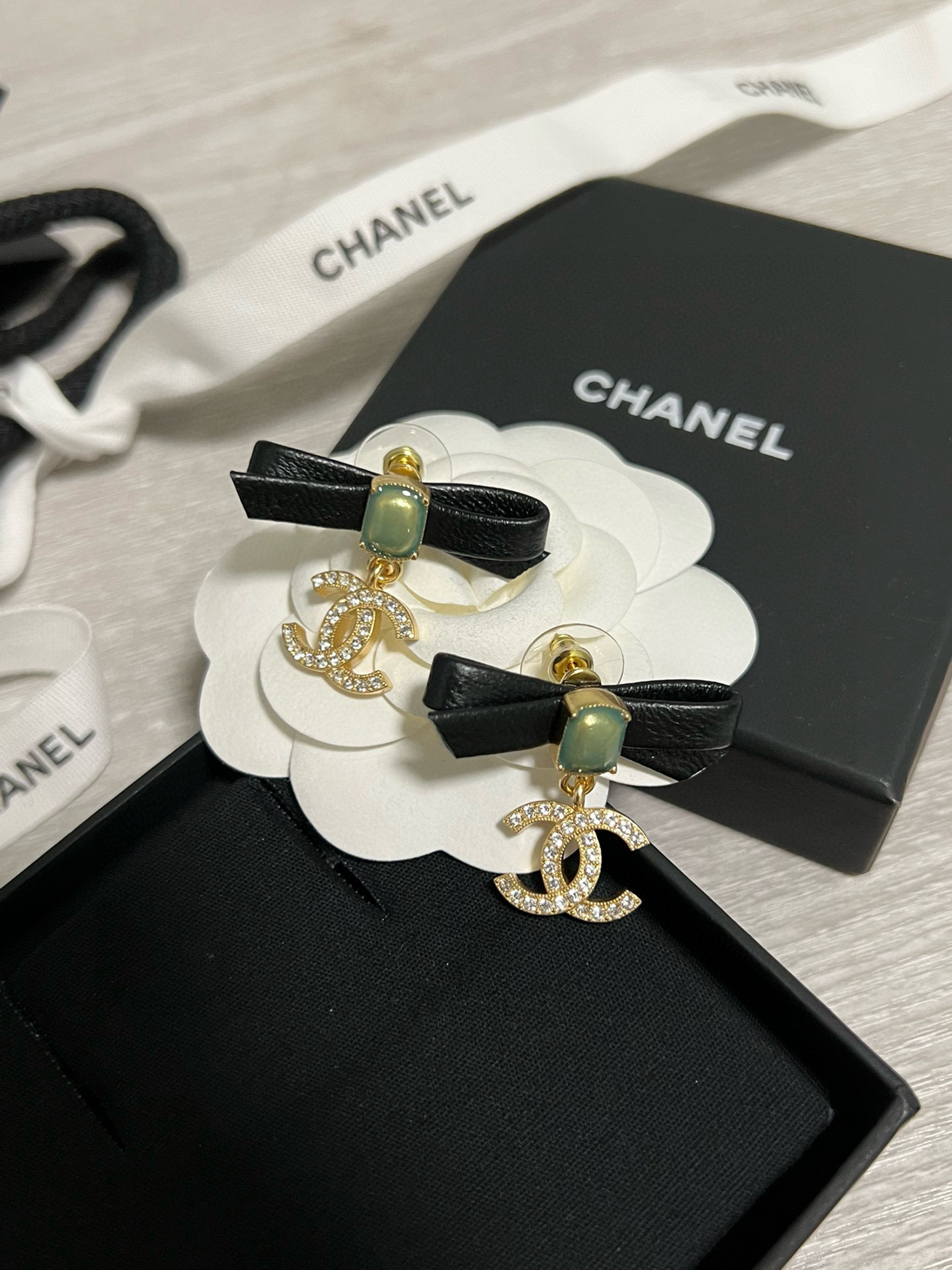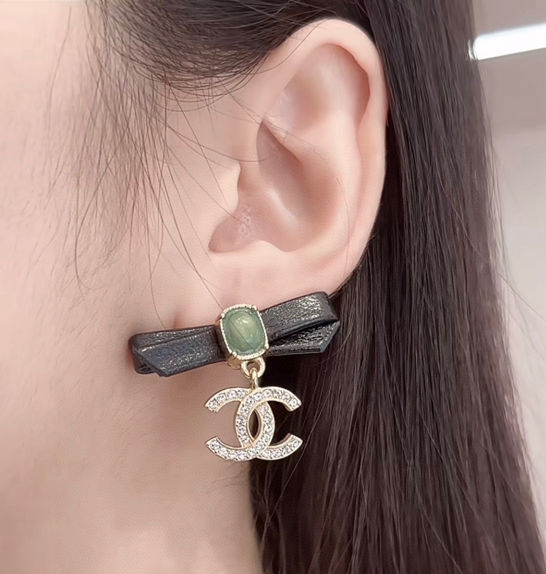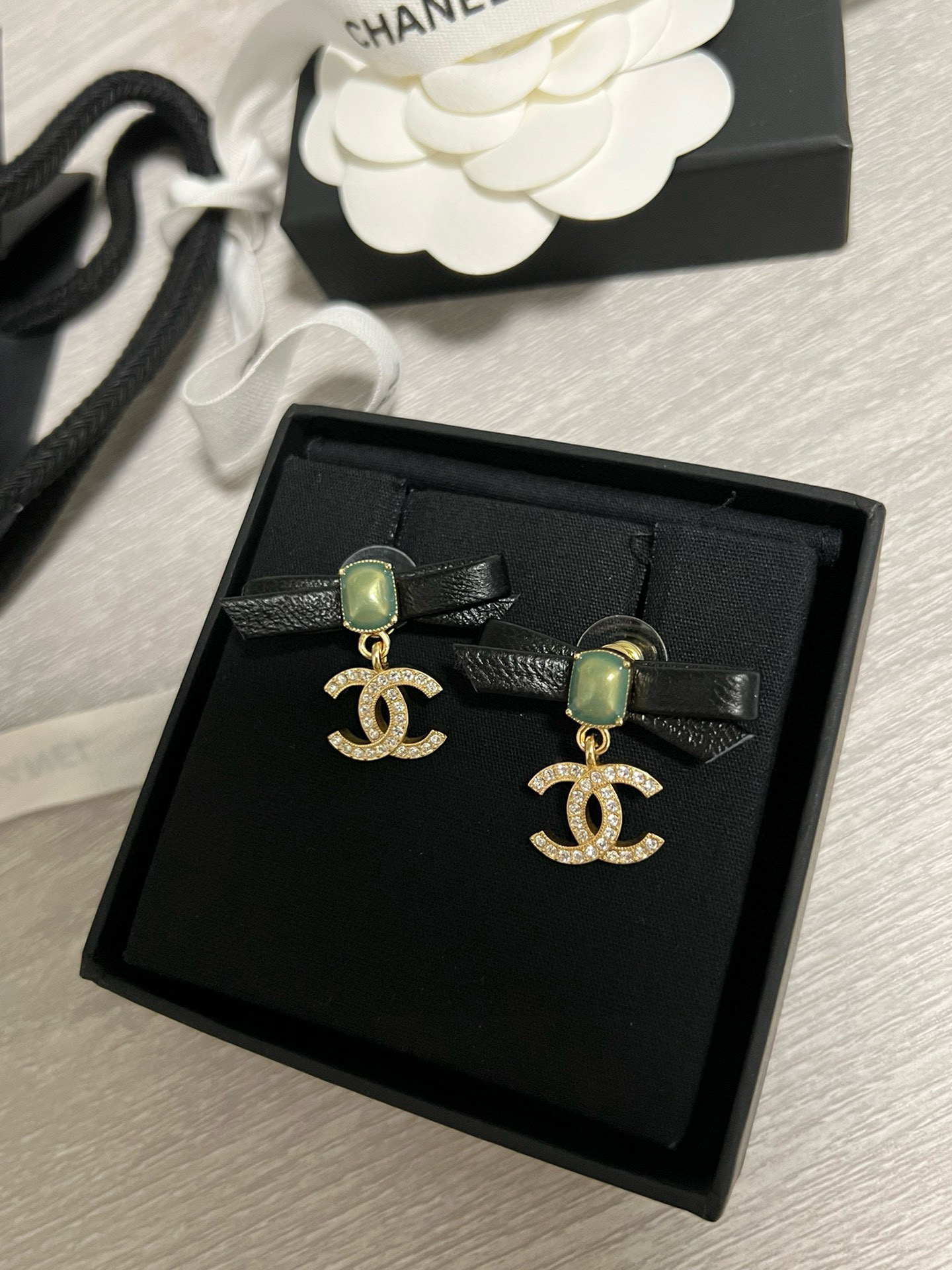 2025早春新品 C家皮蝴蝶結綠琺琅金C耳環