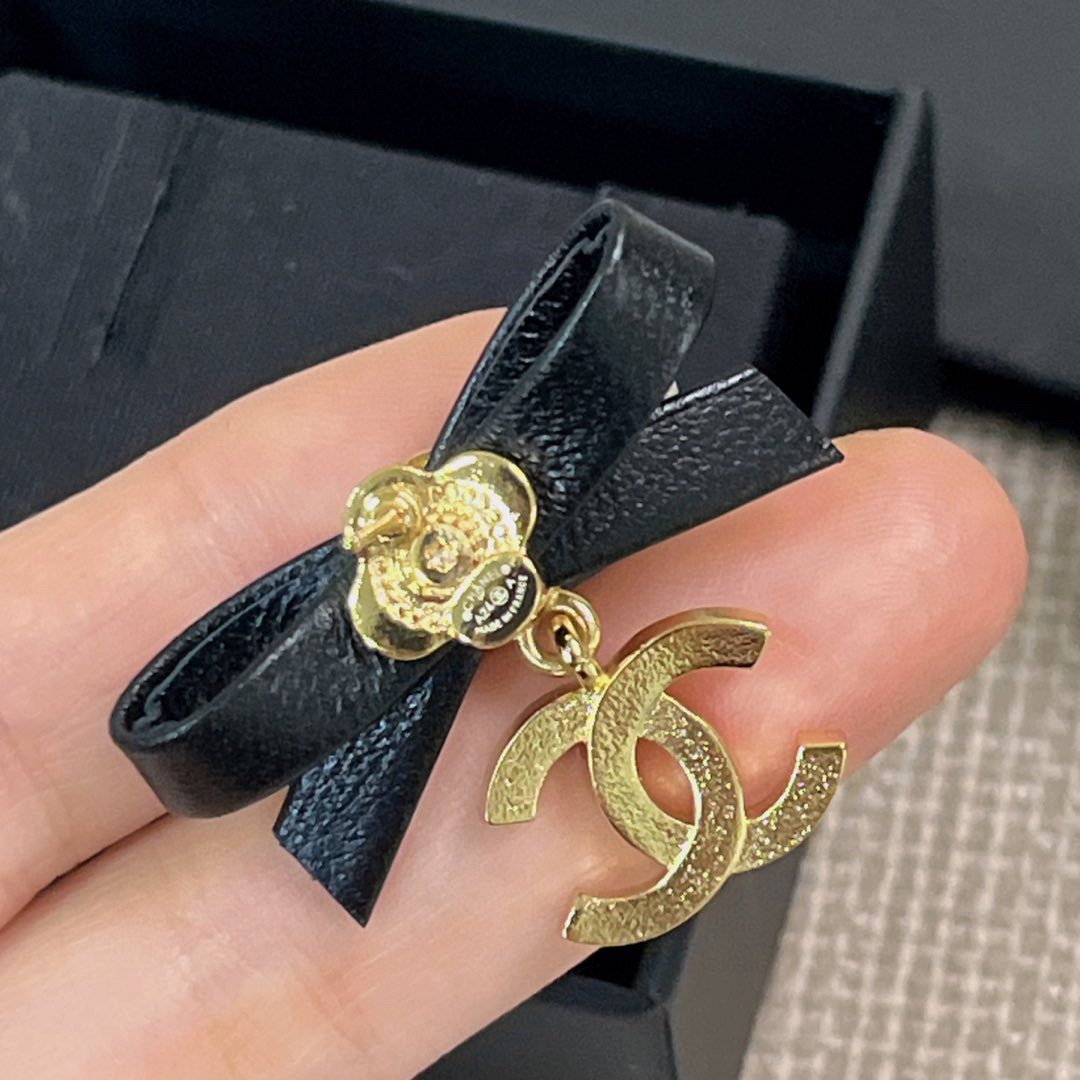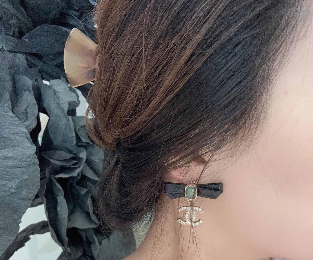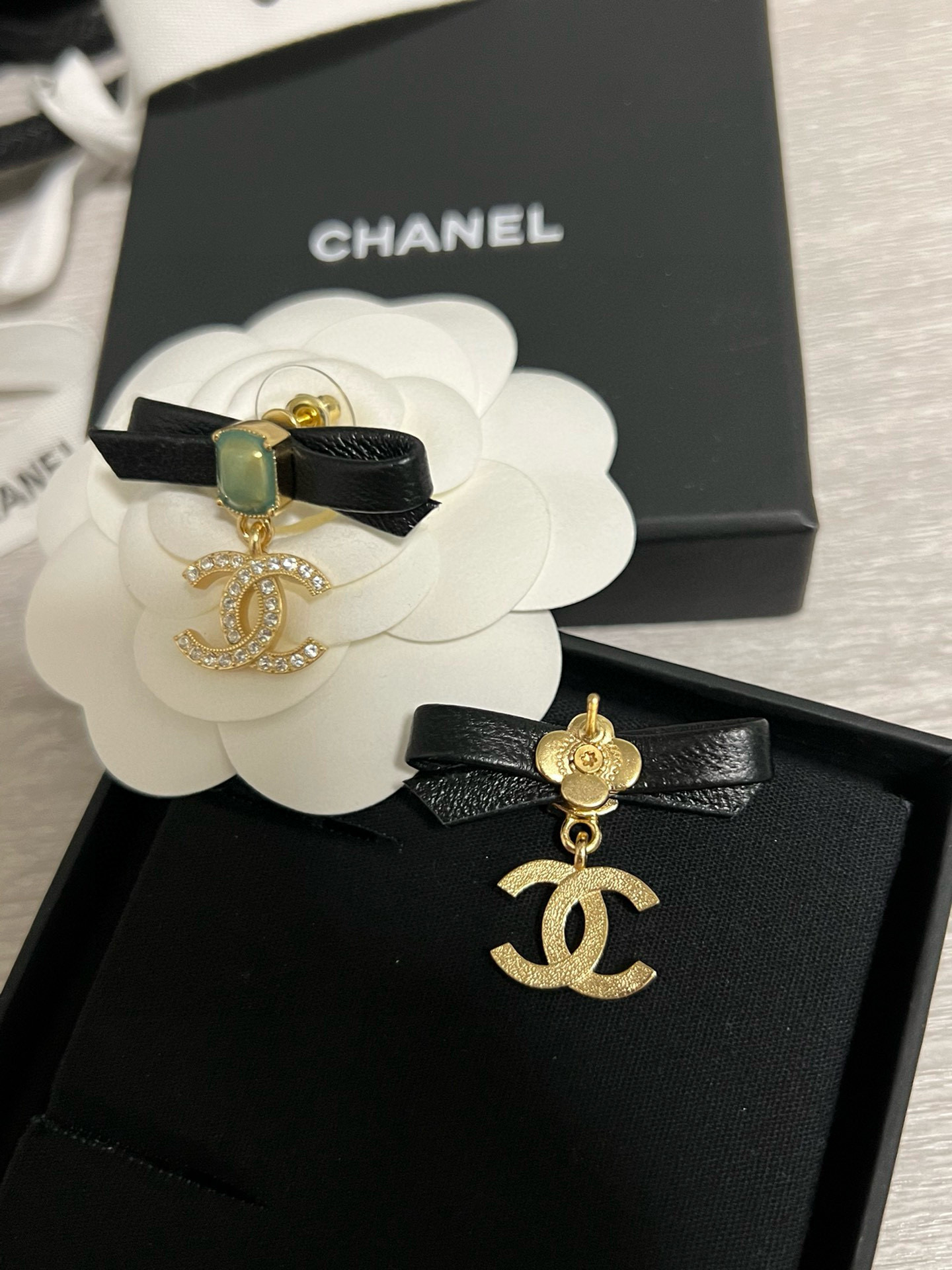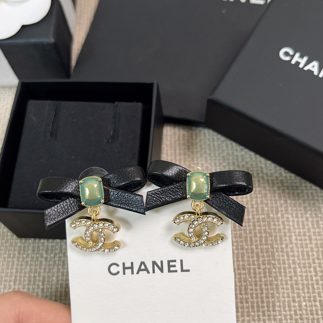 2025早春新品 C家皮蝴蝶結綠琺琅金C耳環