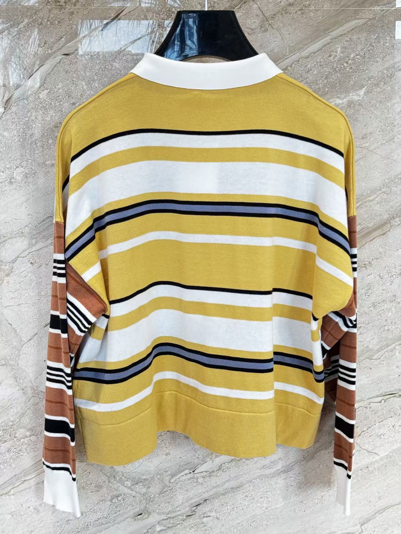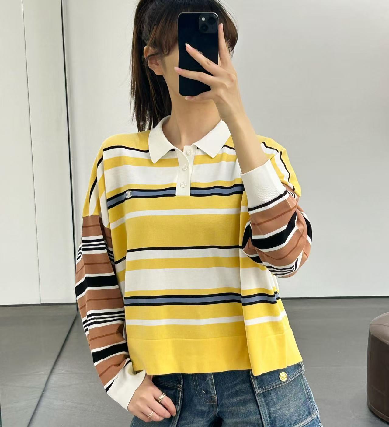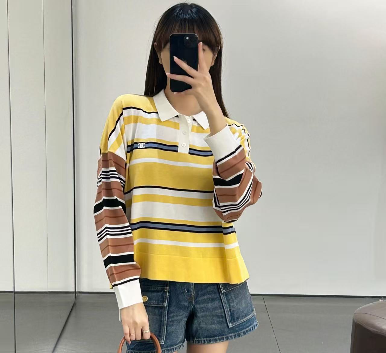 最瘋狂的當然是那「細膩針織條紋」+「迷你凱旋門繡標」!條紋不是印花,是真·針織一針一線織出來,摸起來軟糯又有彈性;領口凱旋門繡標位置精準到0.1mm,低調到只給懂的人看,強迫症看了會直接淚崩~
