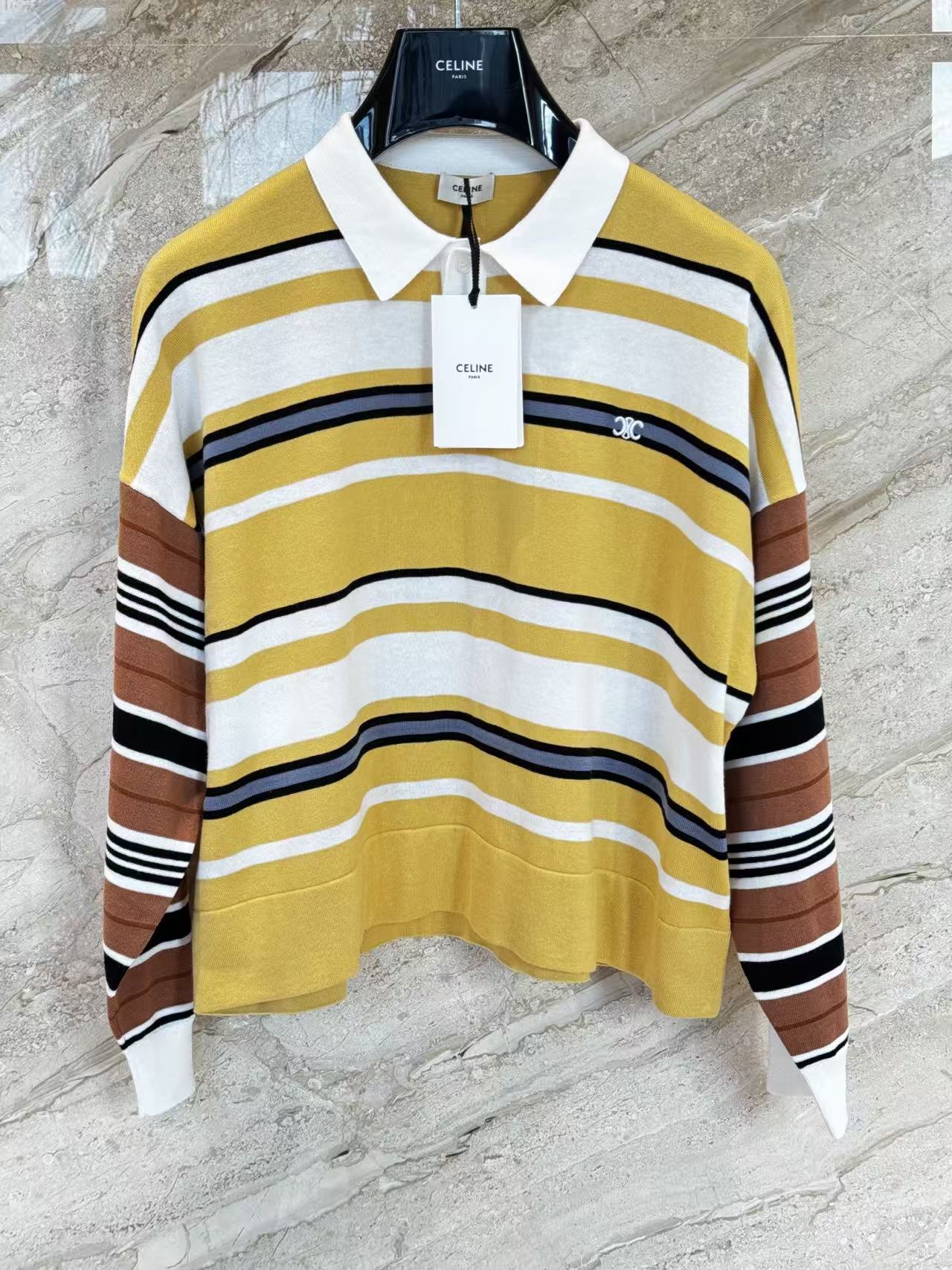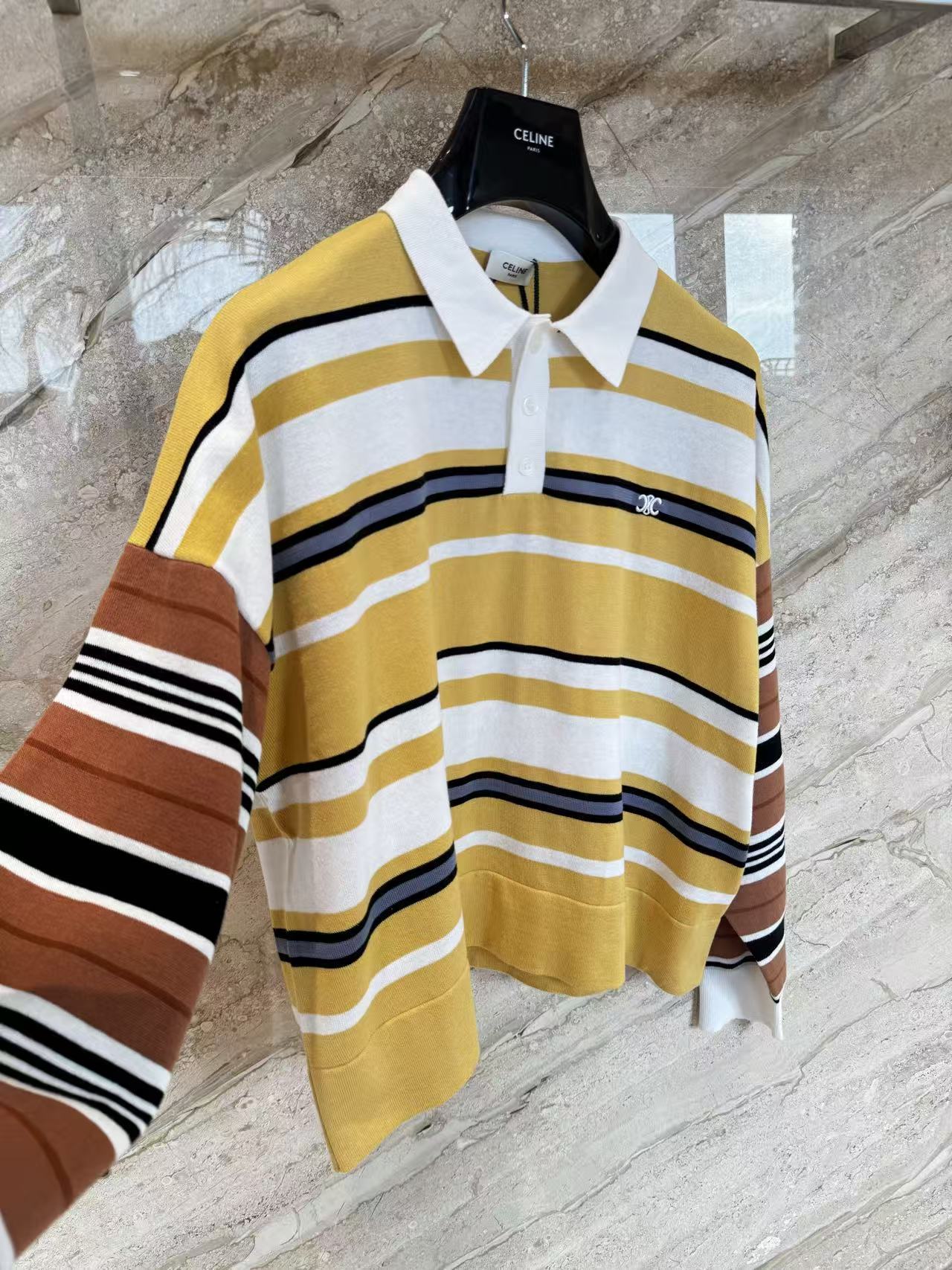 秋冬重磅特惠福利-CE家 拼色條紋針織翻領長袖