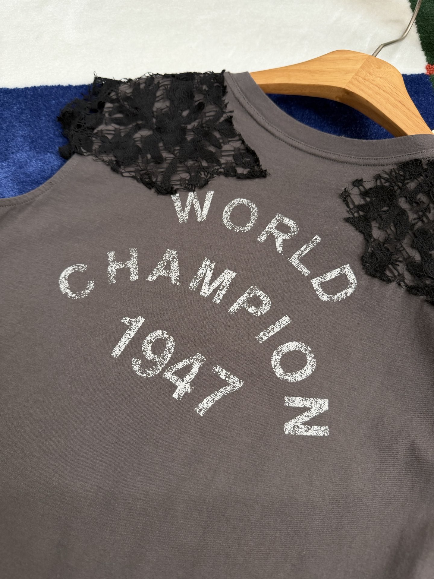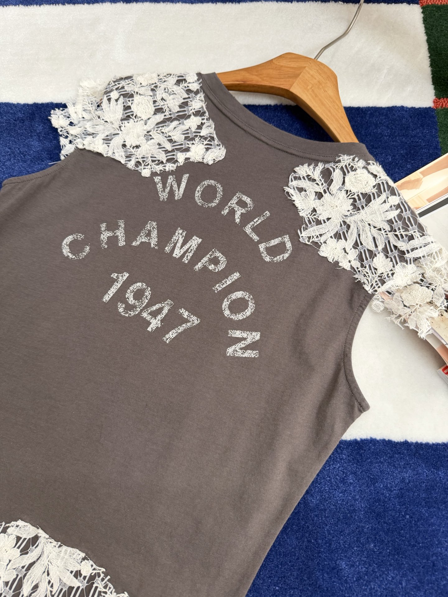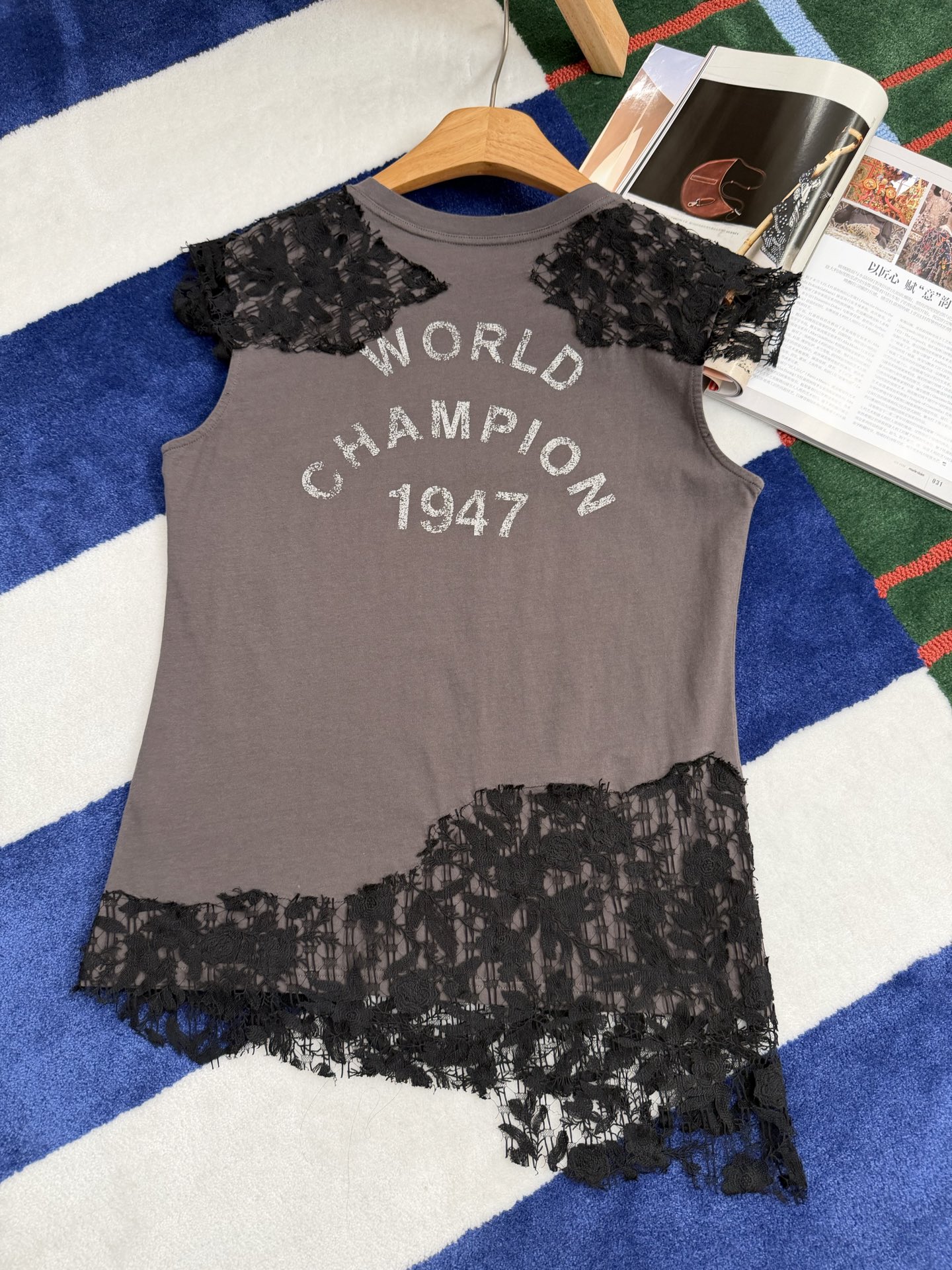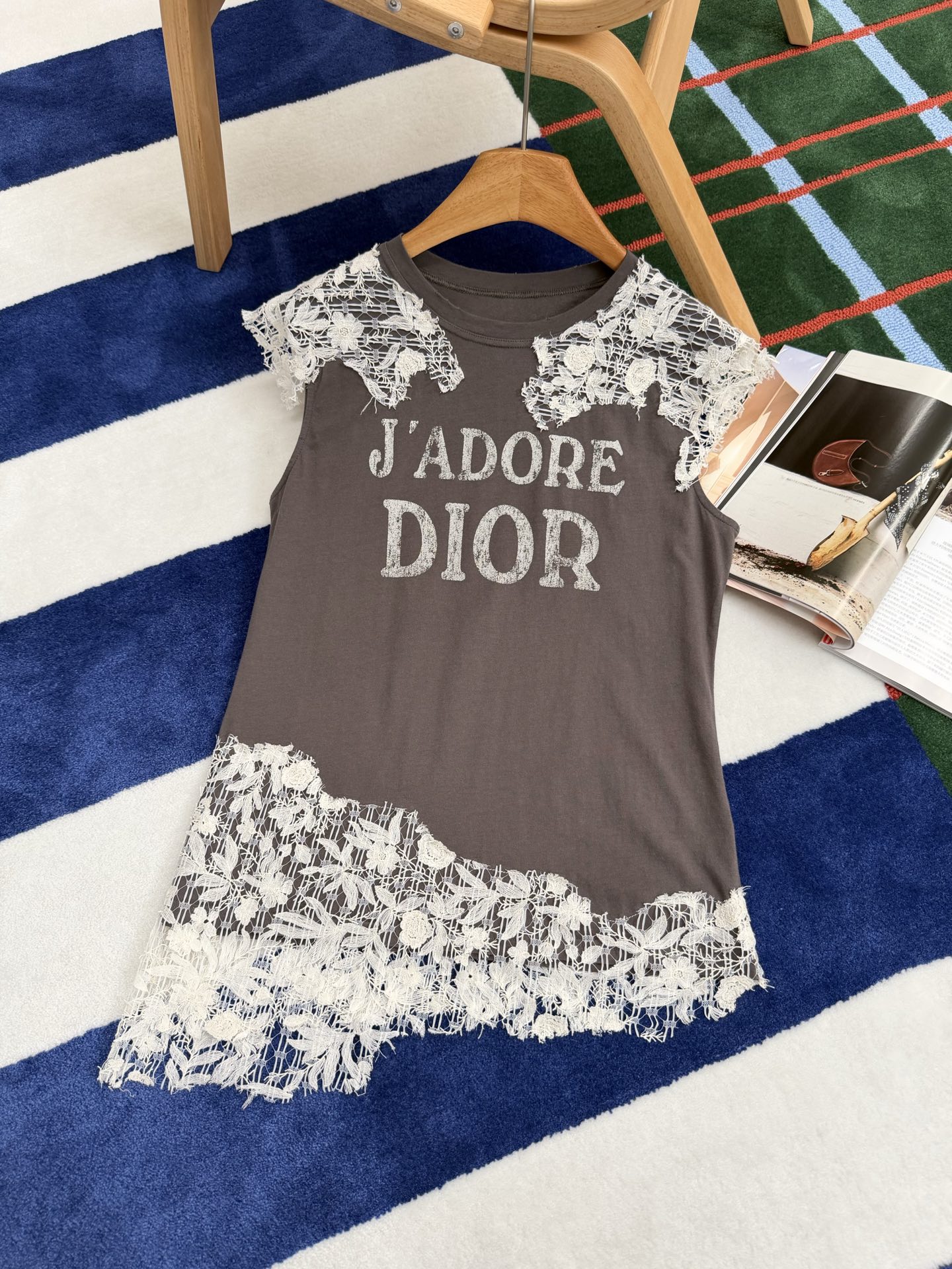 乍看是簡約的純棉短袖,但細看才會發現,整件的靈魂就在於那層層交織的蕾絲細節,把原本休閒的 T 恤,瞬間拉升到高級感滿滿的層次。