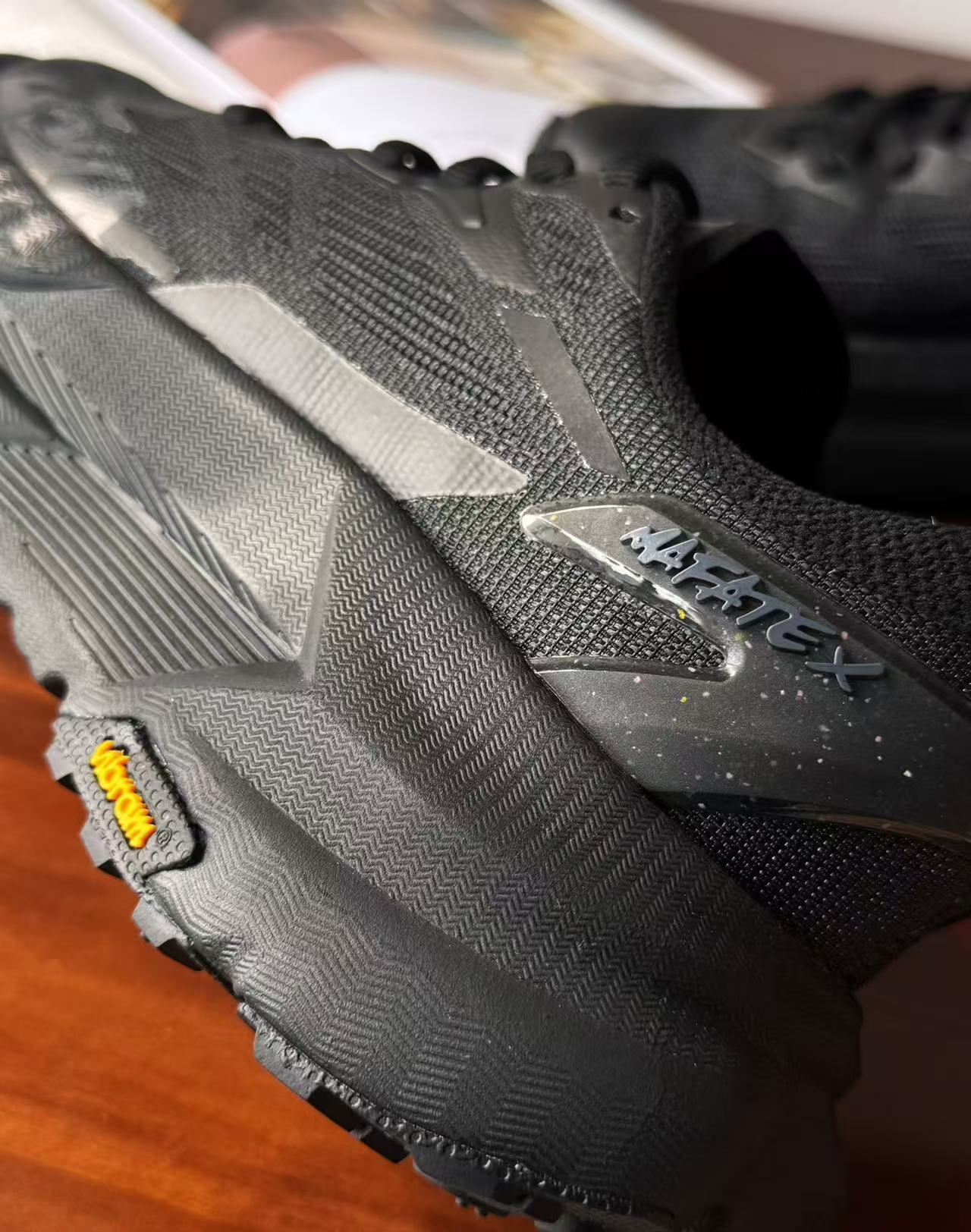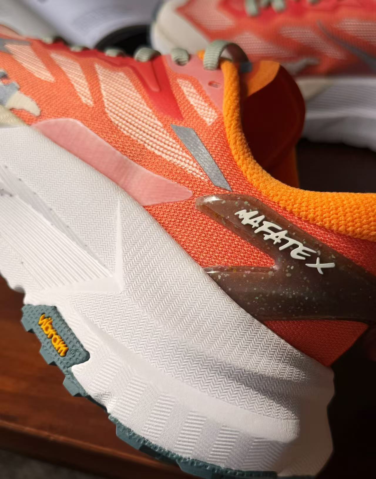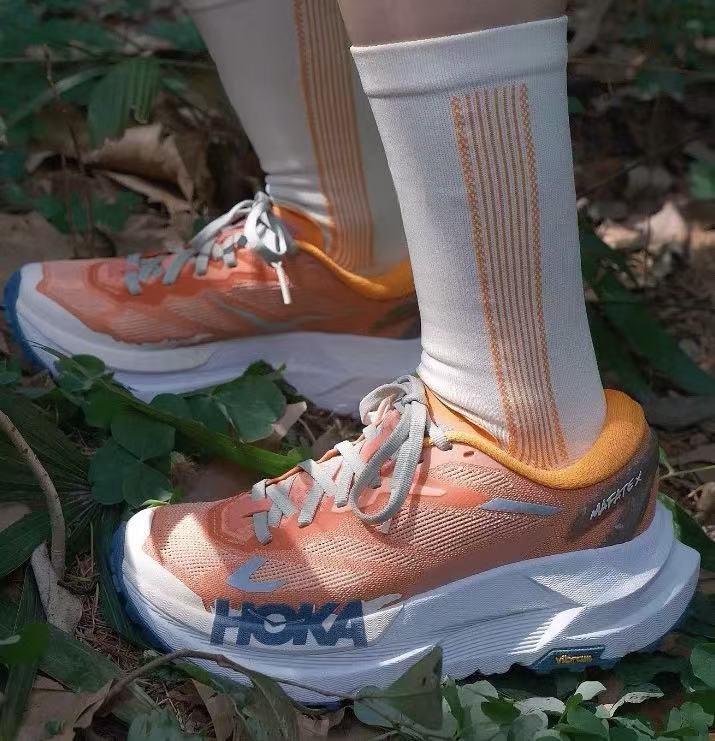 此外,它還採用了分叉式異型碳纖維推進板與超臨界中底框架,搭配 Vibram Megagrip 外底,在各種複雜地形上都能保持出色的抓地力,讓你無論是在乾燥山地、濕滑泥地還是崎嶇石階上,都能穩步前行。