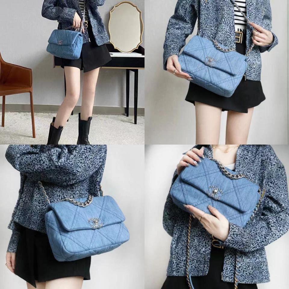 C家19bag丹寧牛仔系列口蓋包 小號(淺色)