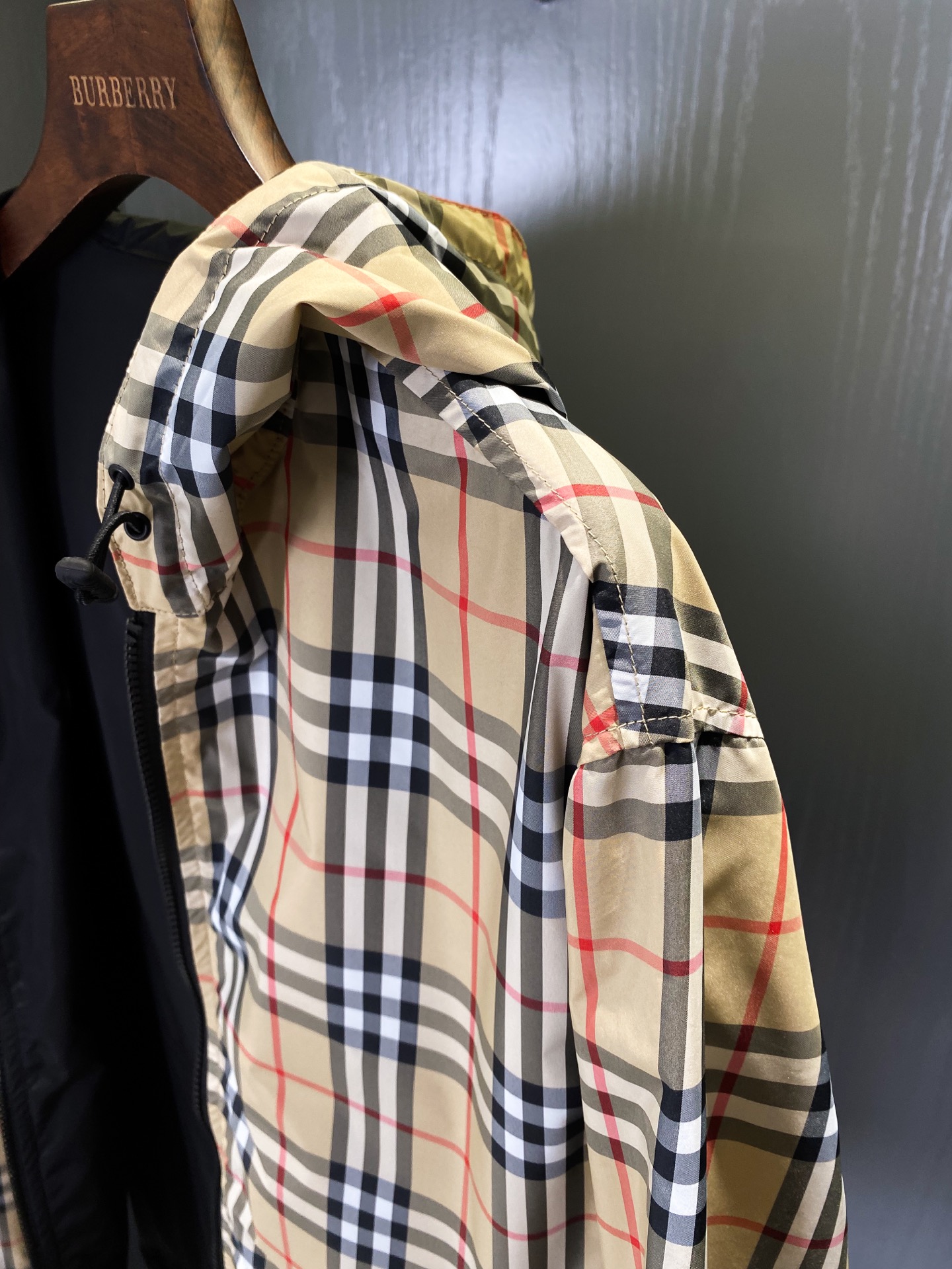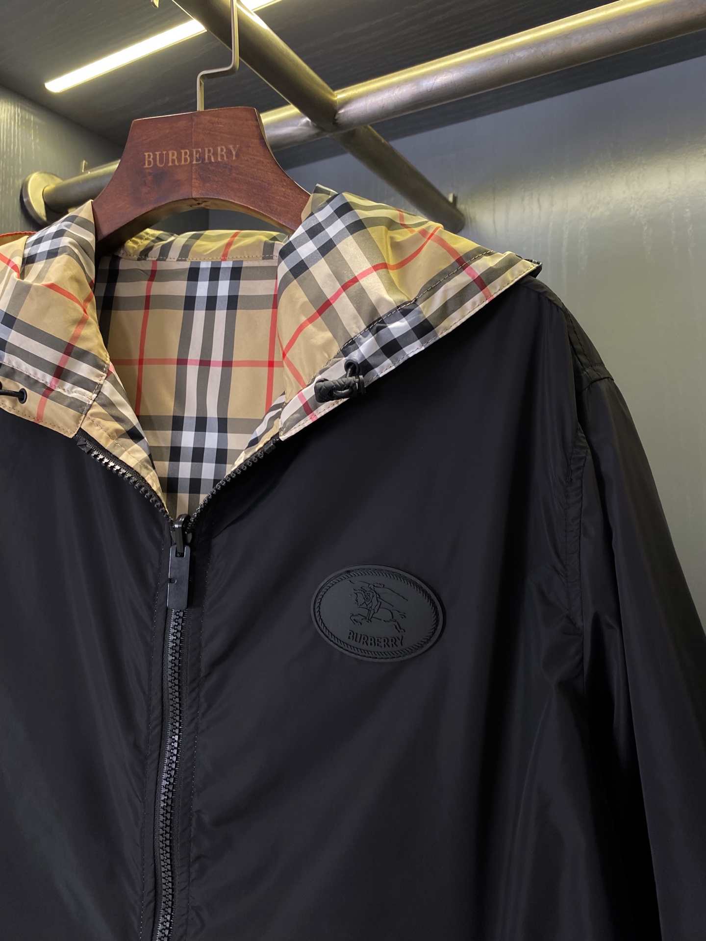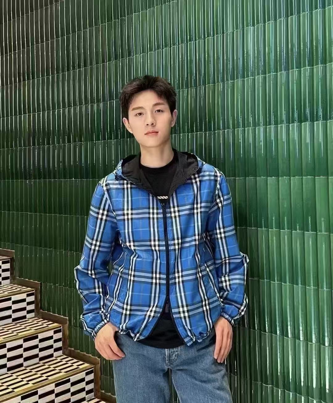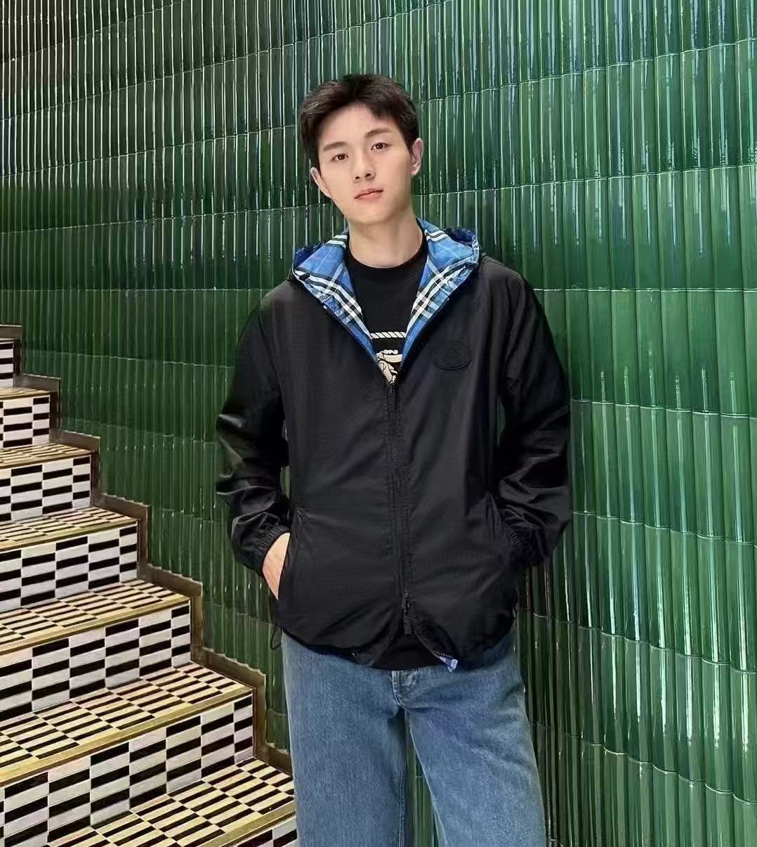 2025早秋新品 BUR家 戰馬硅膠雙面格紋輕薄連帽外套