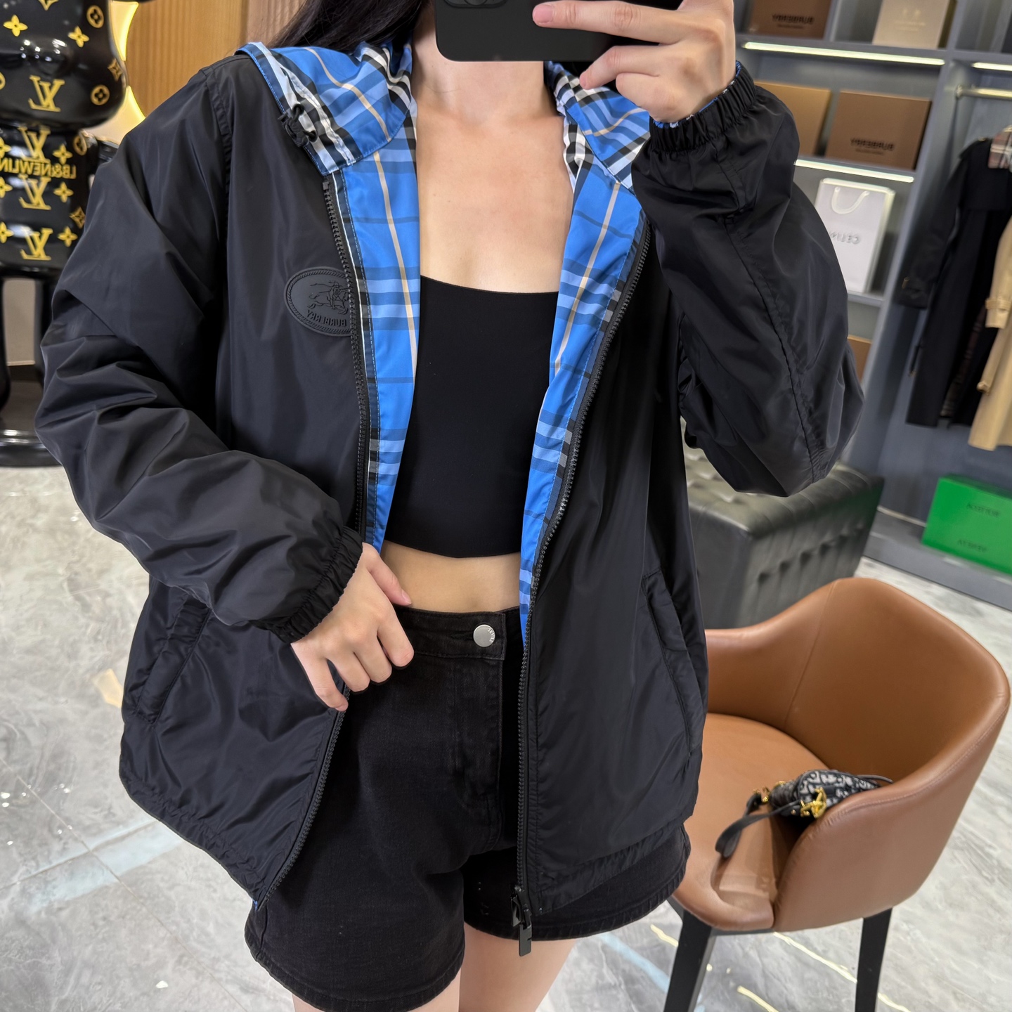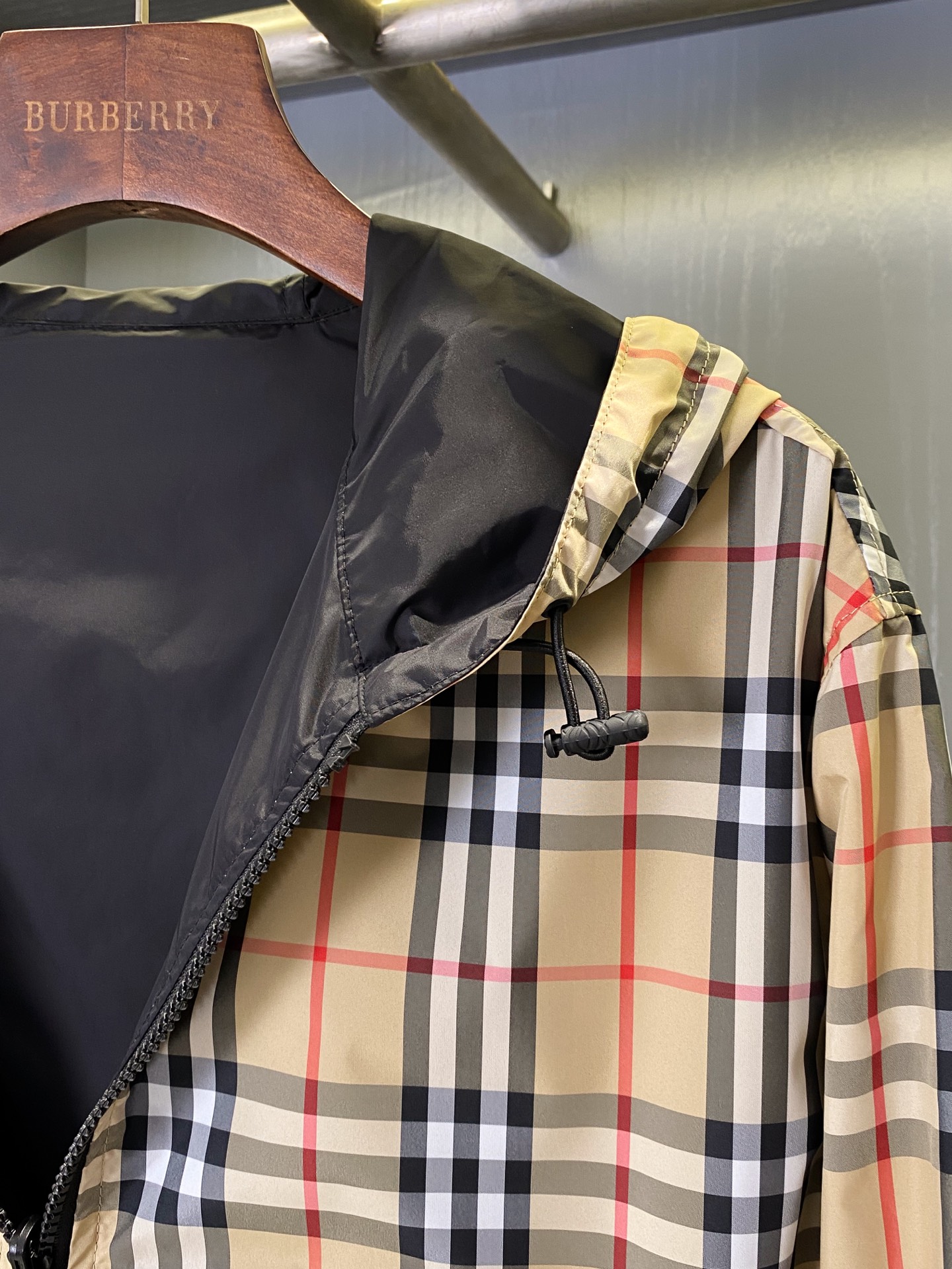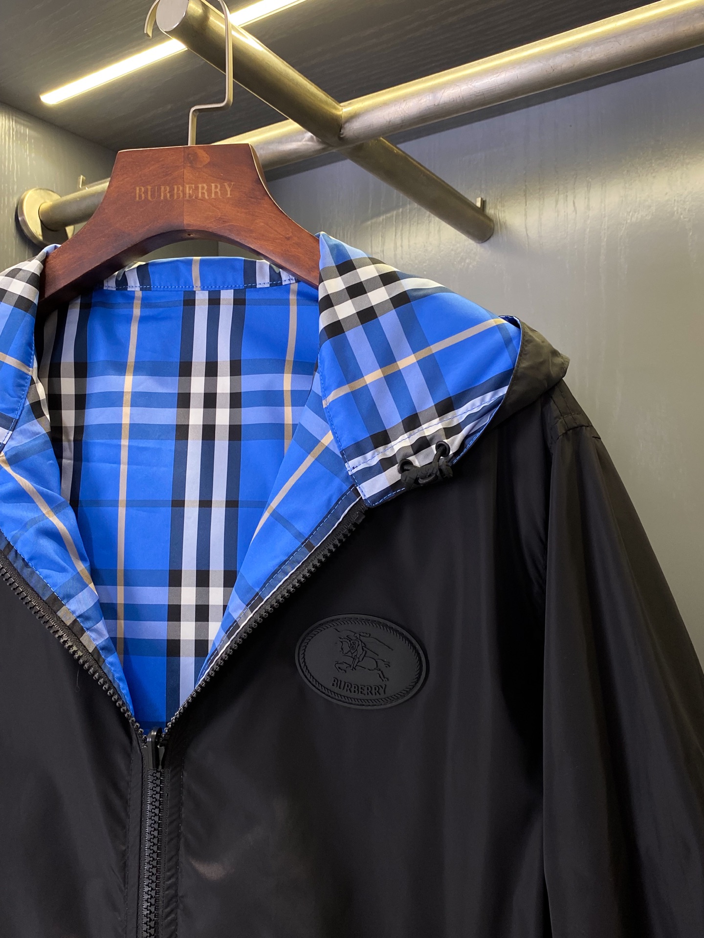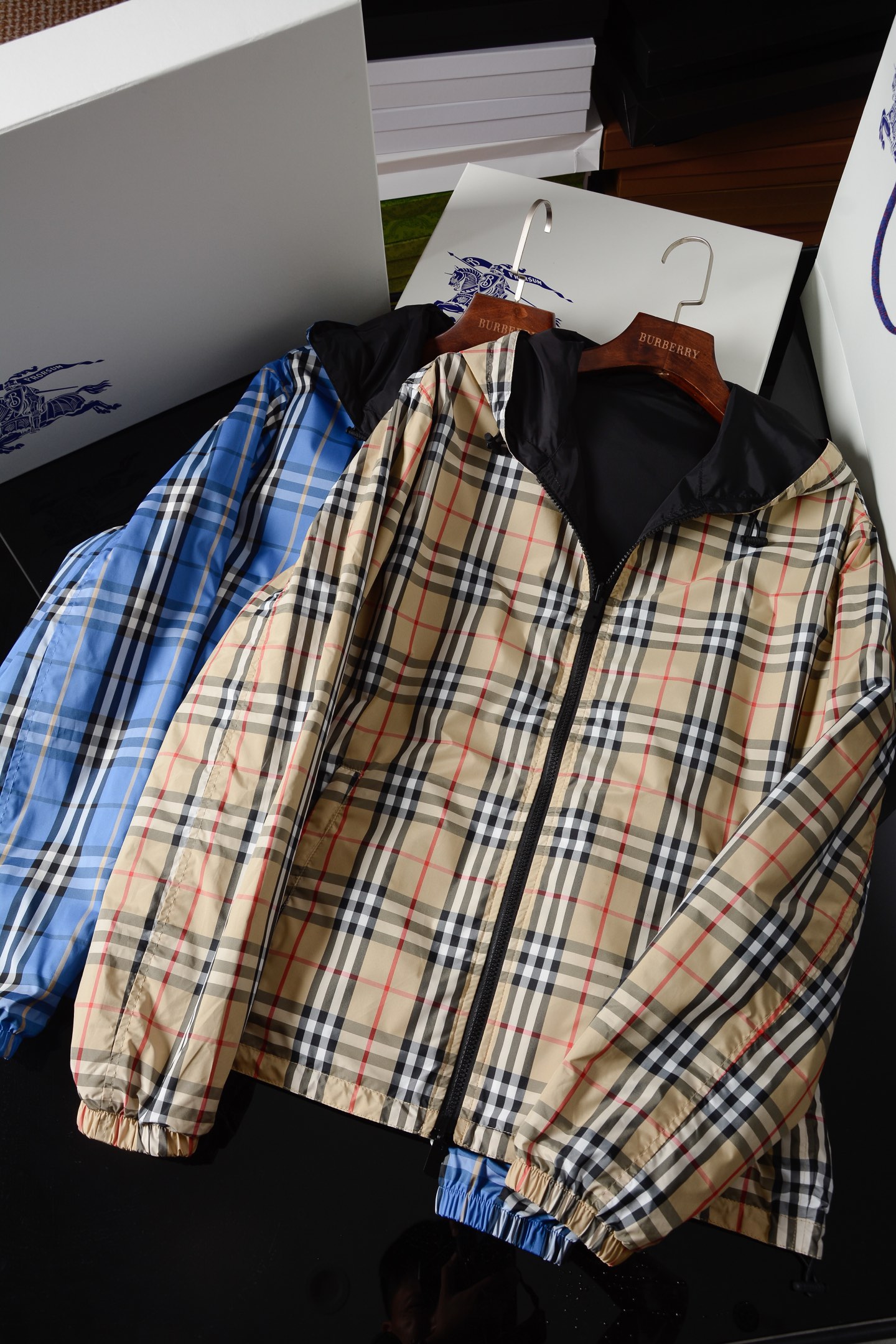 2025早秋新品 BUR家 戰馬硅膠雙面格紋輕薄連帽外套