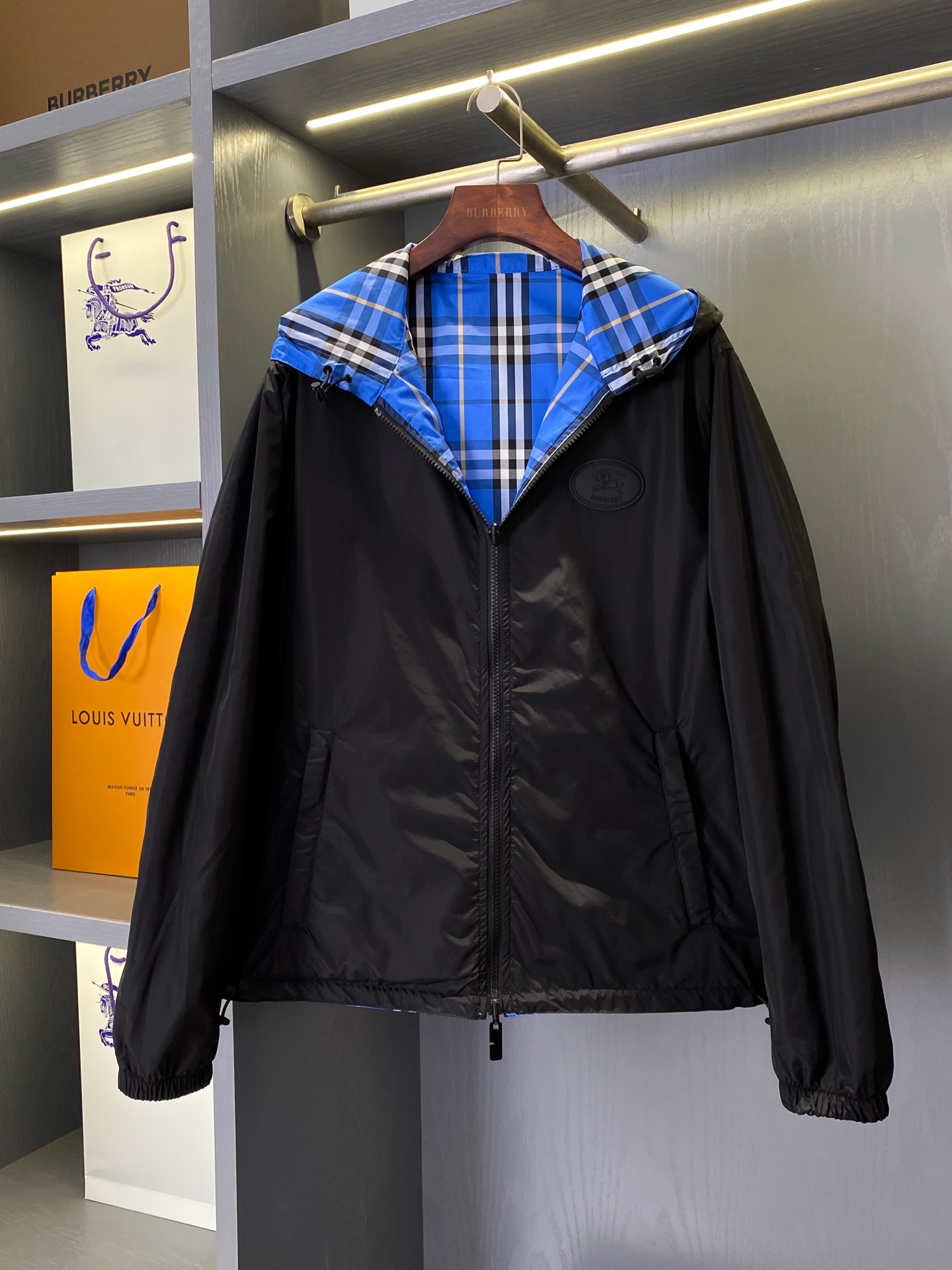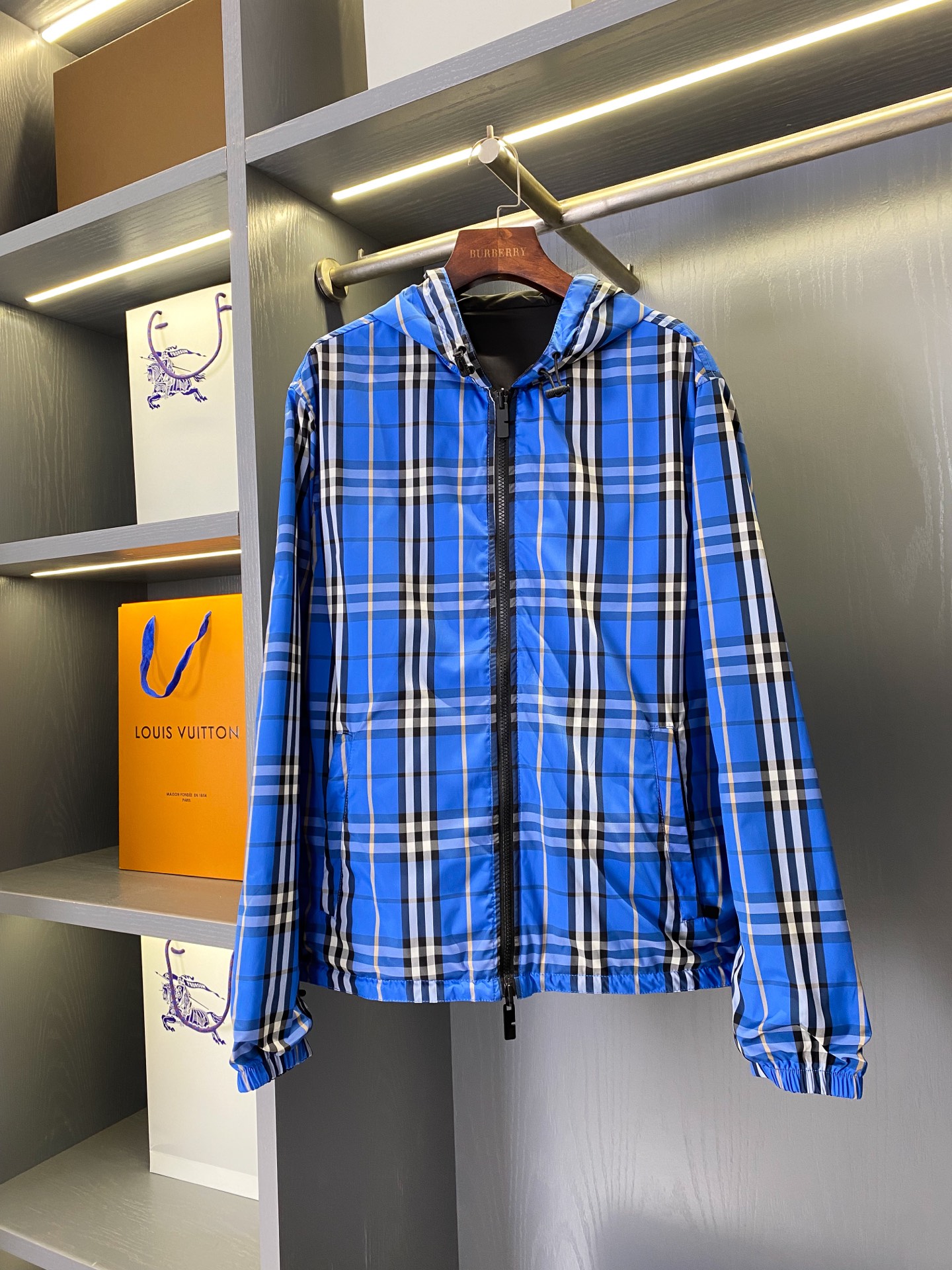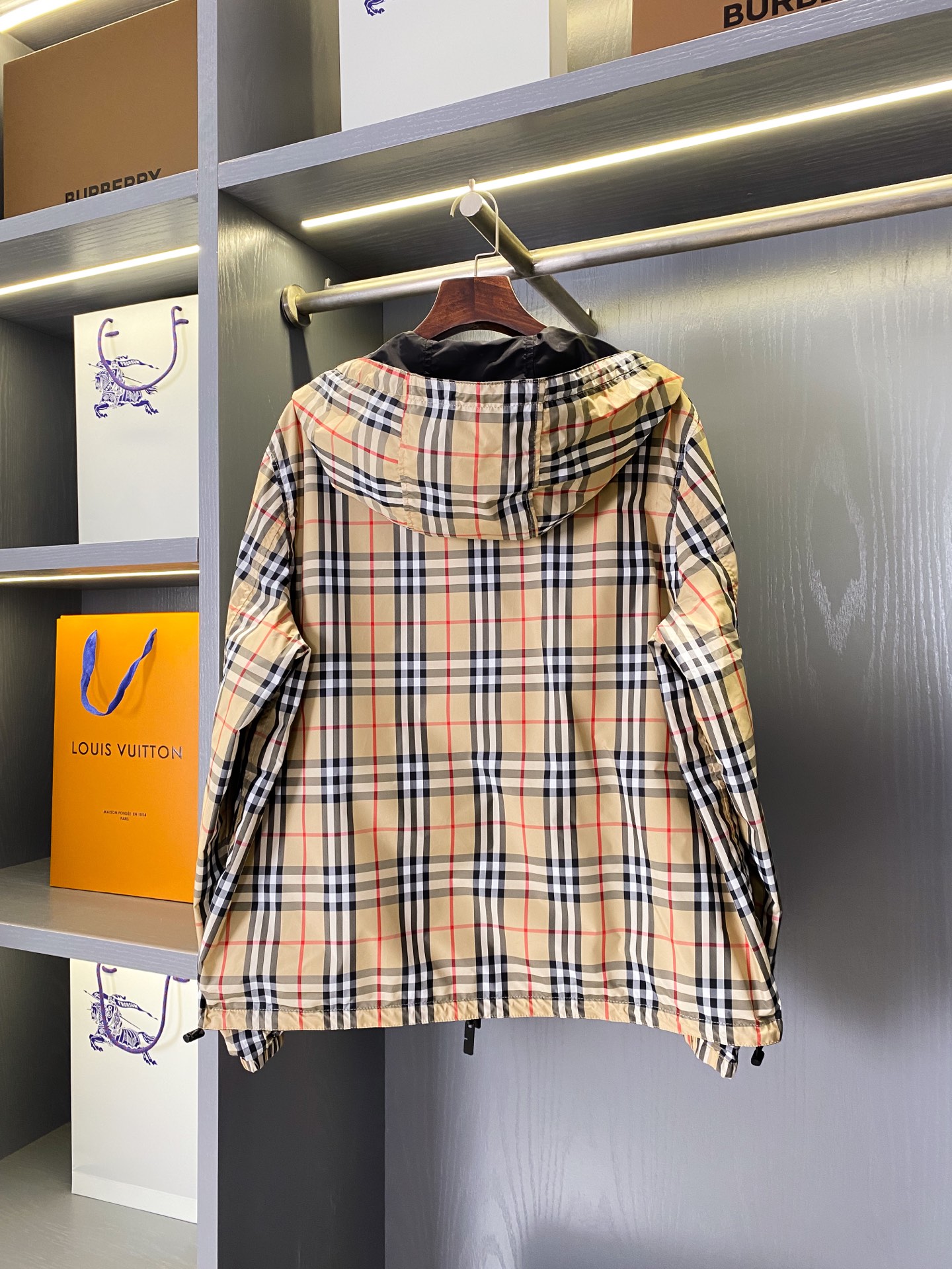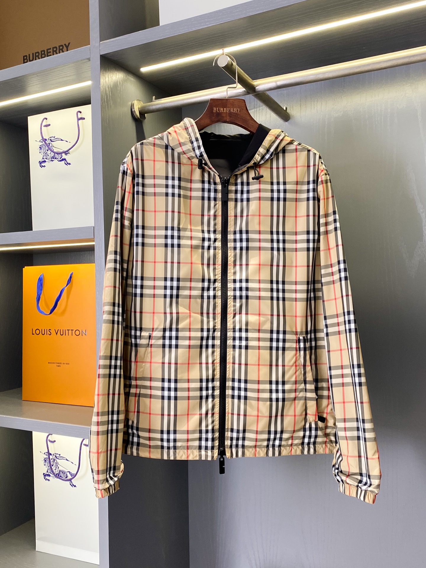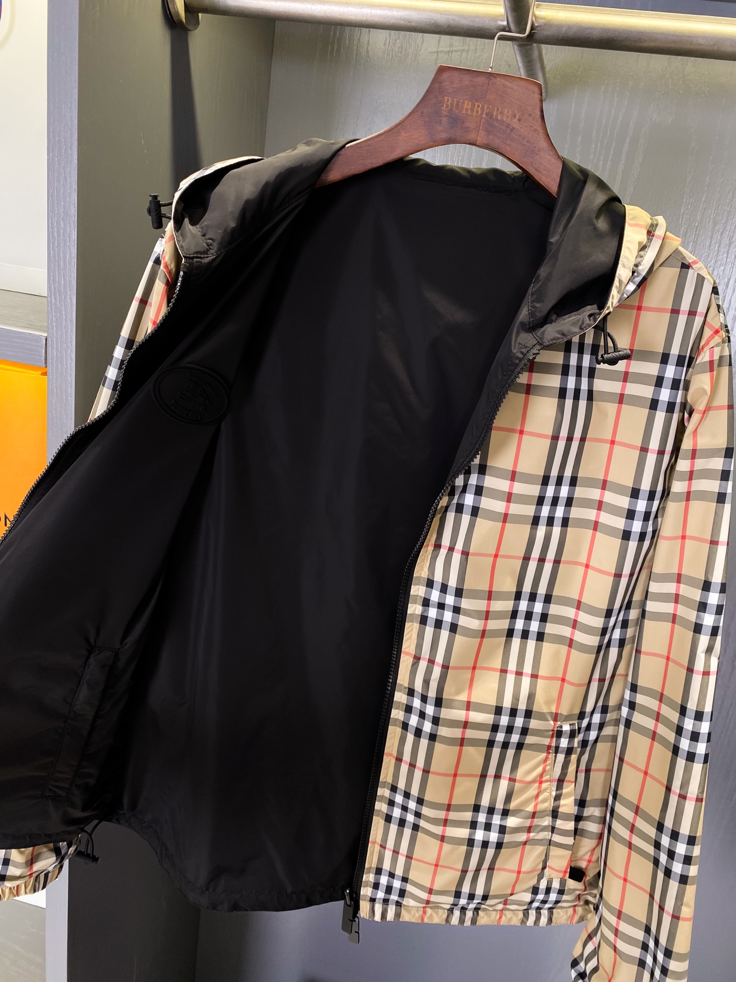 2025早秋新品 BUR家 戰馬硅膠雙面格紋輕薄連帽外套