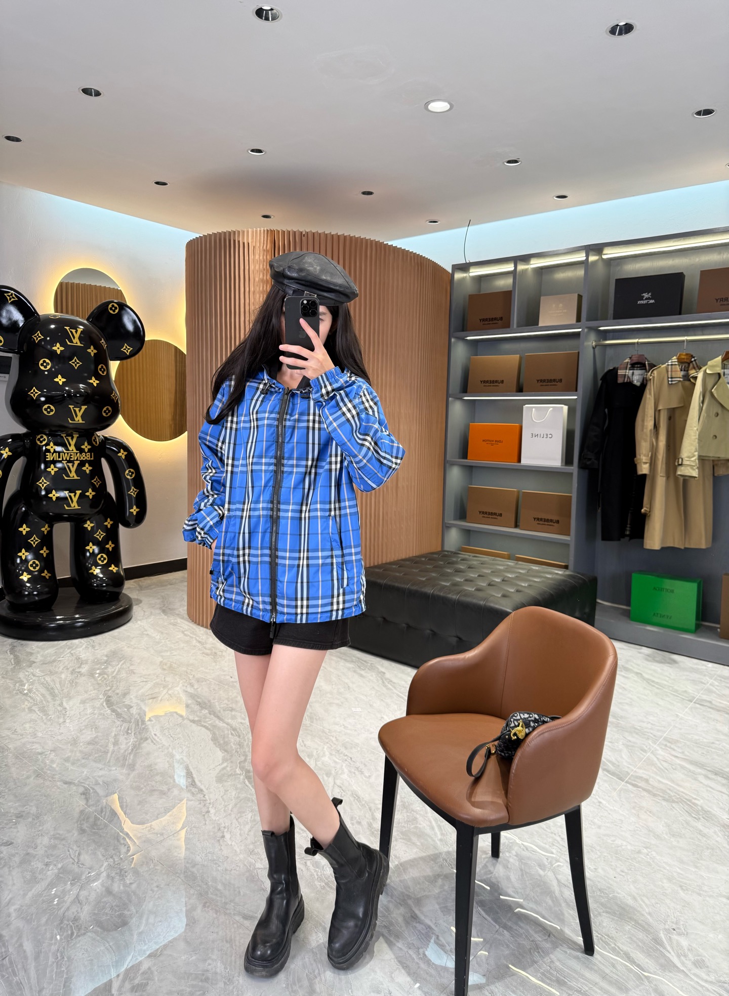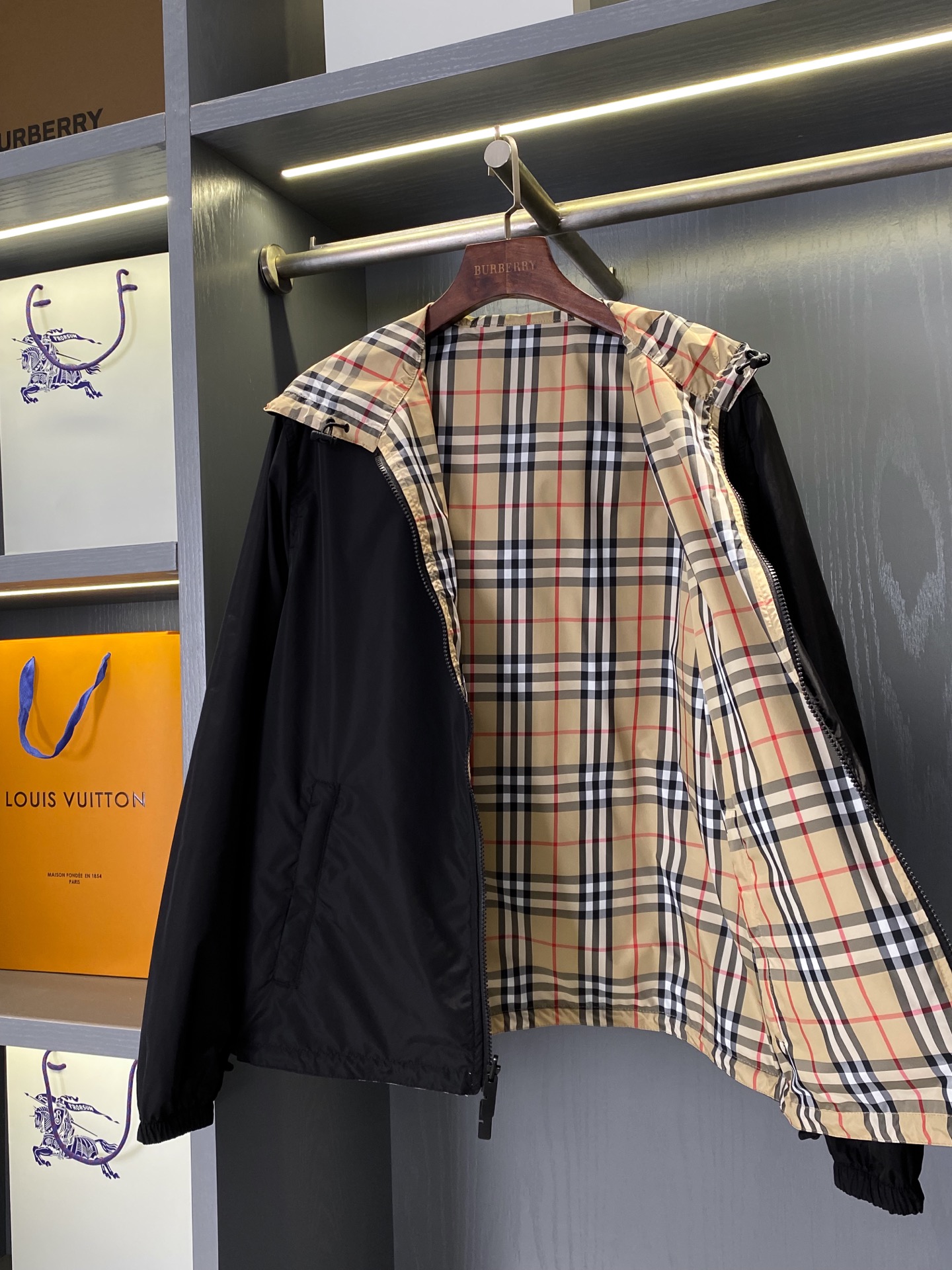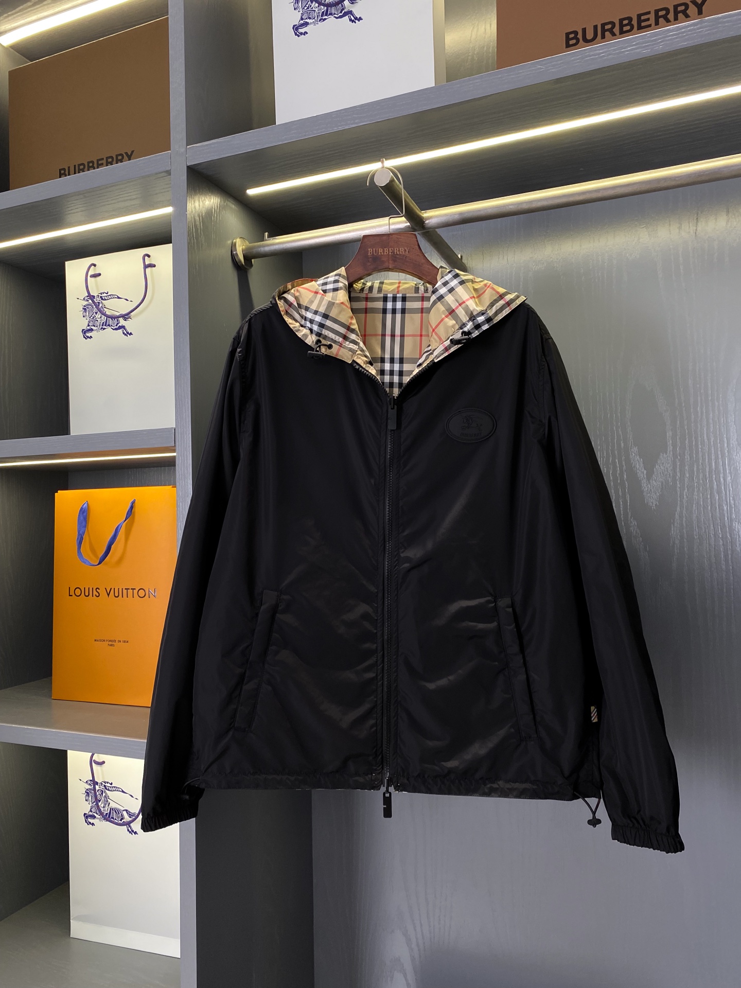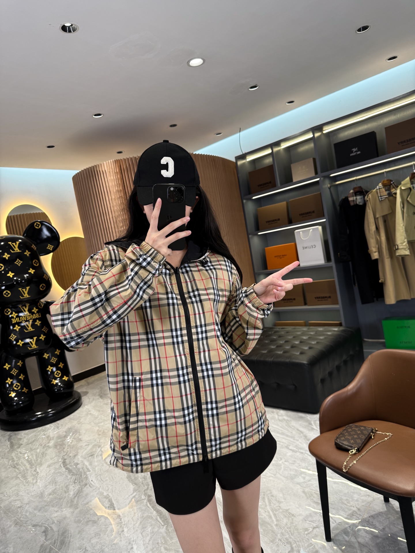 2025早秋新品 BUR家 戰馬硅膠雙面格紋輕薄連帽外套