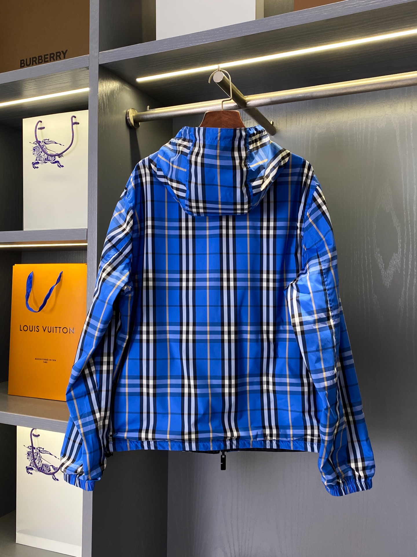 BUR家 戰馬硅膠雙面格紋輕薄連帽外套