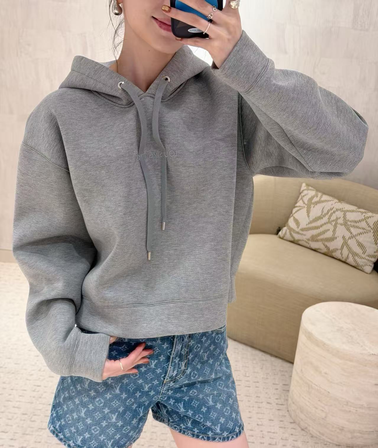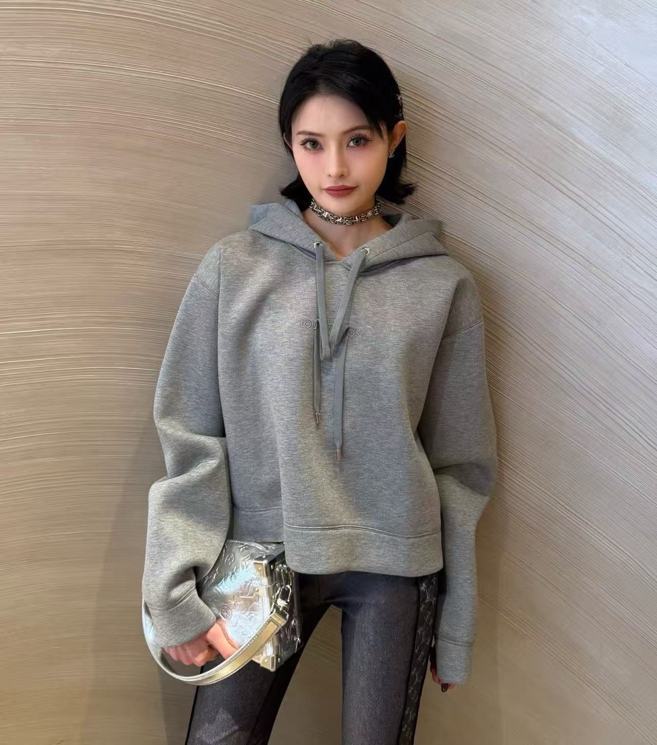2025秋冬 L家 灰色徽標短款連帽衛衣