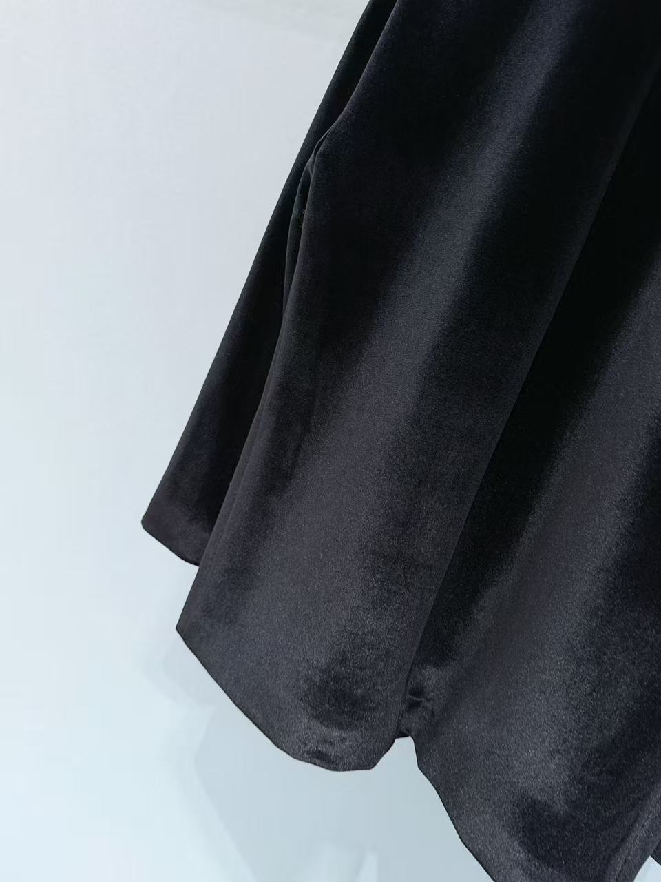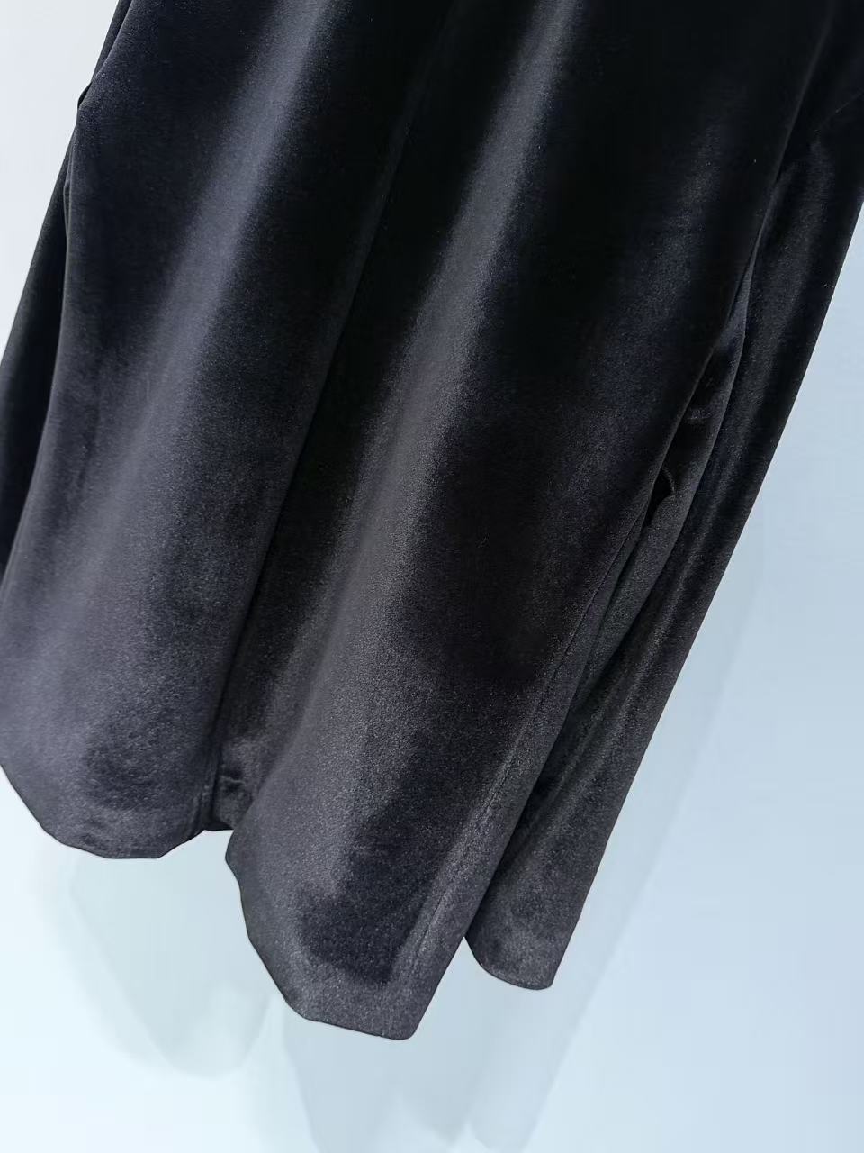 選用天鵝絲絨材質,觸感極其柔軟細膩,自帶絲綢般的高級光澤,不僅穿起來舒服,還特別好打理,完全不會容易起皺或變形,日常保養超簡單。