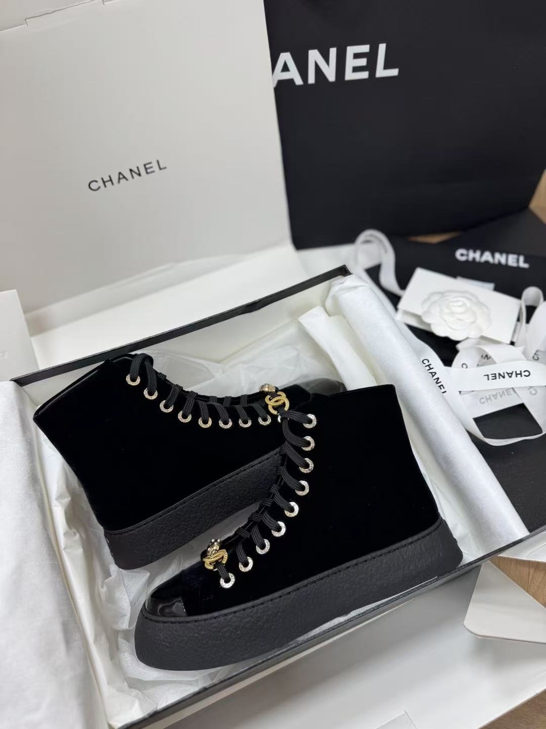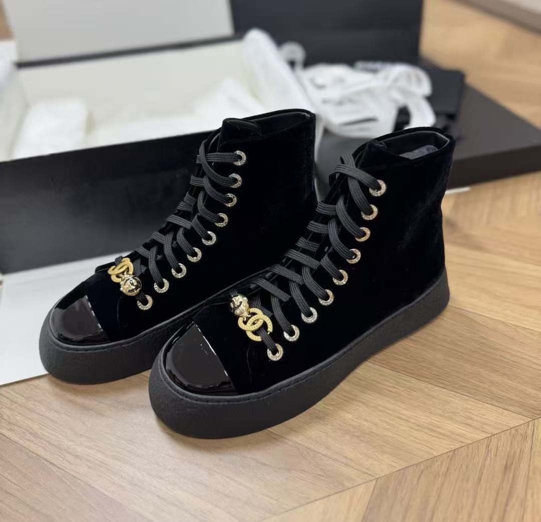 2025秋冬新品 C家 25a黑金天鵝絲絨高筒運動鞋