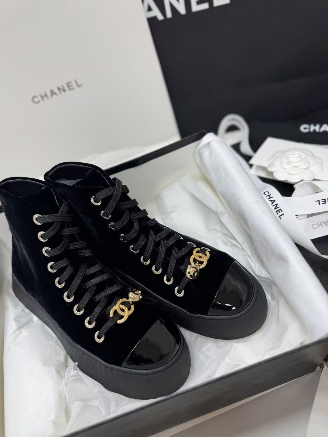 C家 25a黑金天鵝絲絨高筒運動鞋