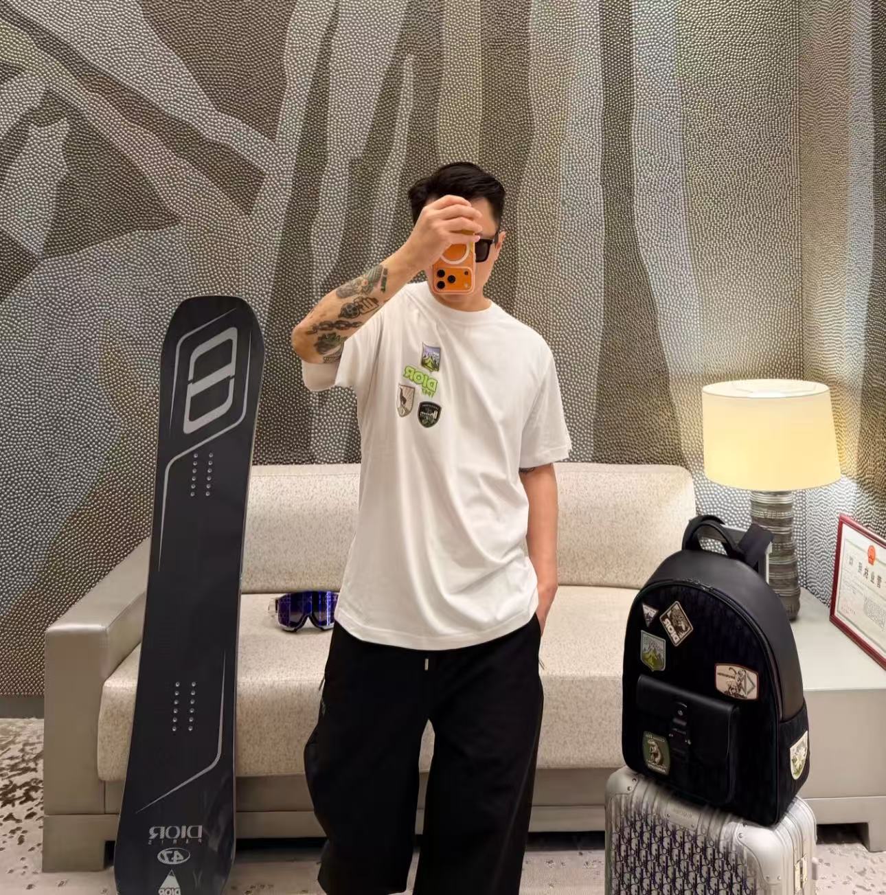 貼布繡結合:在印花圖案的基礎上,經典標誌則以補丁形態完成,選用了熒光綠撞色字母,再以貼布繡工藝精準縫合於面料之上。