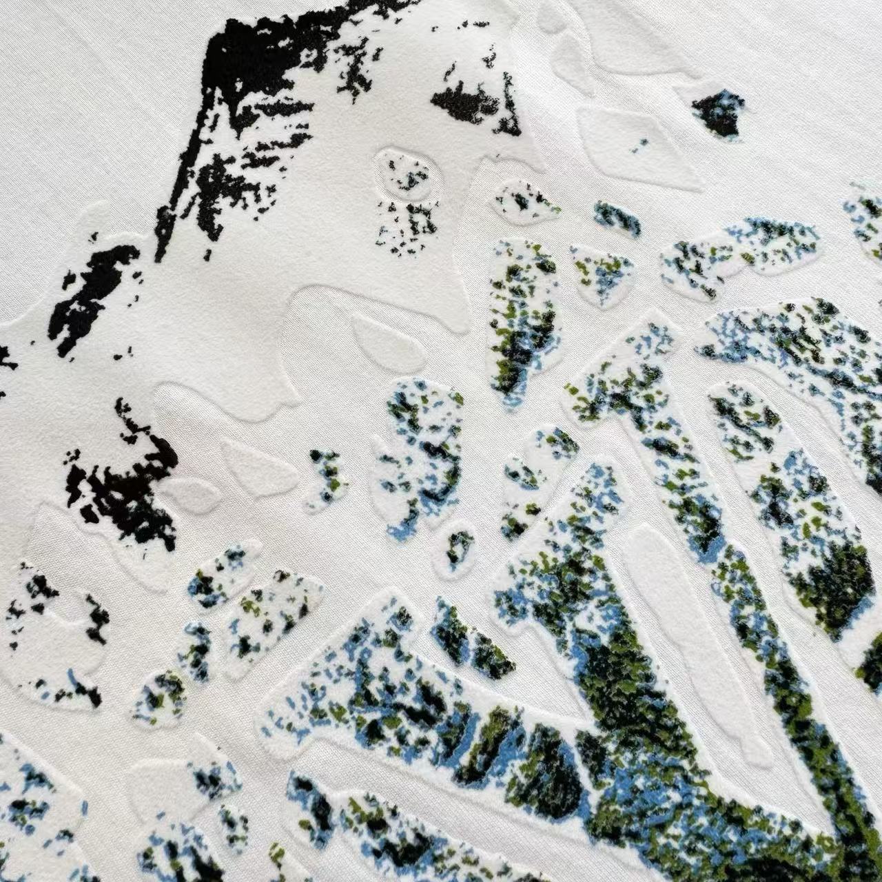 230g精棉平紋+多色絲絨印花,這件T恤以岩峰雪地森林景致為主題,絲絨立體+裂縫留白,每個細節都像畫作般精緻,穿上就是行走的雪景藝術品!快來一起探索這件短袖的無限魅力吧!