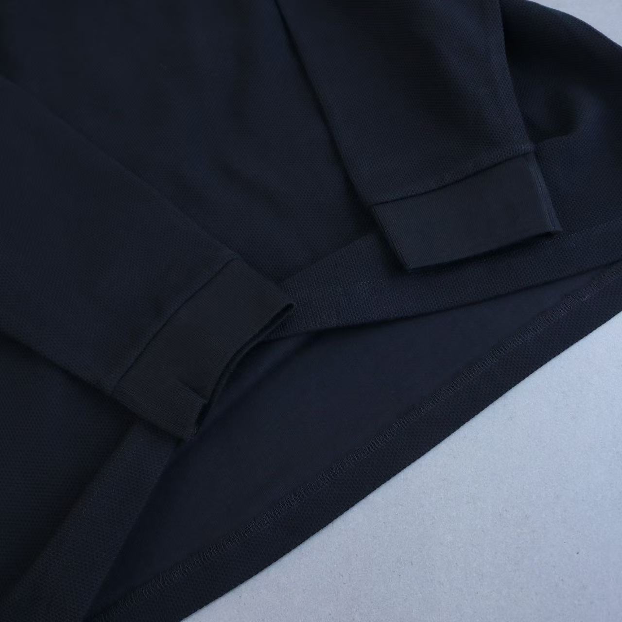 紮實挺括的手感結構:不同於市面上柔軟塌陷的普通棉料,這款珠地棉具備極佳的骨架感,觸感紮實且抗皺,即使經過長時間穿著依然能維持領口與衣身的平整度。