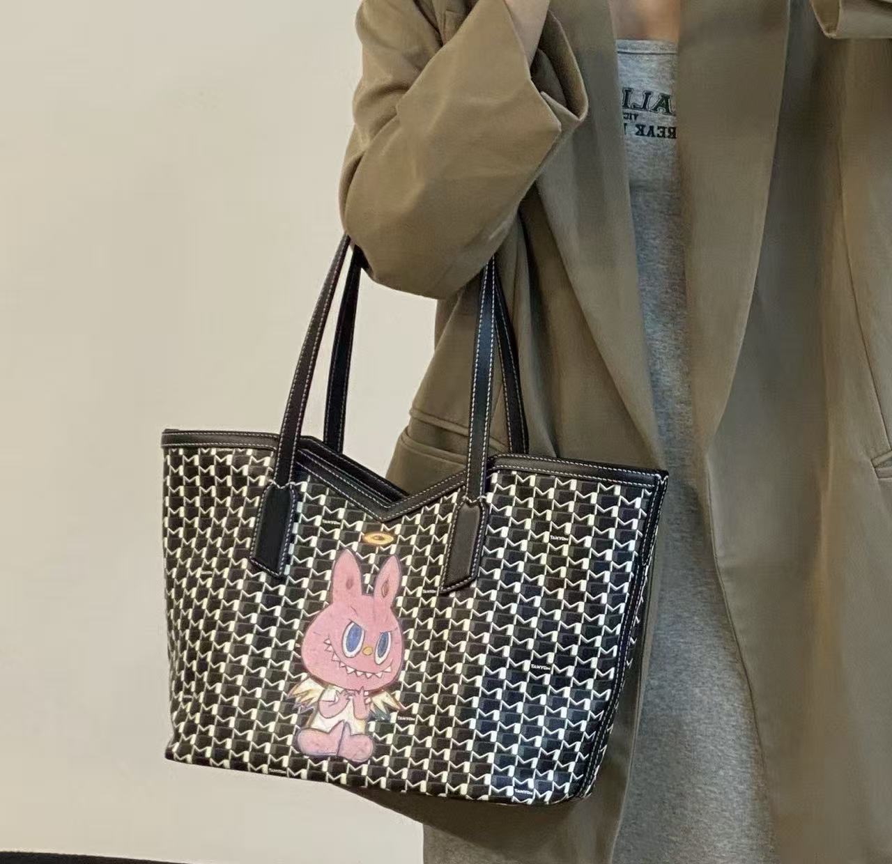 立體小怪獸圖騰: 活潑的 Labubu 形象,為托特包注入了強烈的街頭感與玩味細節。