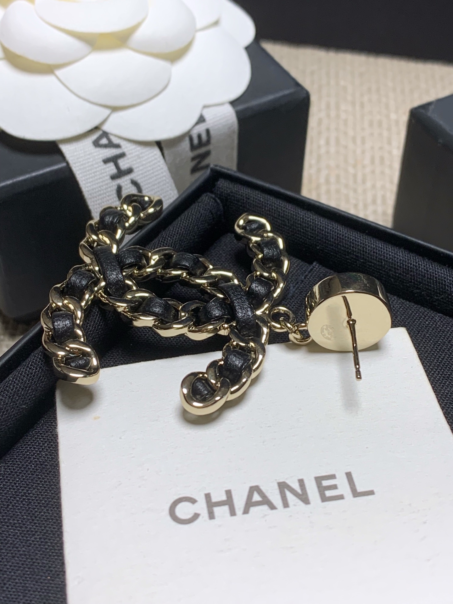 這次在雙C小金豆細節上也做了巧思設計,小小的金屬面有精緻紋路處理,低調中帶點精緻奢華,完全符合一貫的高級審美。整體不只造型有亮點,質感也是無可挑剔,上耳後的光澤與份量感非常到位,搭配簡約服裝就能輕鬆出彩。