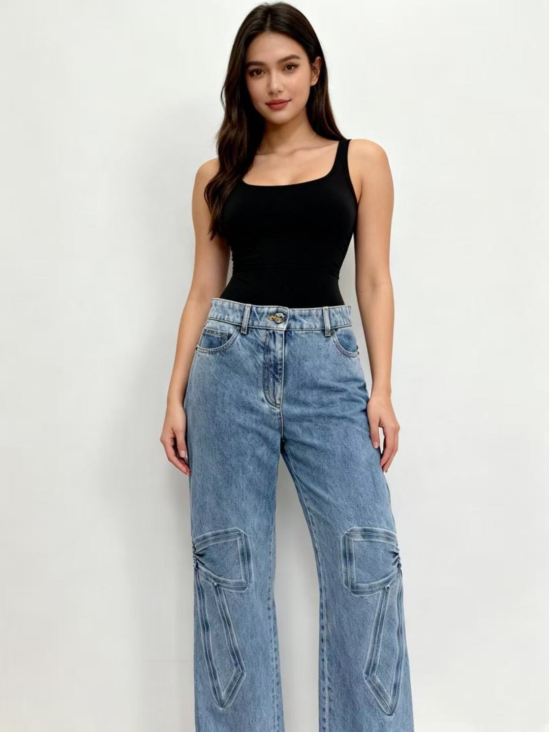 2025秋冬  C家 立體蝴蝶結高腰直筒牛仔褲
