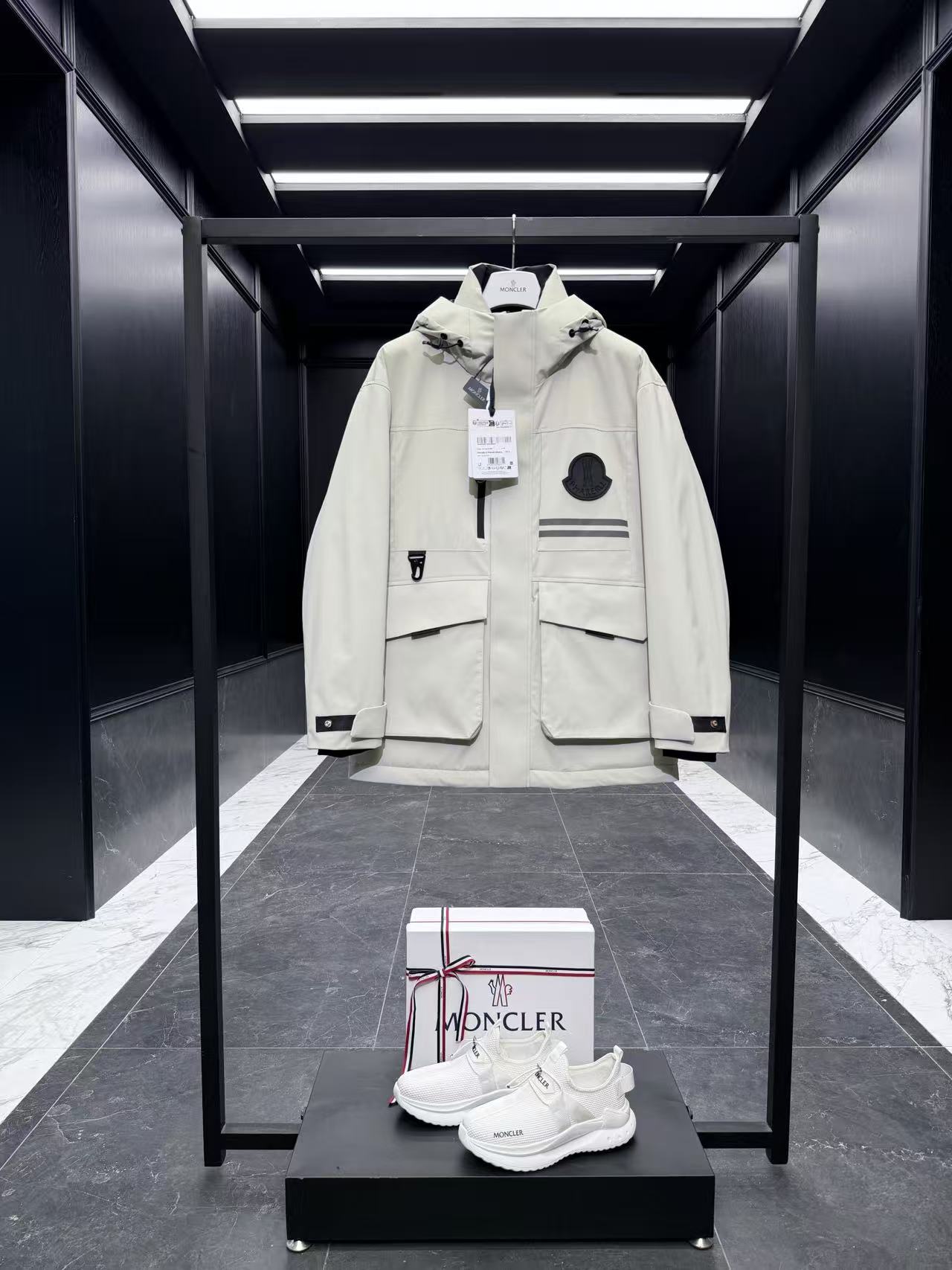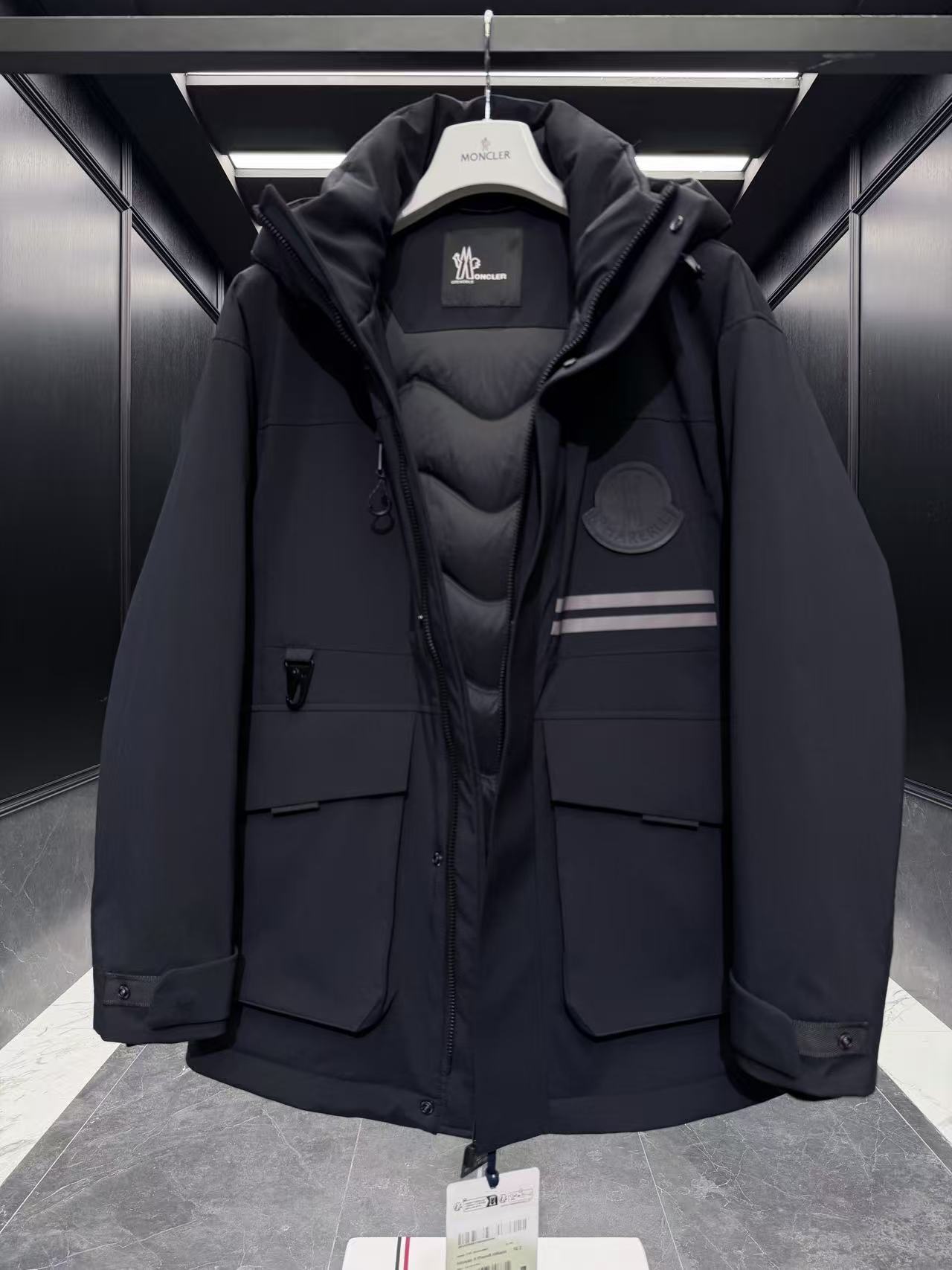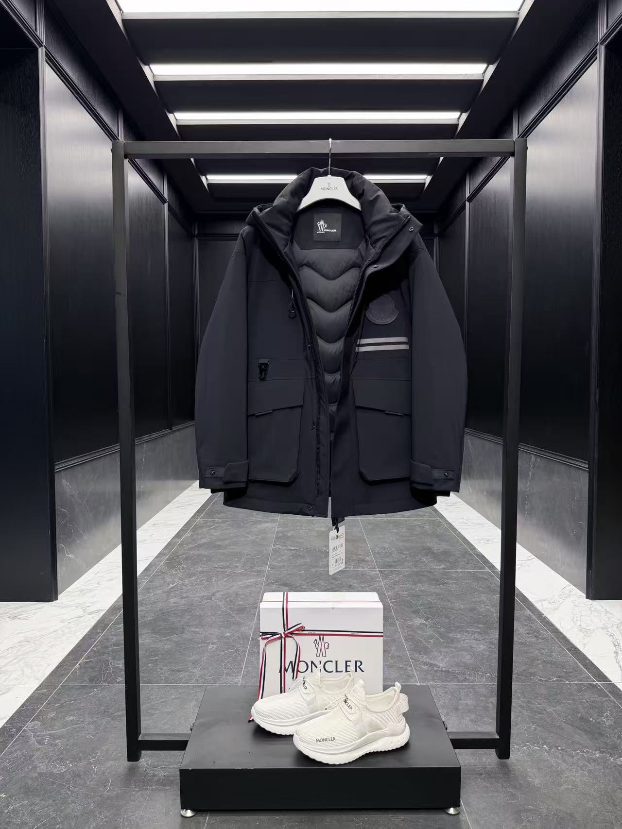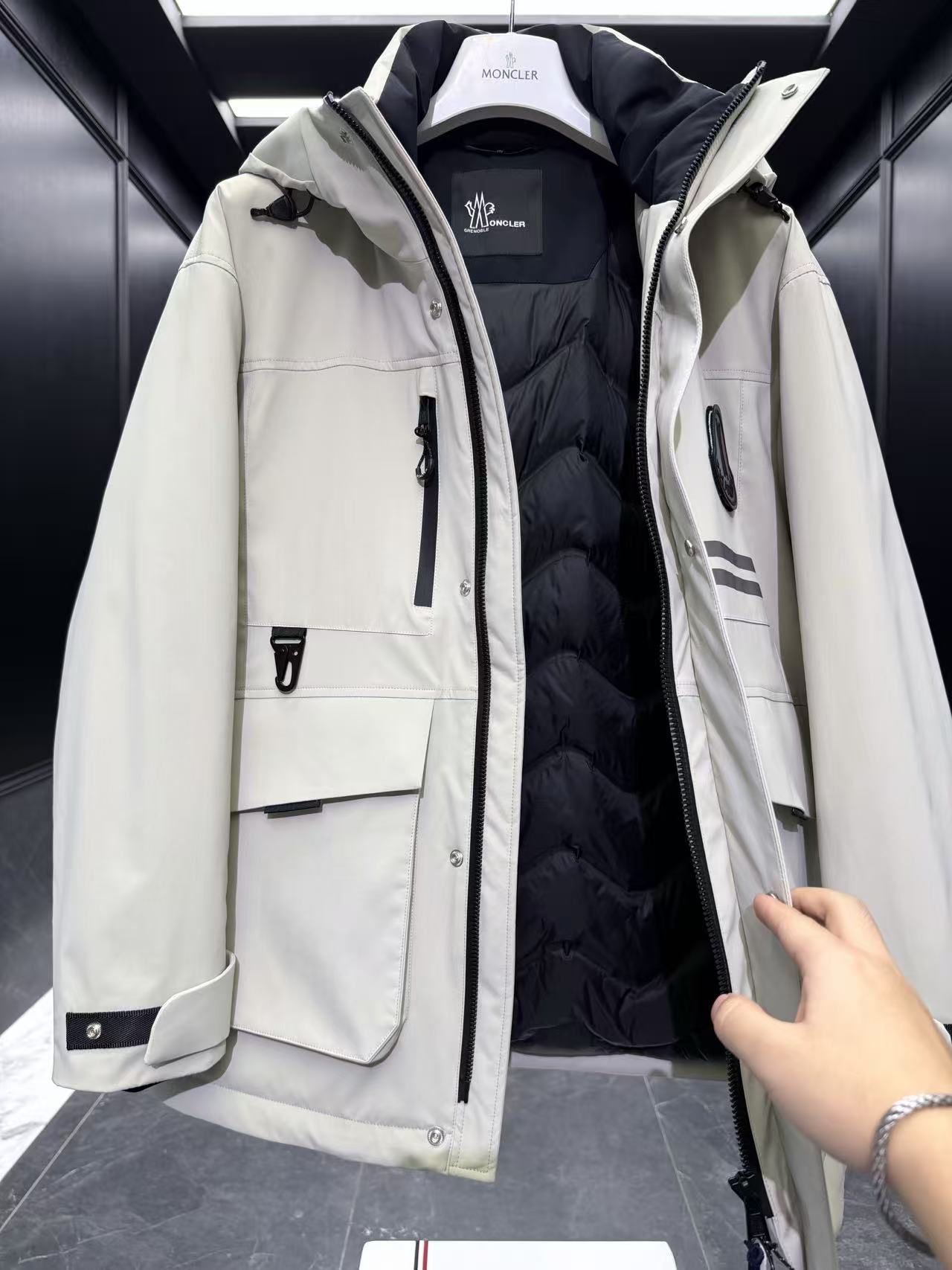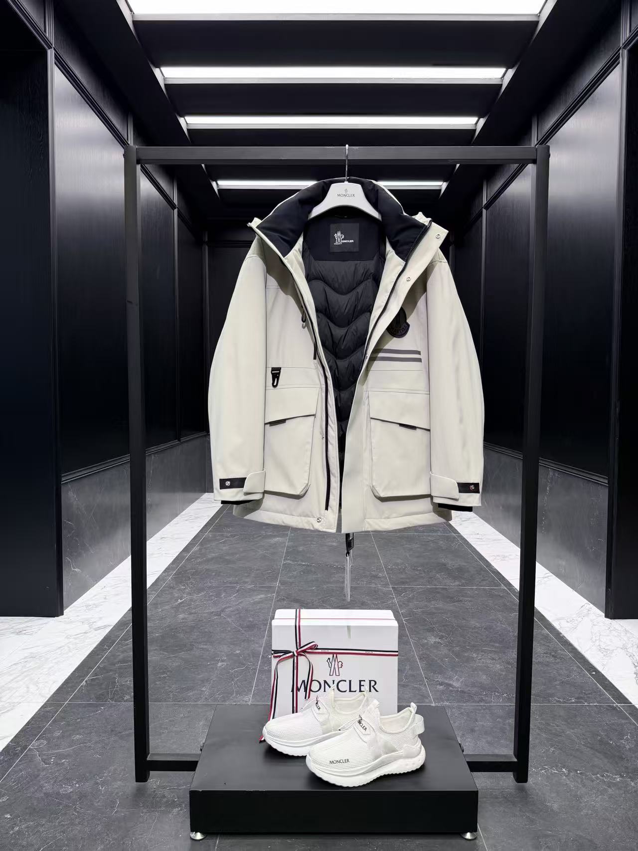 內裡:Longue Saison 輕盈襯裡 + 全壓膠內裡,填充 90% 鵝絨 + 10% 羽毛(或類似高階填充),雙重鎖絨工藝確保保暖不外漏。