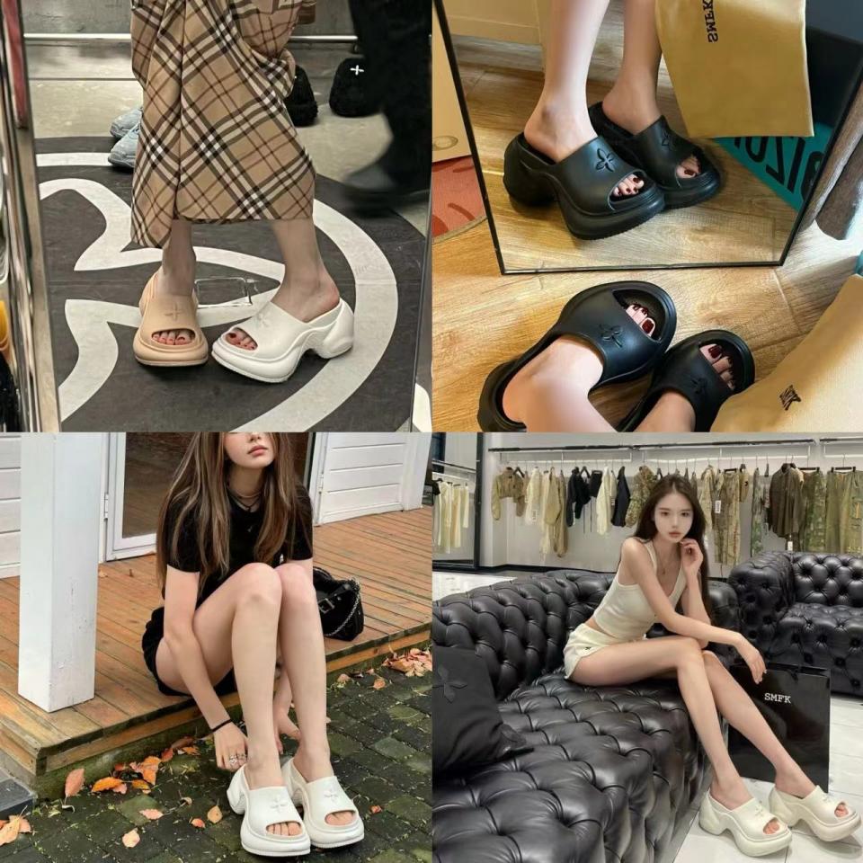 2024春夏新品 SMFK浮雕logo厚底拖鞋 增高神器