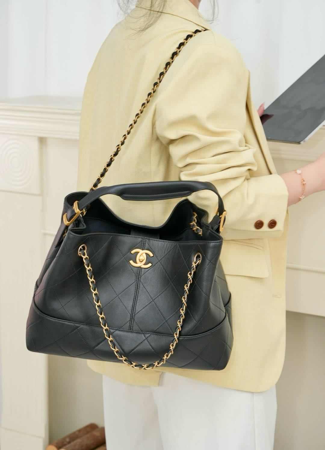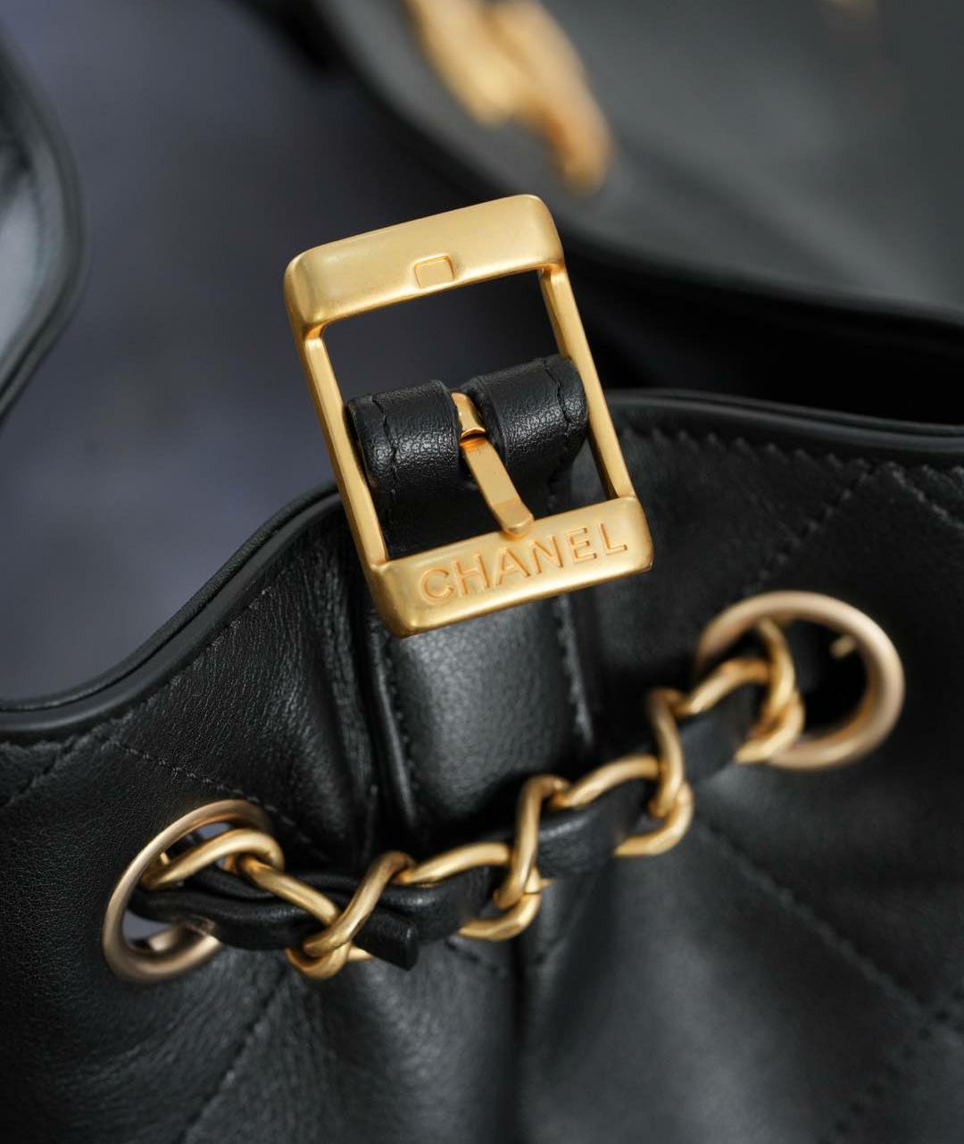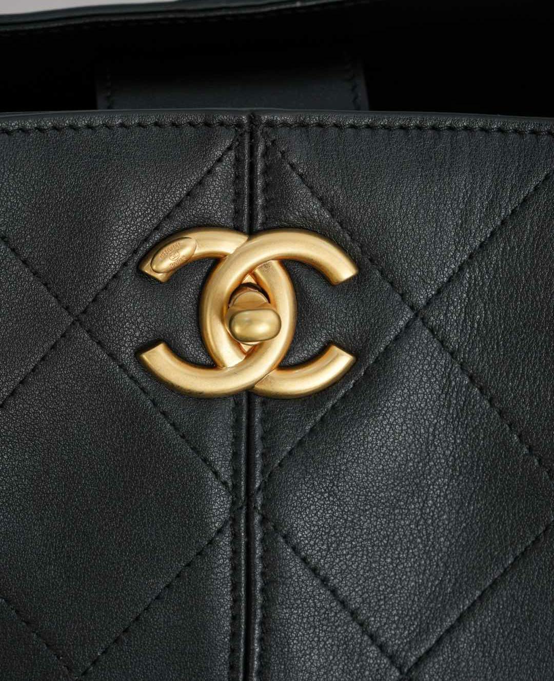 五金部分採用霧面砂金搭配品牌標誌性雙C扣,表面經過輕微斑駁處理,復古感十足又不失精緻度。