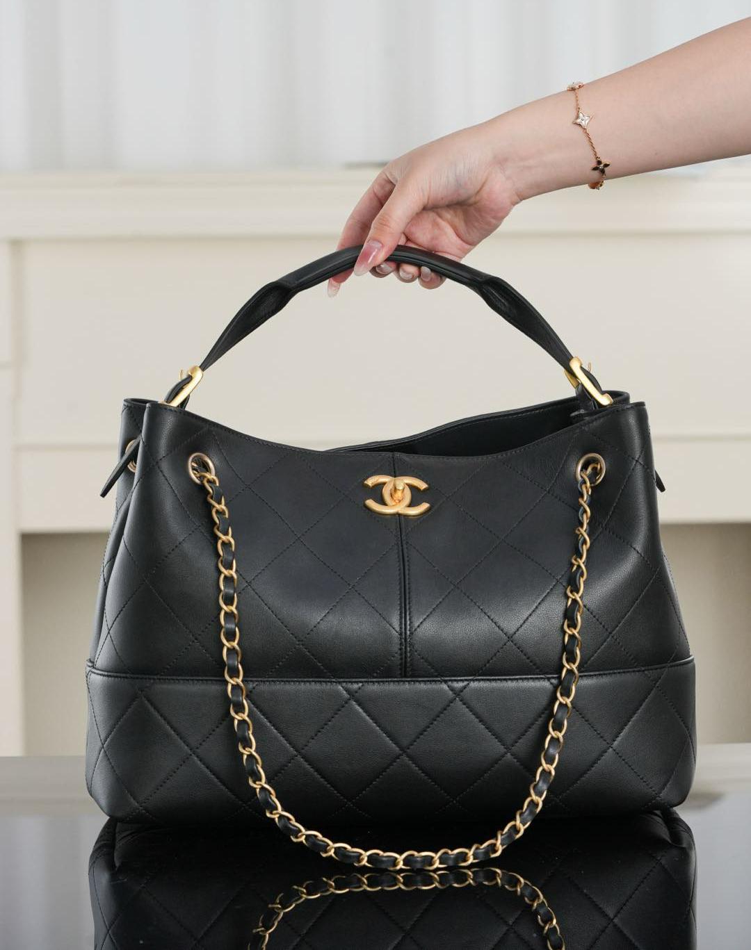 2025春夏新品 C家 25A橫版黑色Hobo包